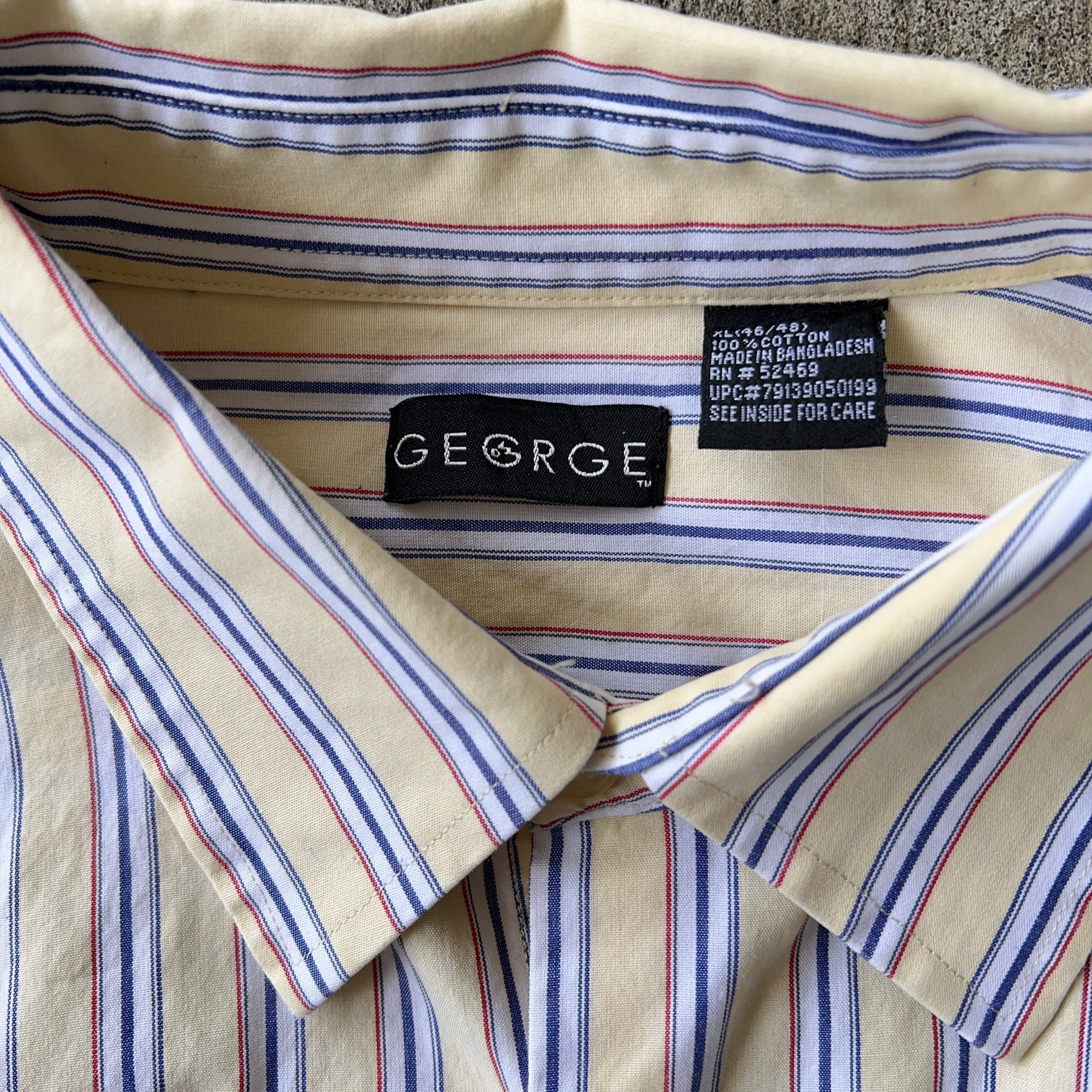 GEORGE Striped Shirt SIZE XL ストライプシャツ 長袖 パールイエロー【3000円均一商品】【TH0487】