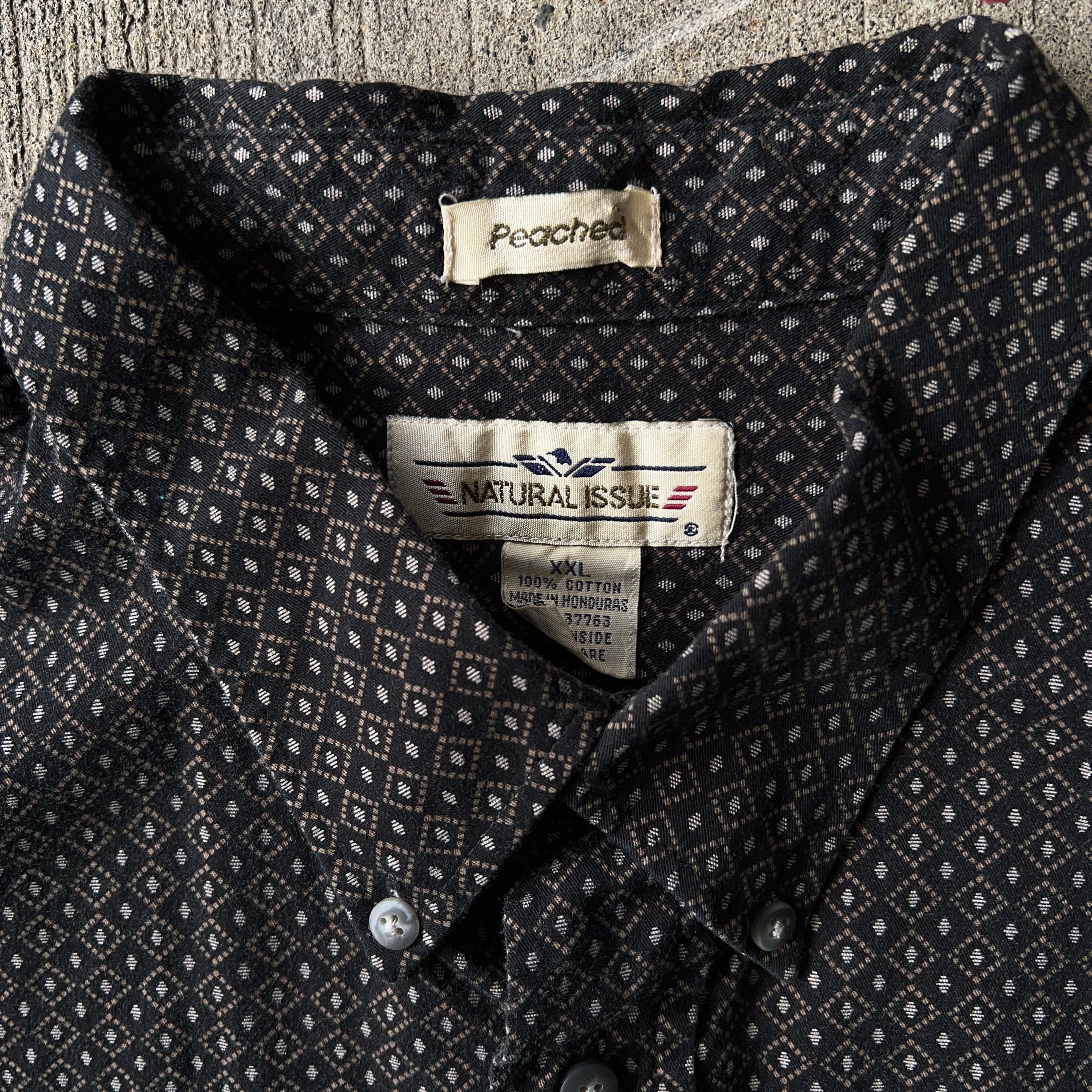 デザインが良い物が多く、古着では人気が高いNATURAL ISSUEのシックなデザインの総柄シャツ。