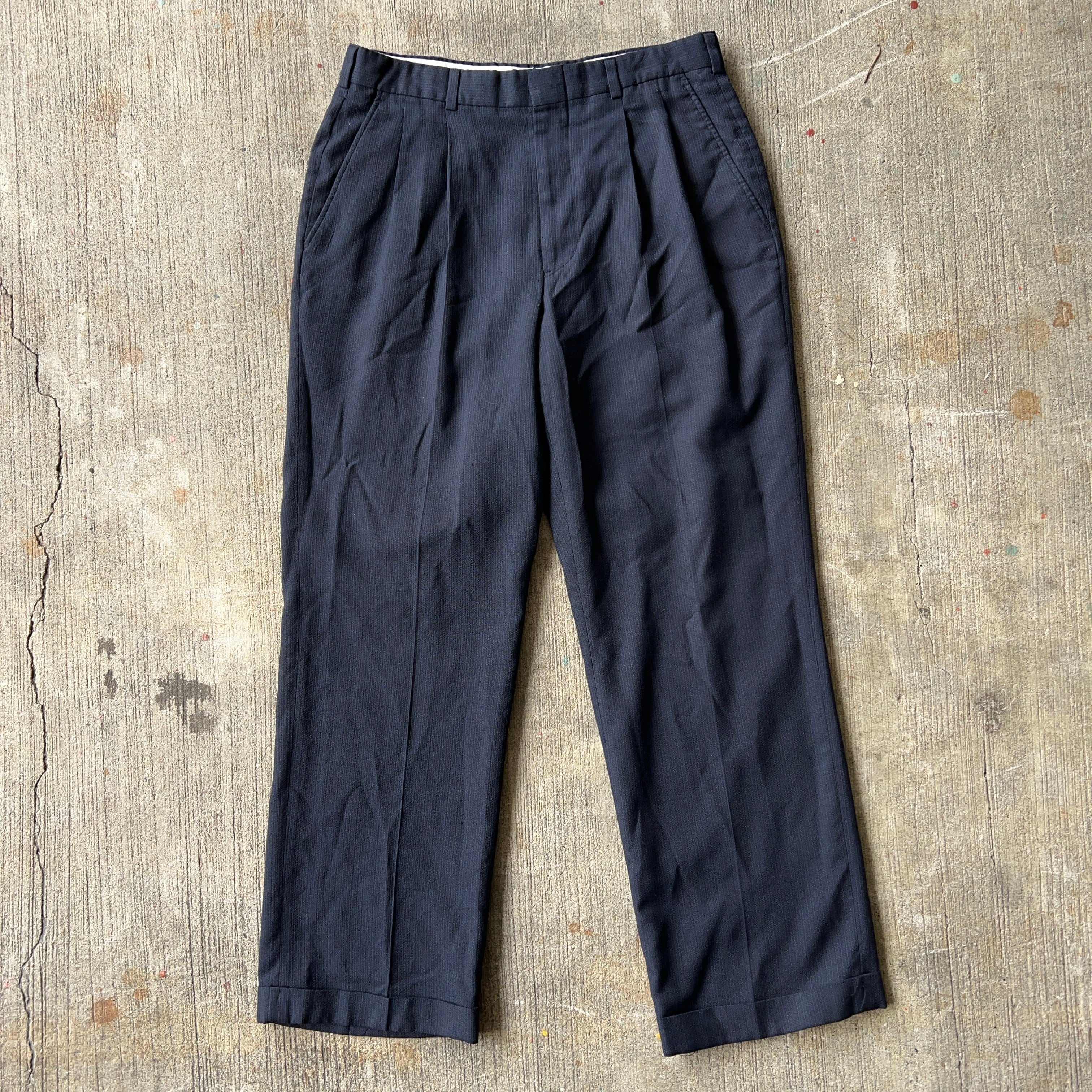 ~90's Barrington Polyester×Wool Slacks W32 L29 ~90年代 スラックス 2タック ネイビー【3000円均一商品】【TH0533】