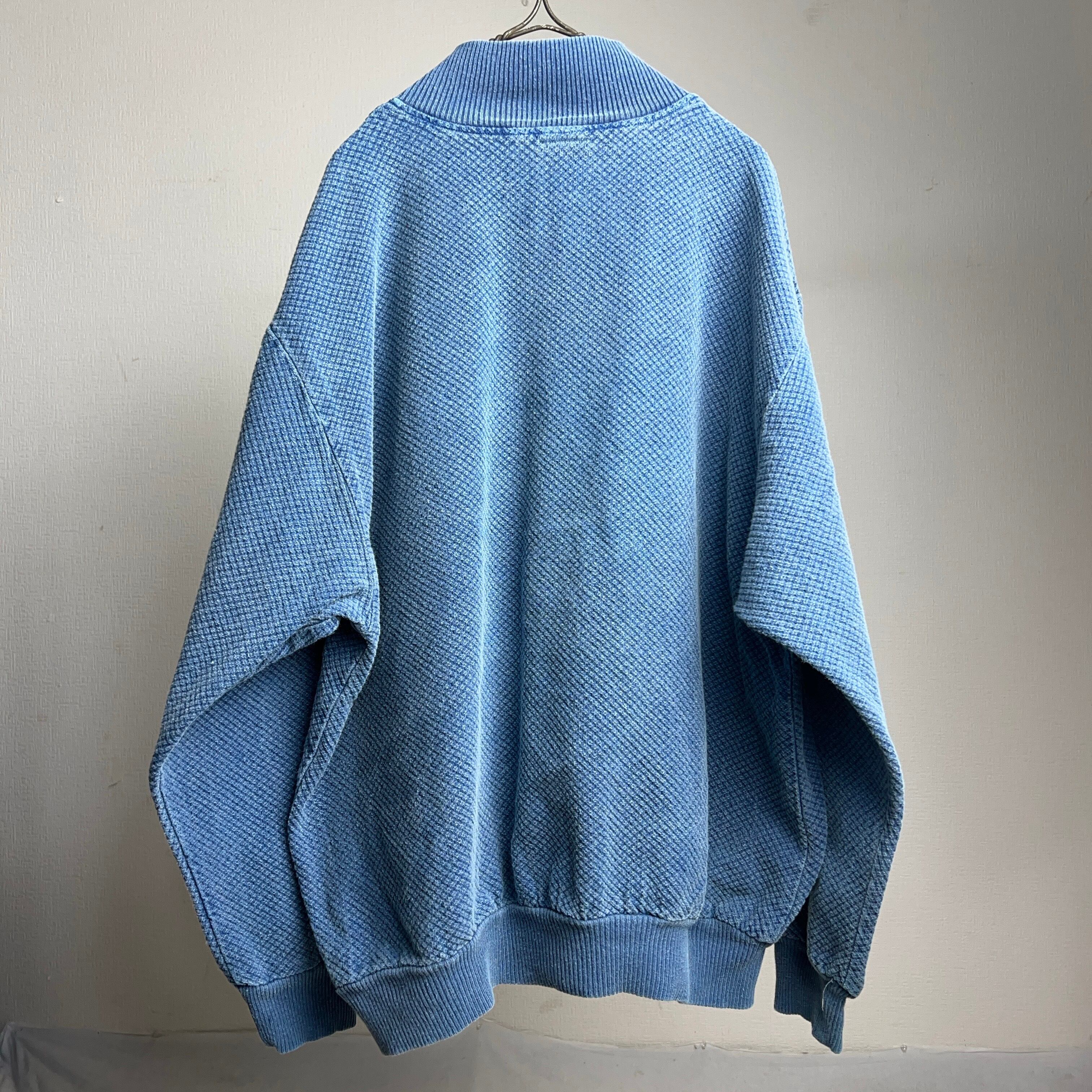 凹凸のあるワッフル生地を使っていたり、ハイネックリブにボタンを付けたりと他のスウェットでは見かけないオシャレな仕様。