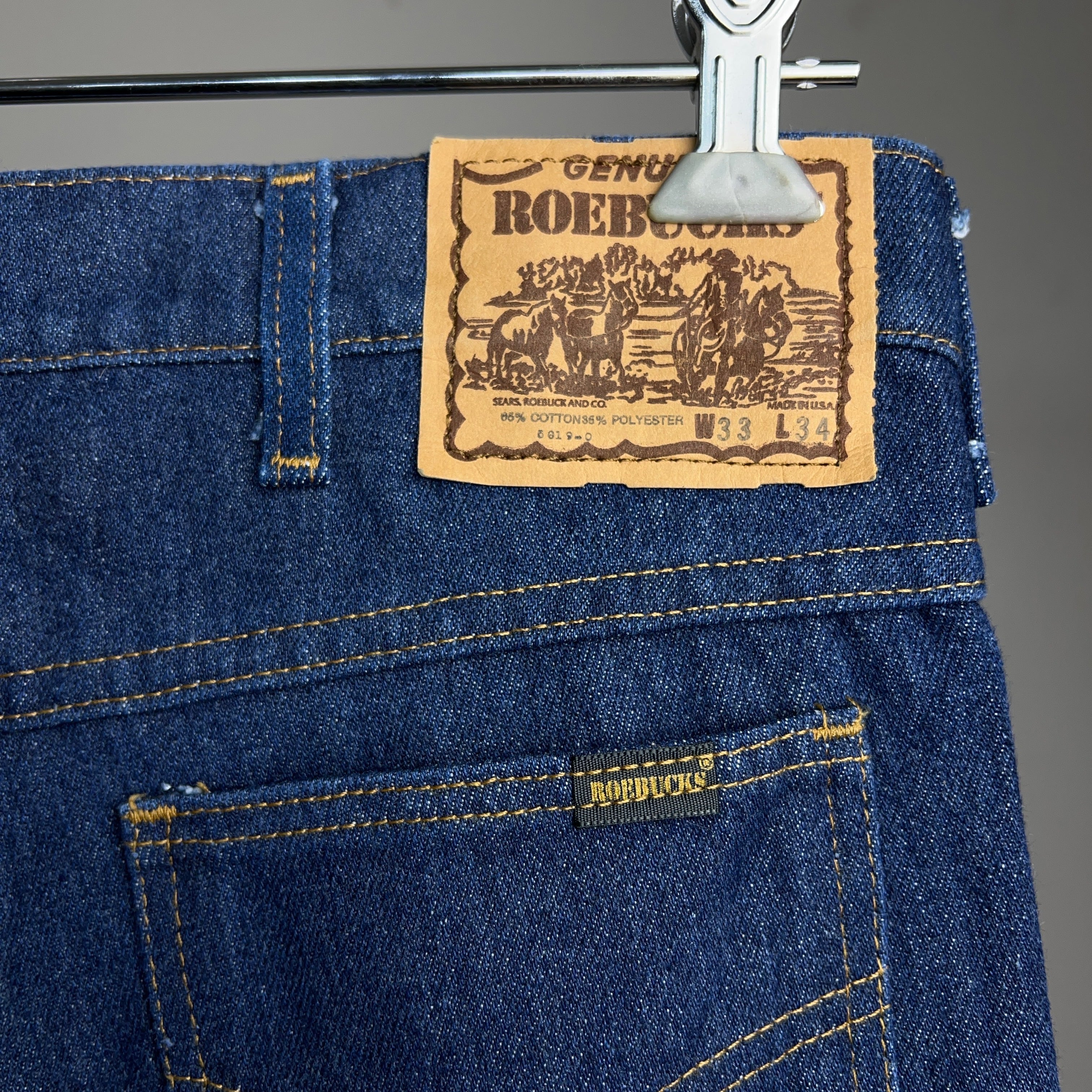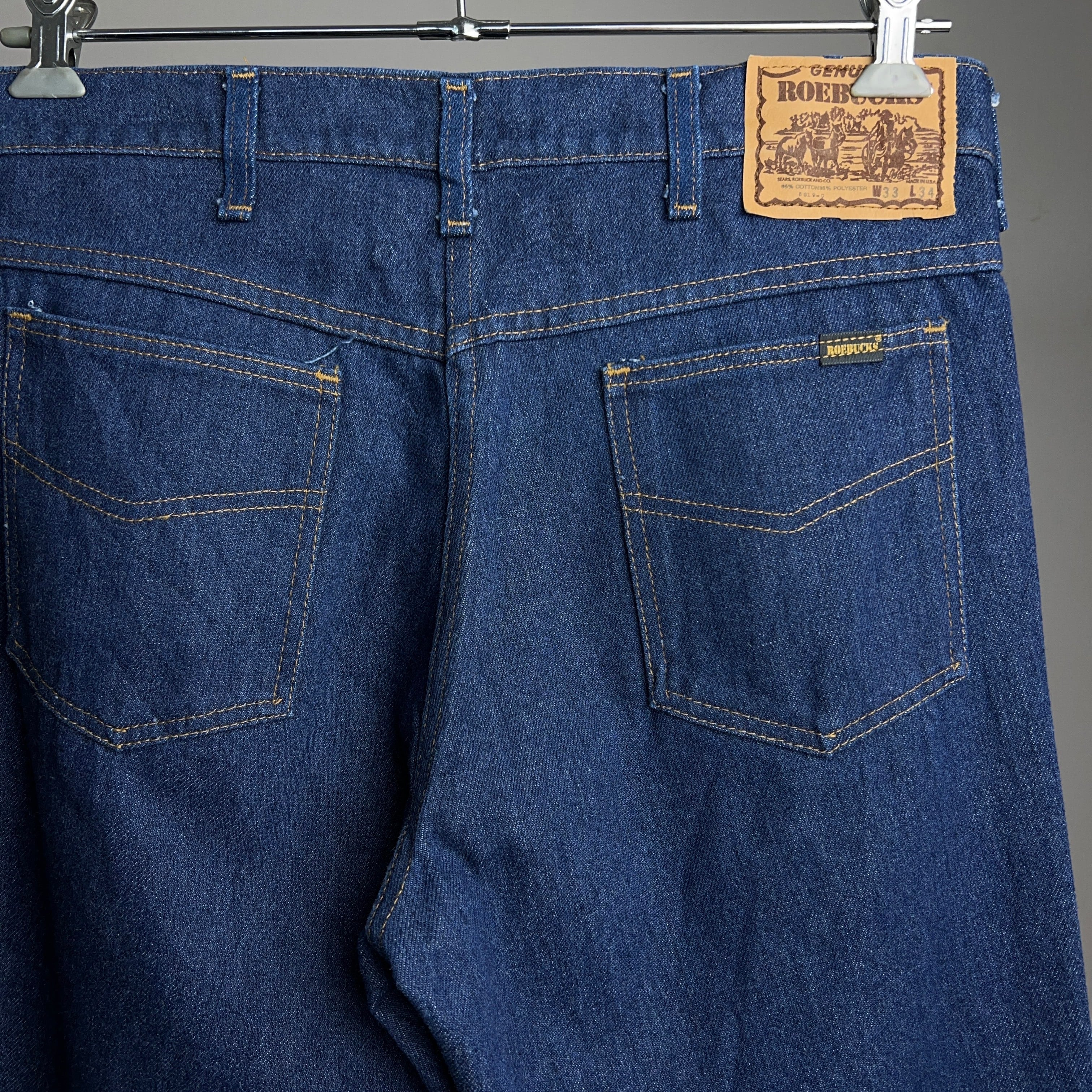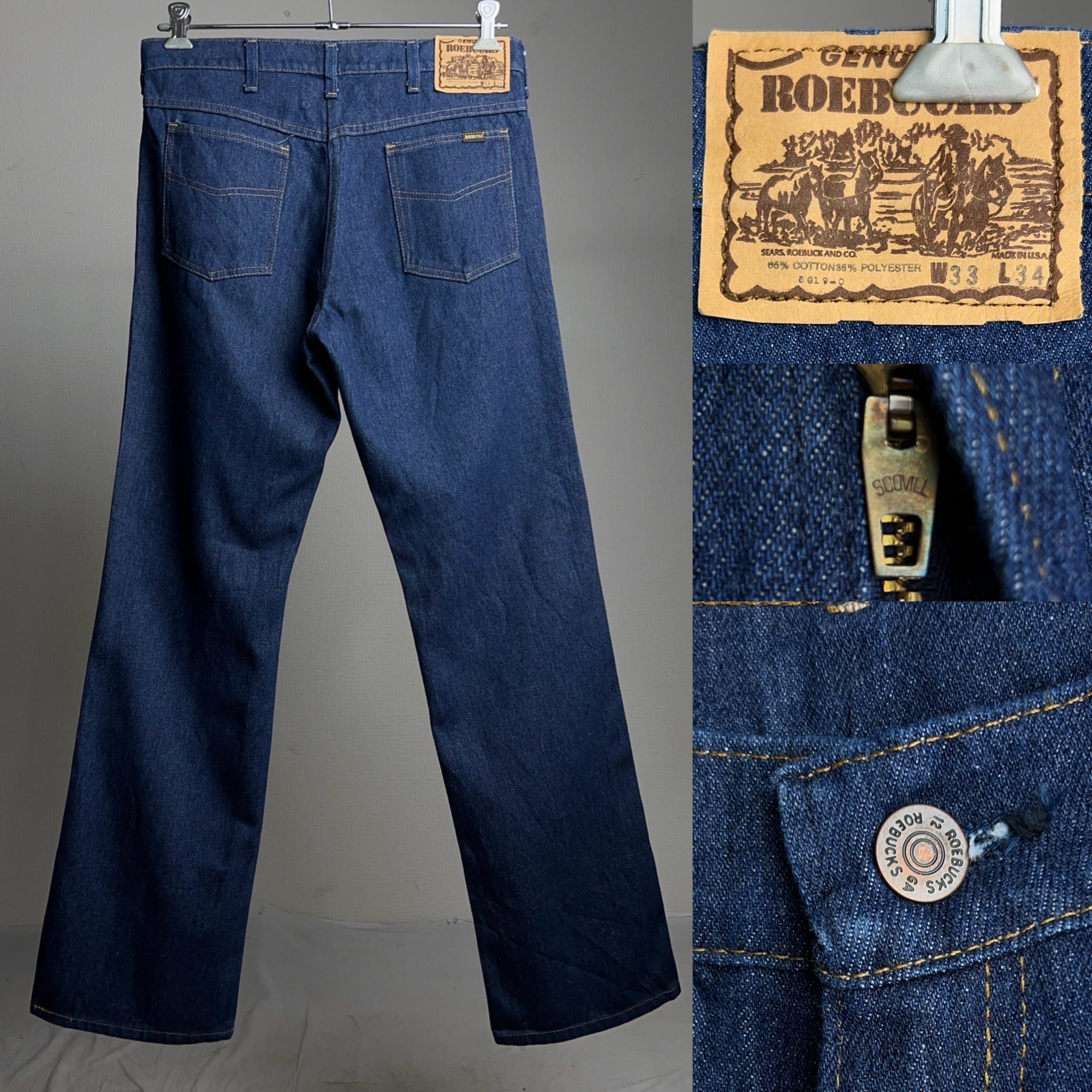 80's ROEBUCKS Bootcut Denim Pants W33 L34 80年代 ローバックス ブーツカット フレアデニムパンツ 濃紺 【1000A1048】【送料無料】