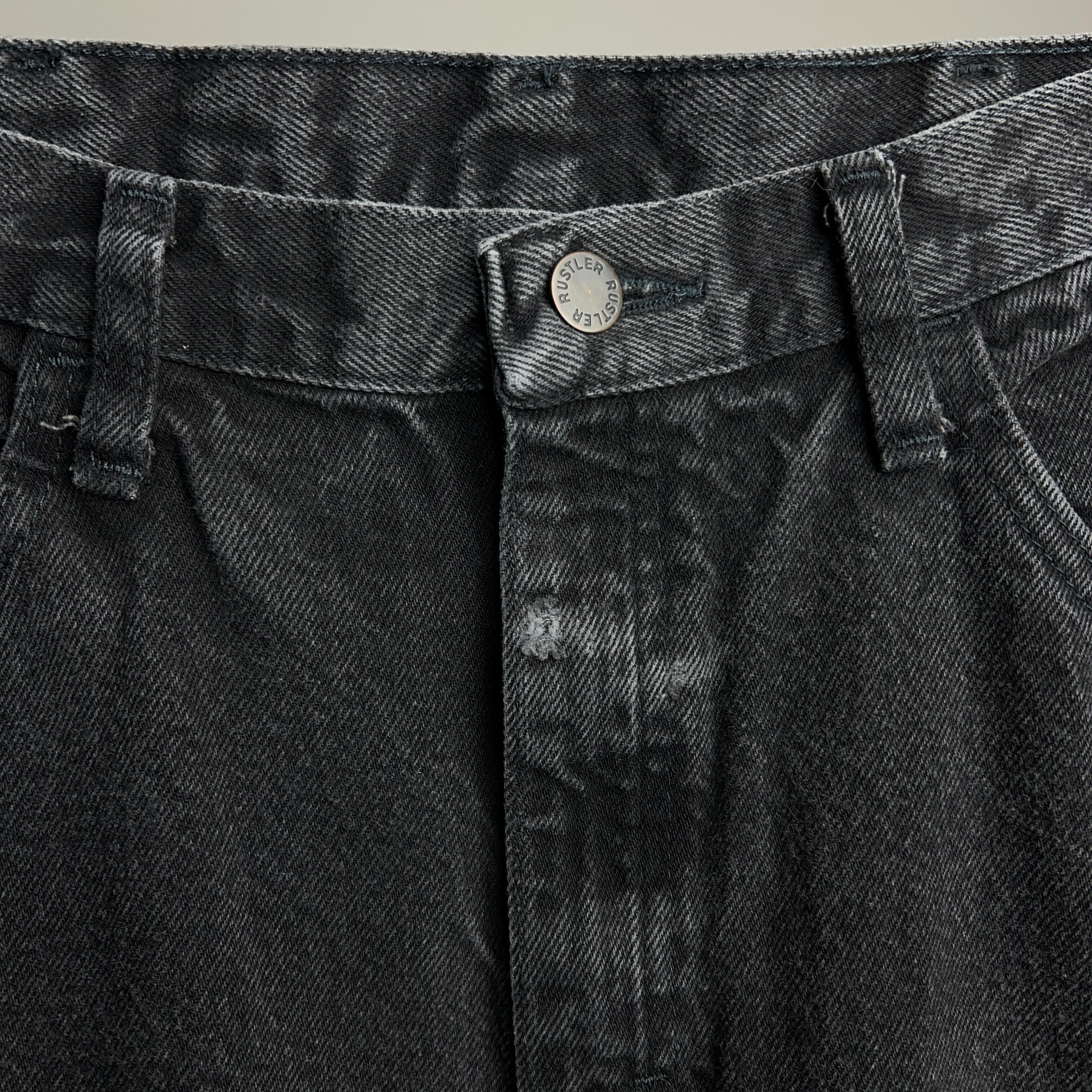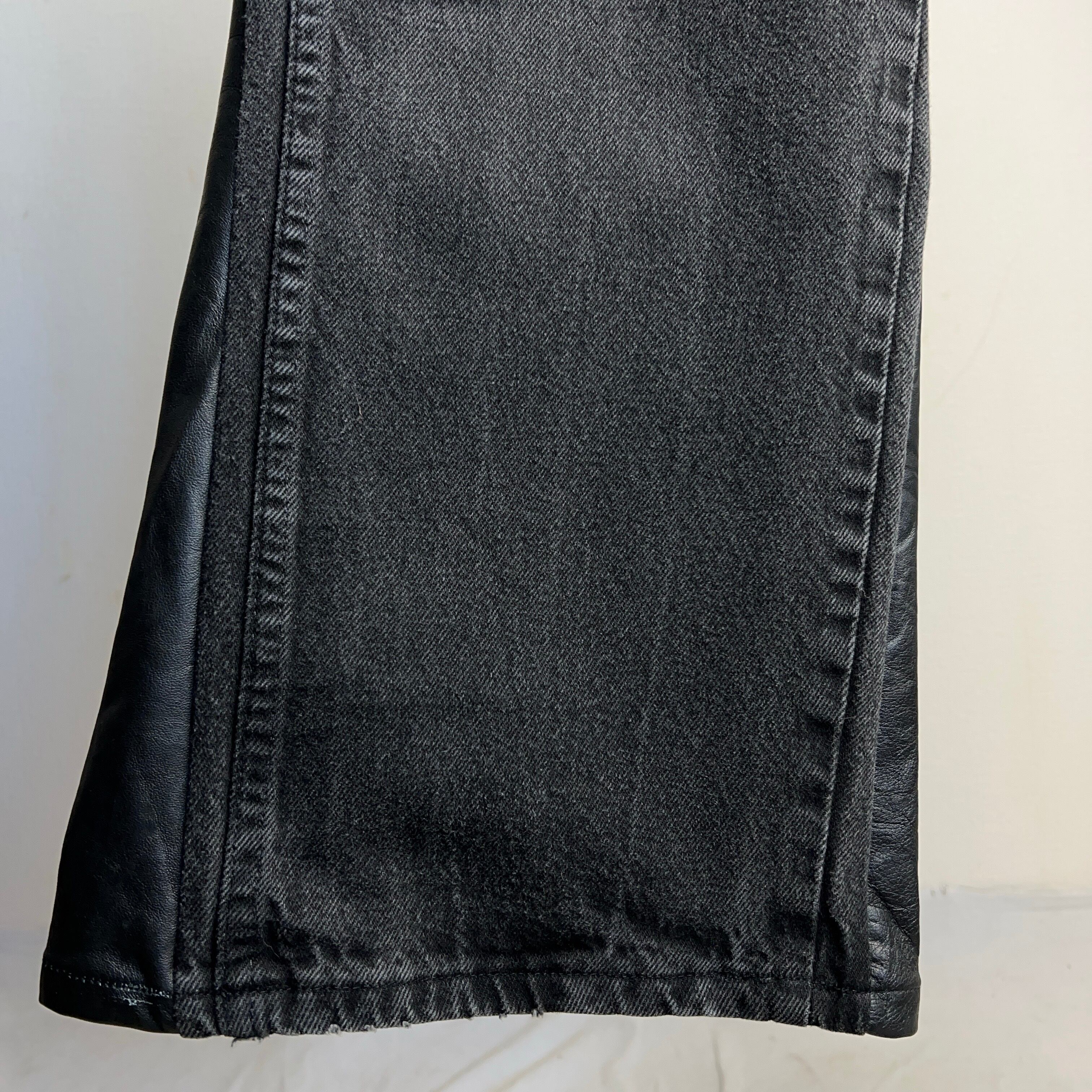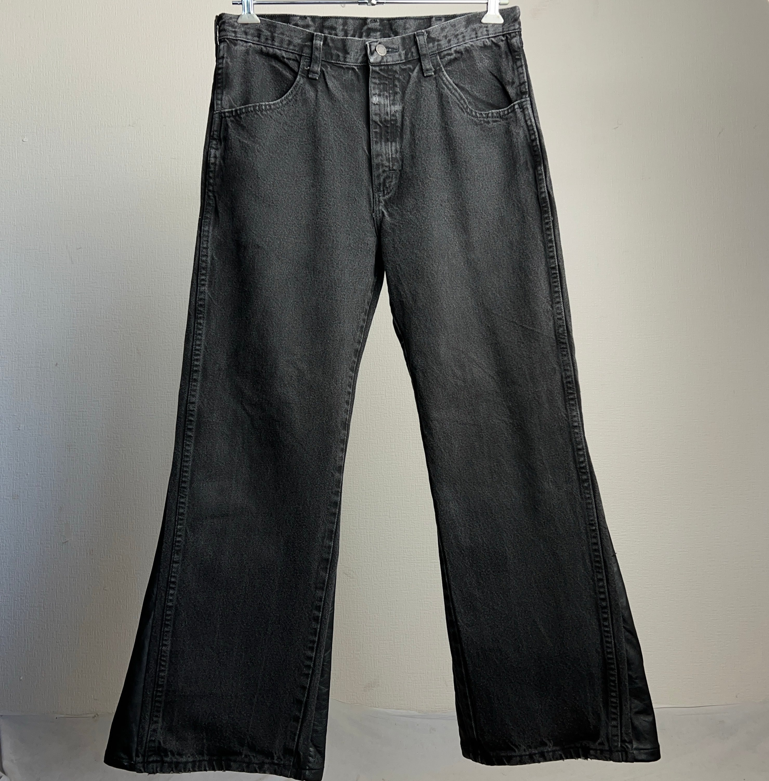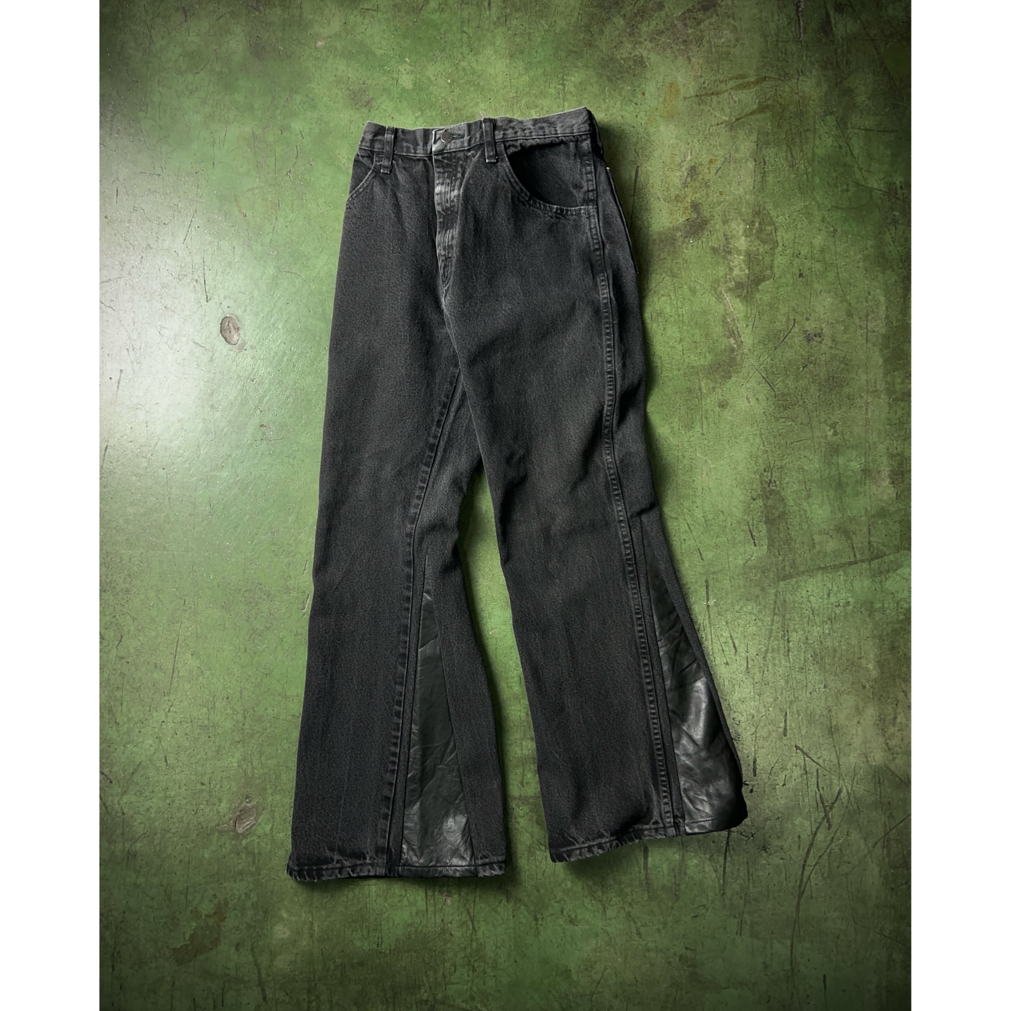 こちらのボディはRUSTLER。色褪せしたブラックデニムの裾にレザーを用いてフレア仕様にしています。