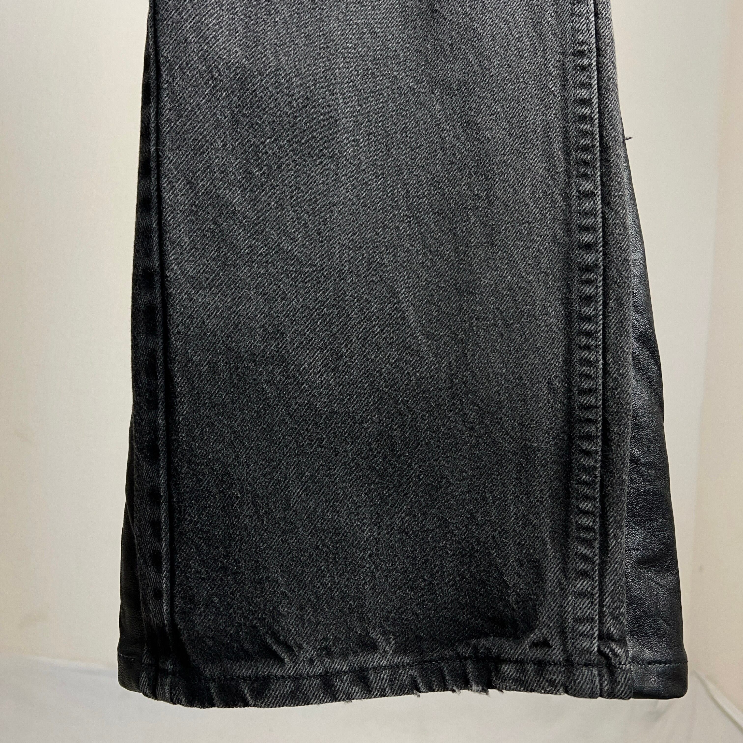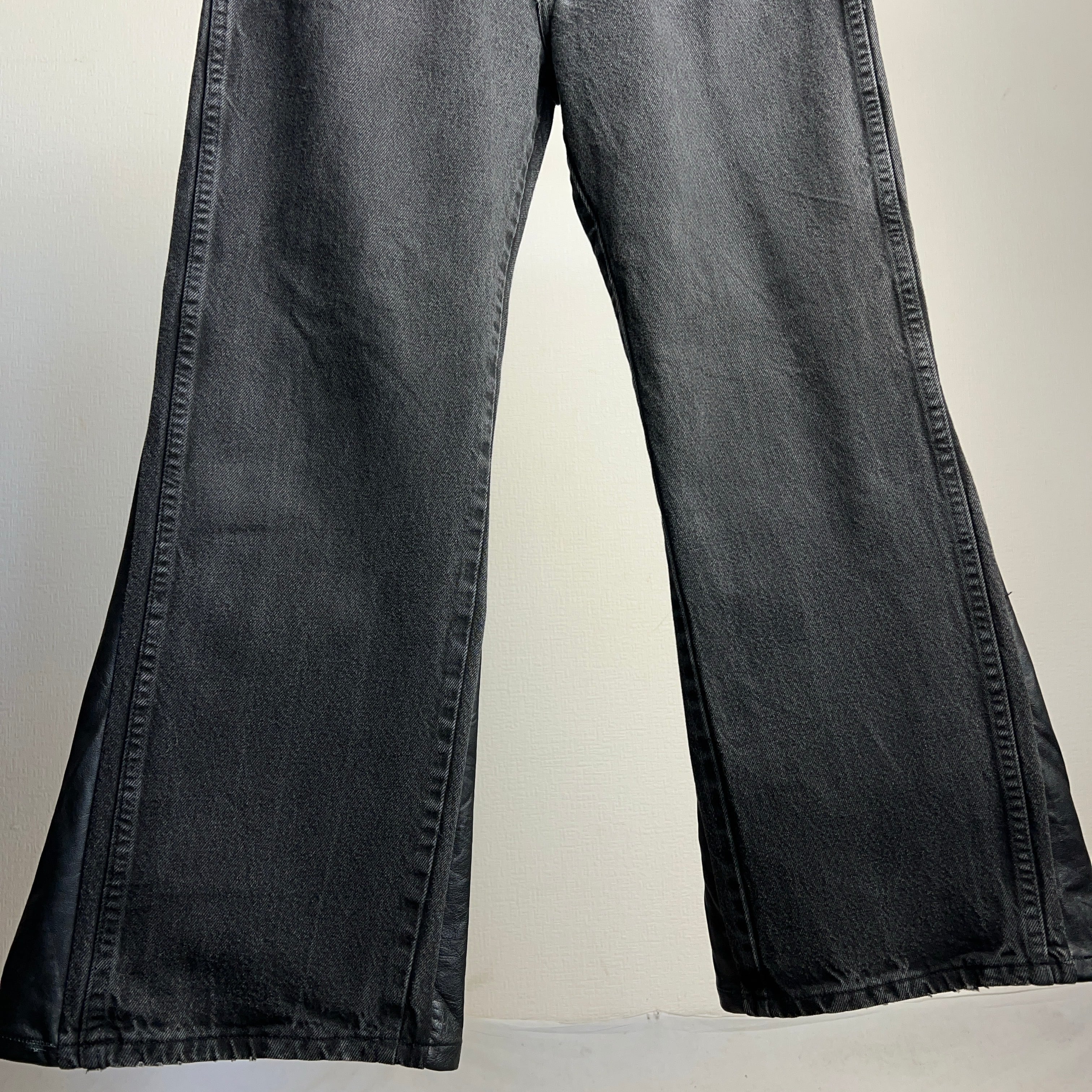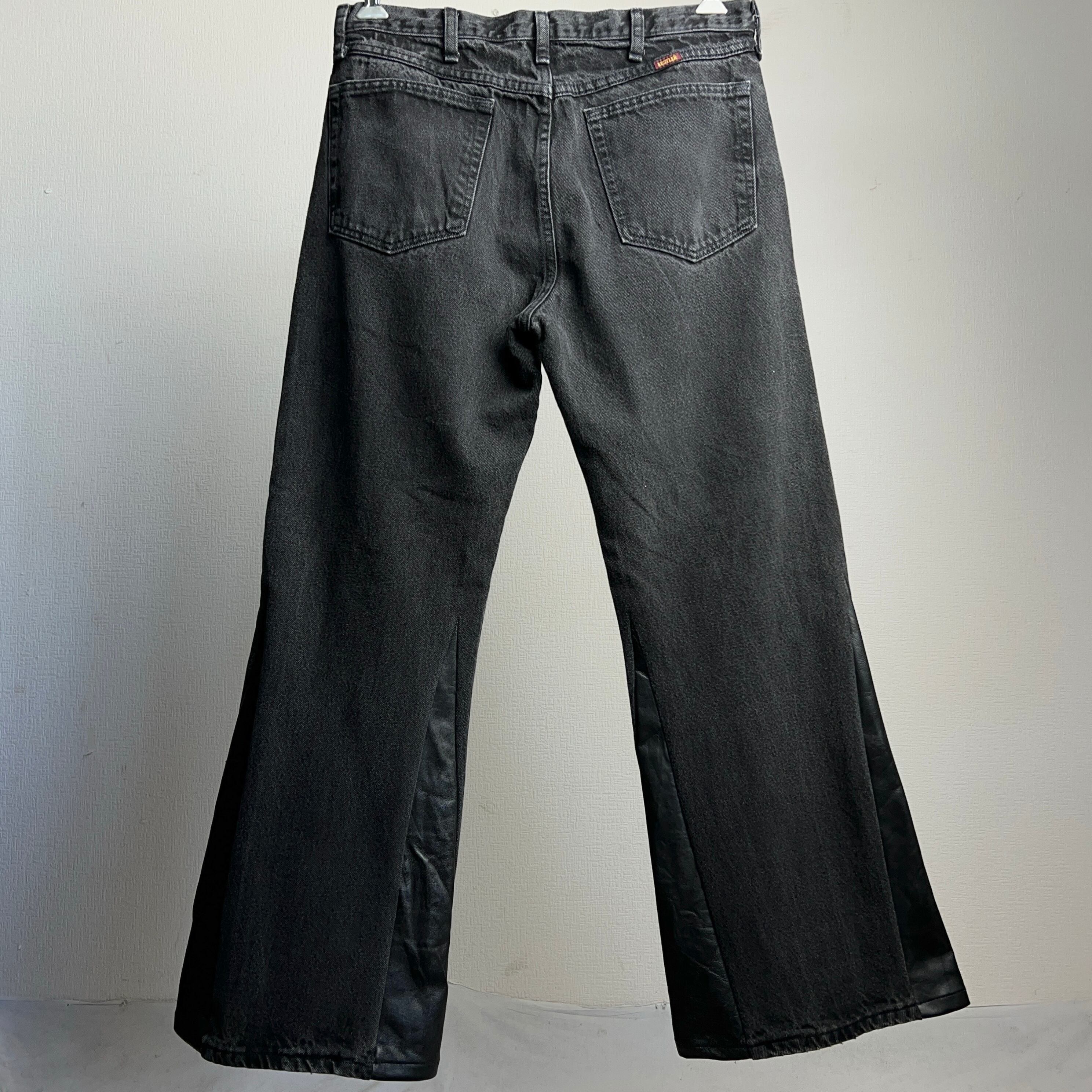 Black Denim×Leather Flare Pants RUSTLER W34 L30 ラスラー リメイク ブラックデニム×レザー フレアパンツ フレアデニム【1000A1134】【送料無料】【TAROCK Remake Collection】