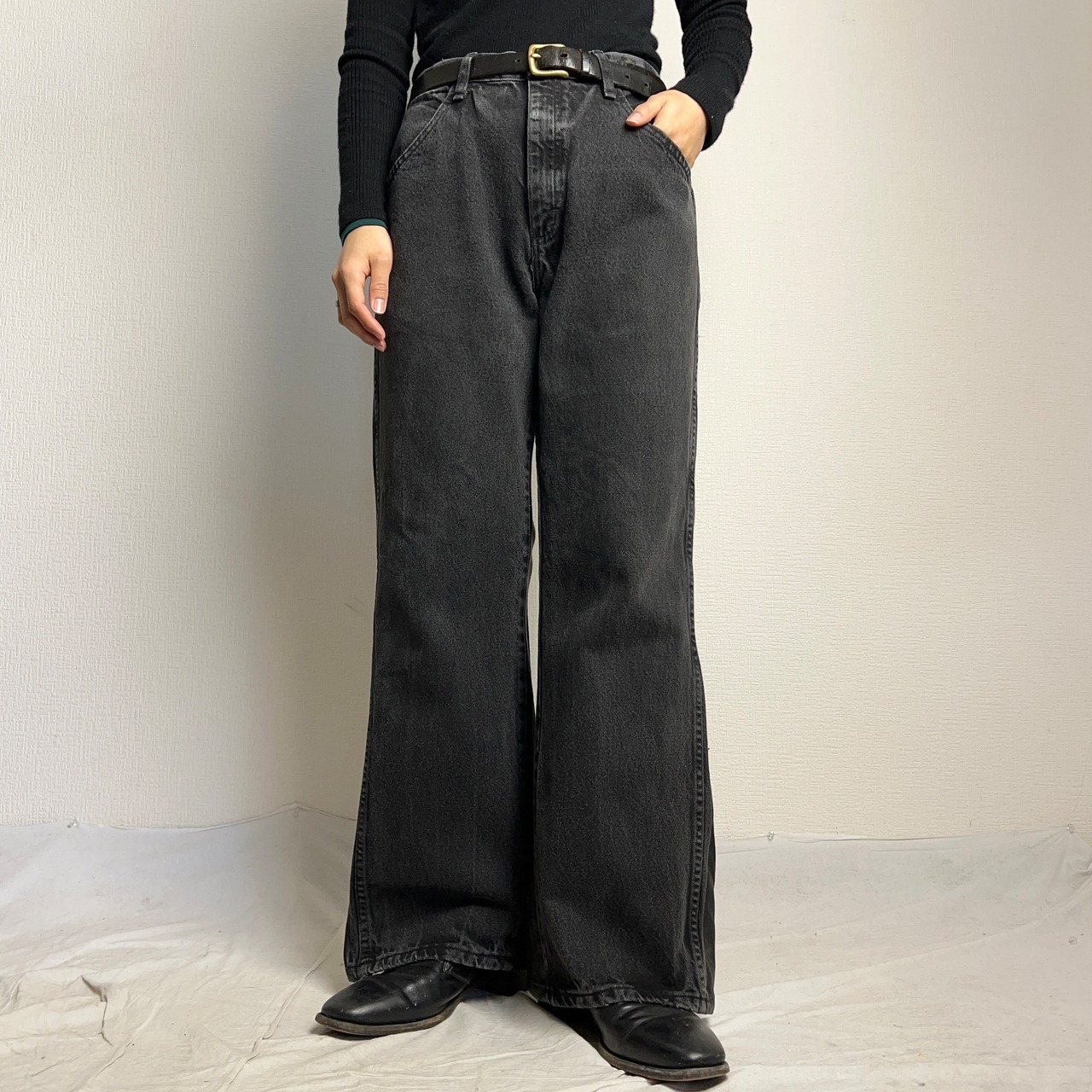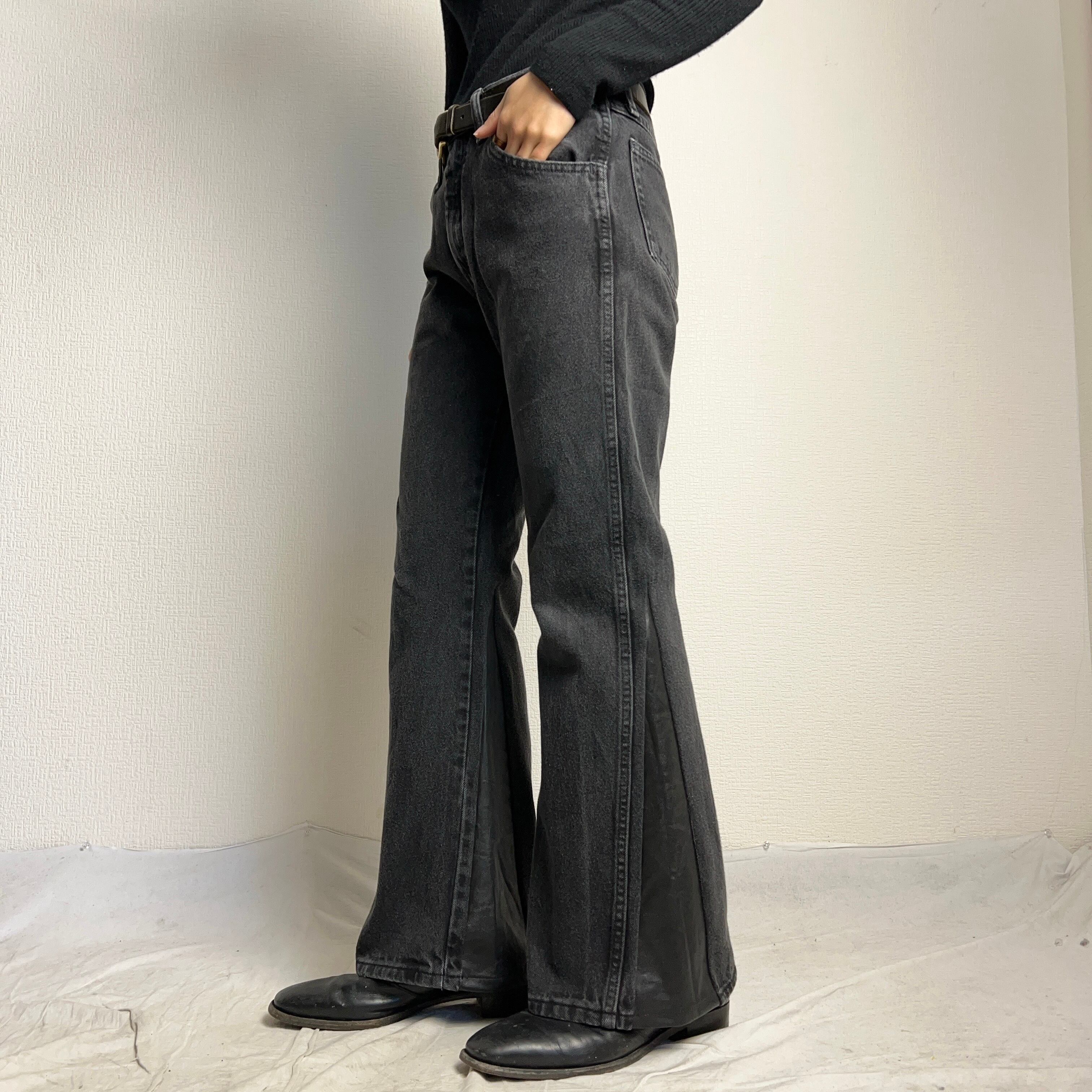 Levi's646や684をはじめ様々なフレアパンツを仕入れてきましたが、ブラックデニムのフレアは無い。。あったら絶対欲しいなと思っていたところ当店にもベテランリメイクスタッフが入社。