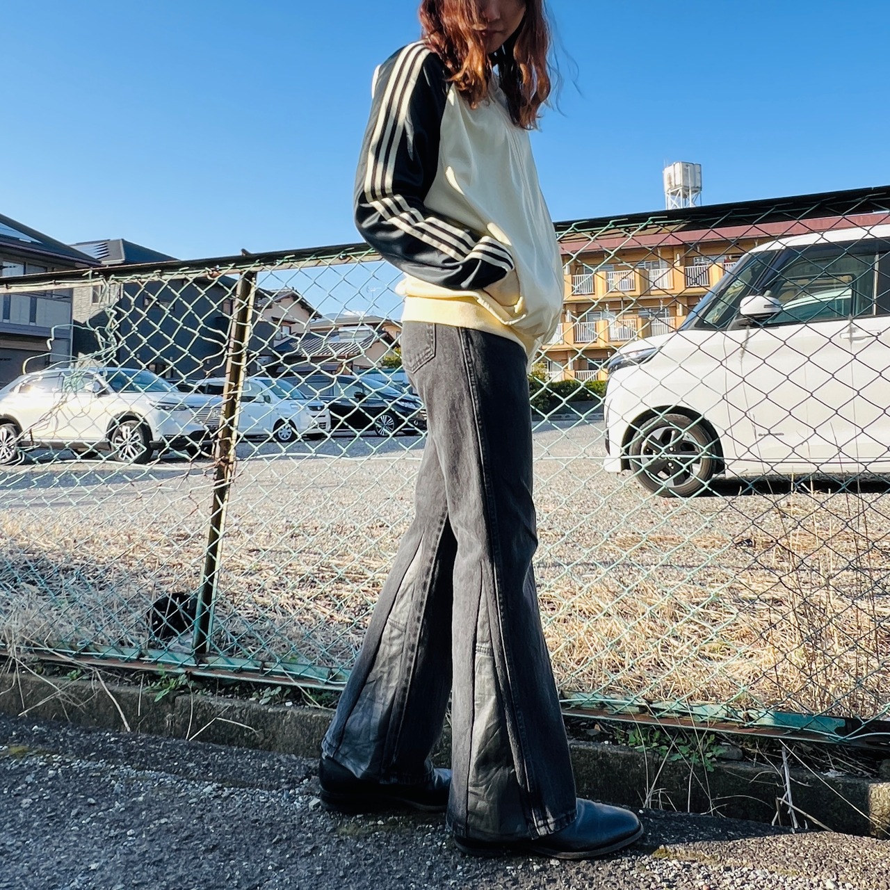 ブルーデニムでは合わせにくかったアイテムもブラックデニムならすんなりと合わせられる。