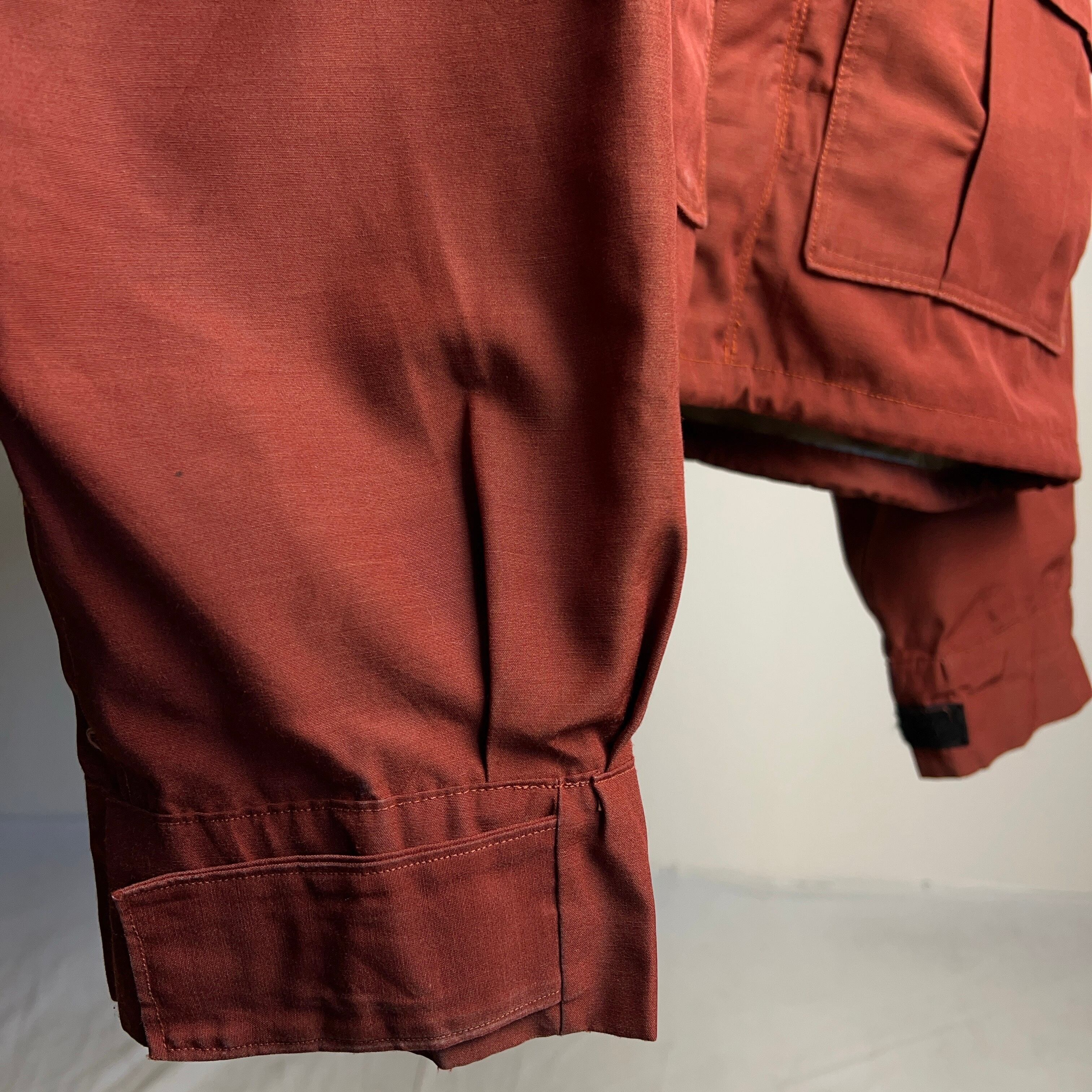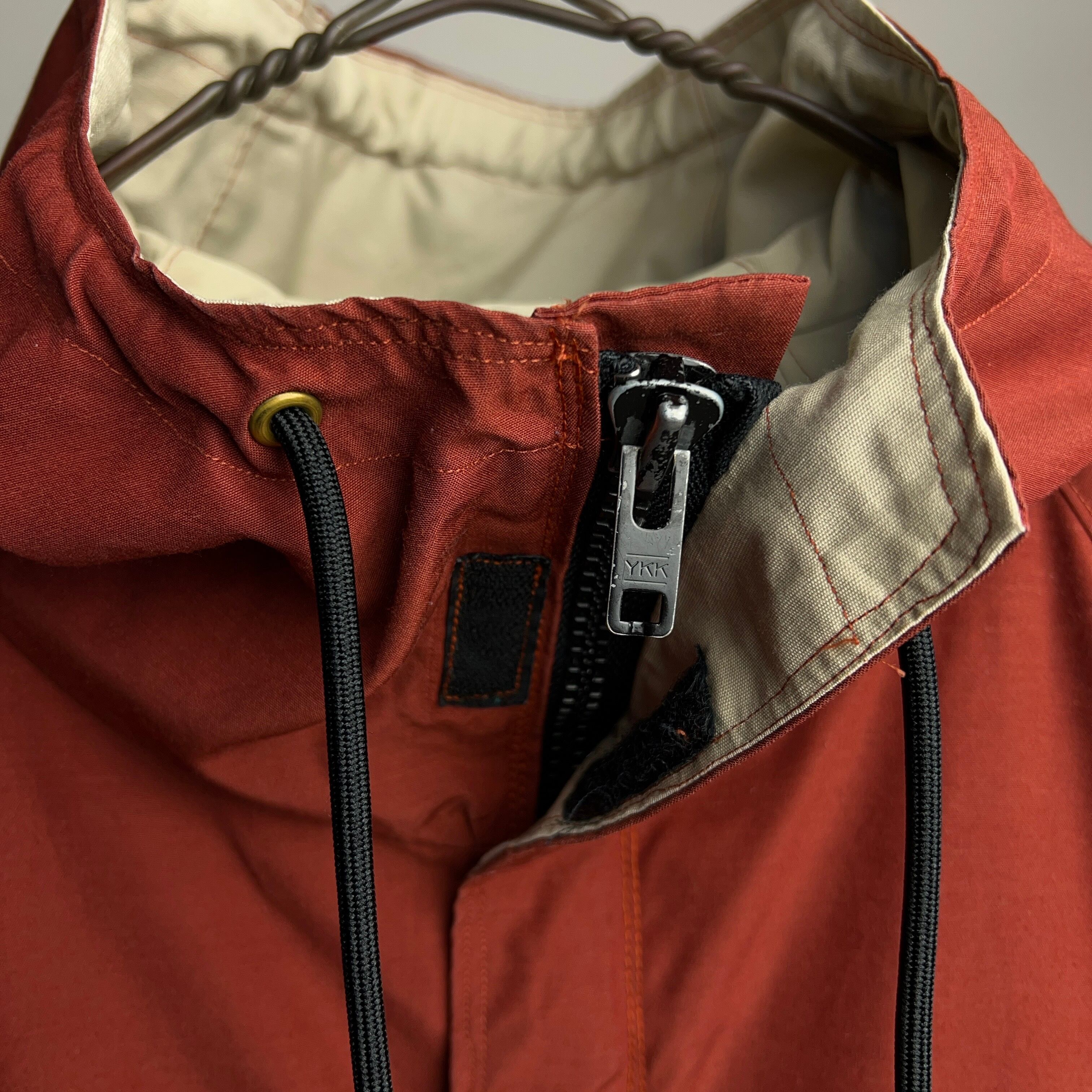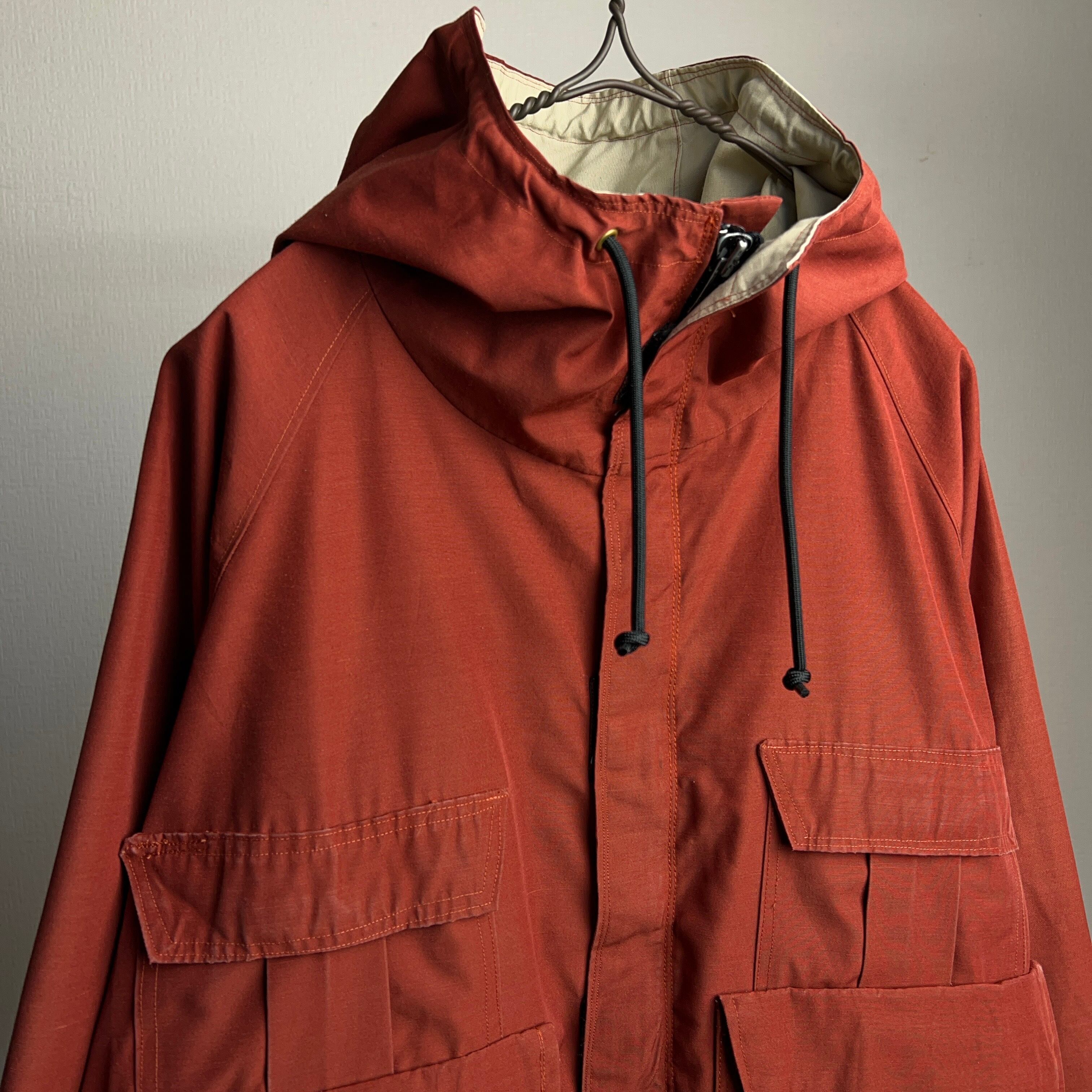 80年代前後のクラシックなマウンテンパーカをショート丈にカスタマイズ。下部に付いた大きいポケットを胸の位置に持ってくることでよりフィッシングジャケットらしさを出しています。