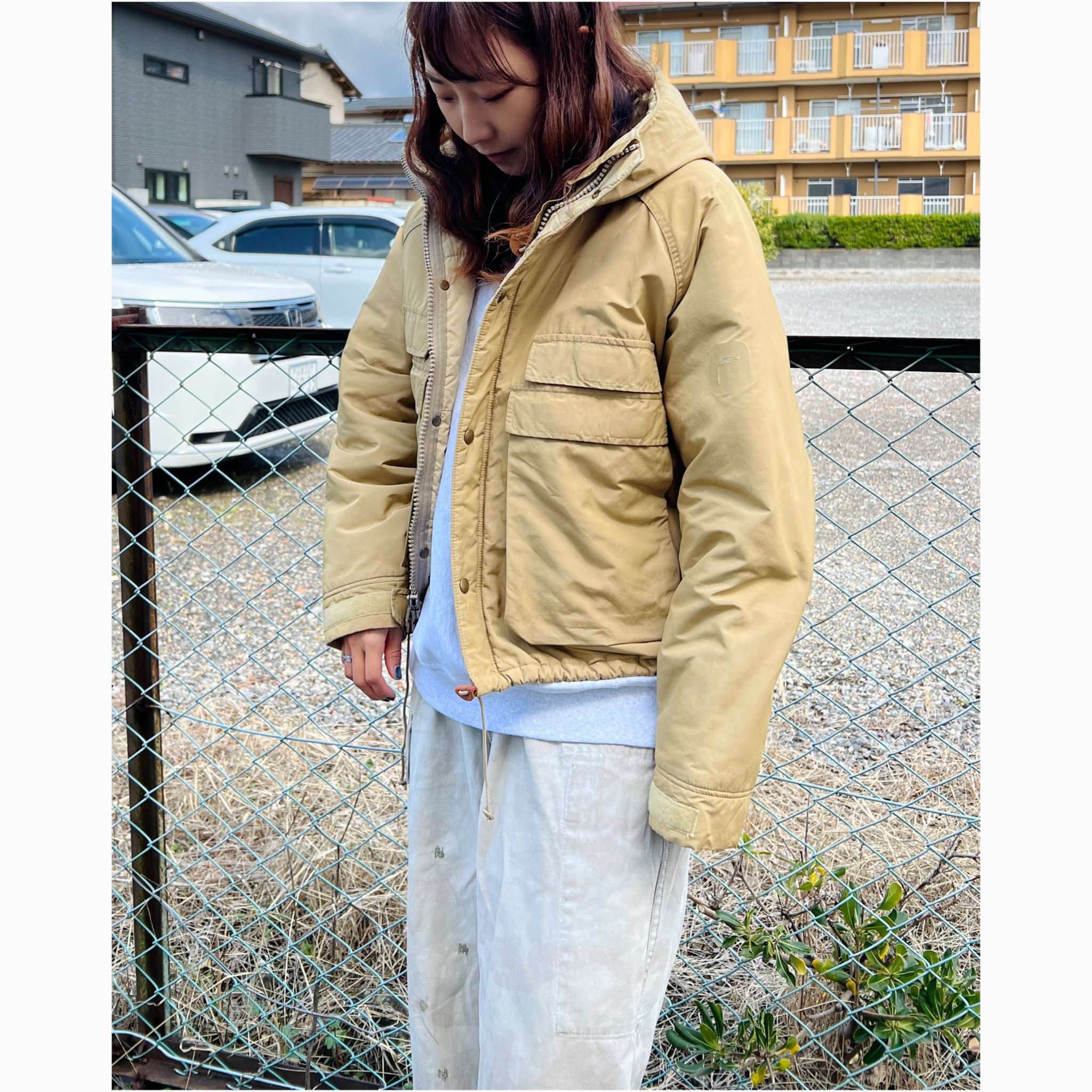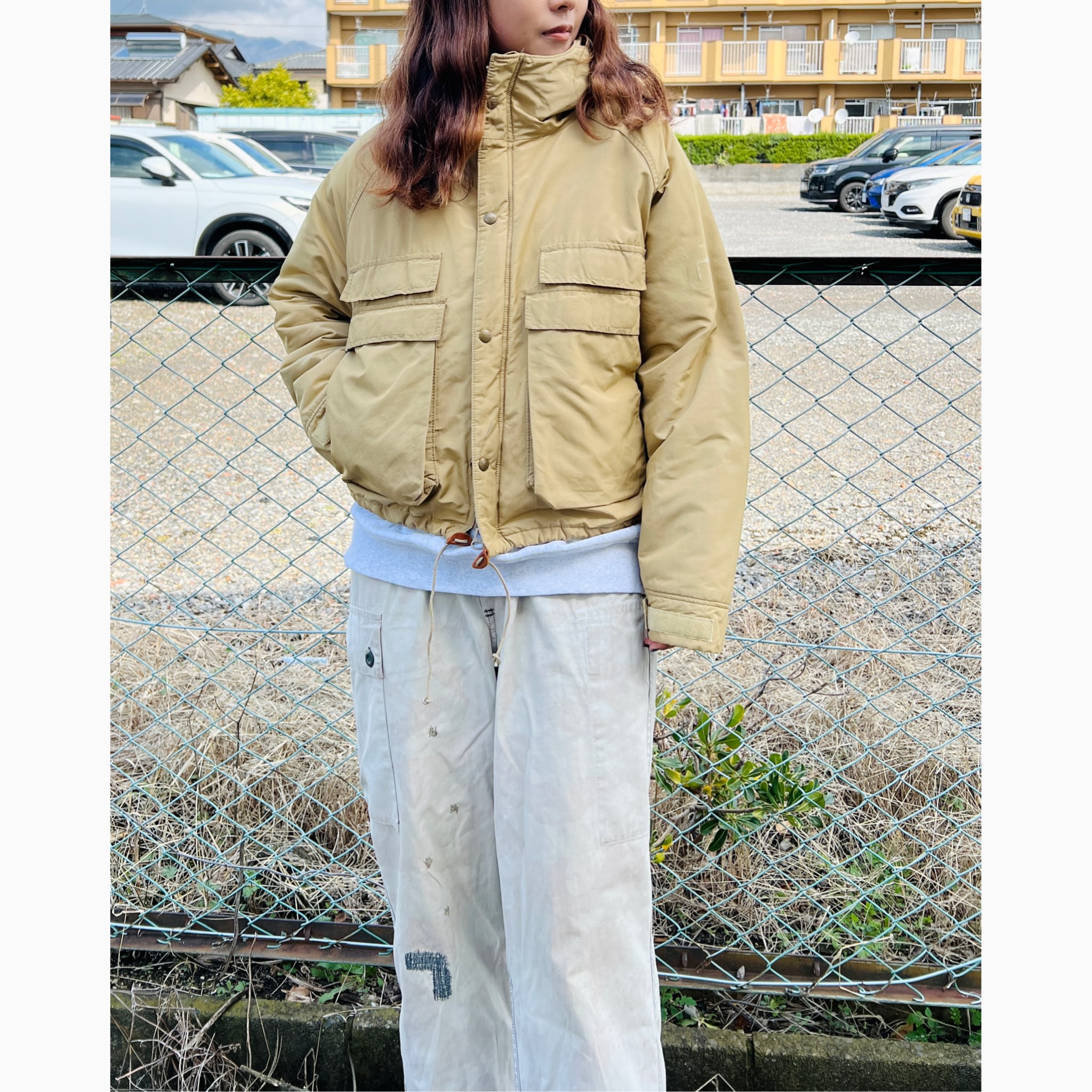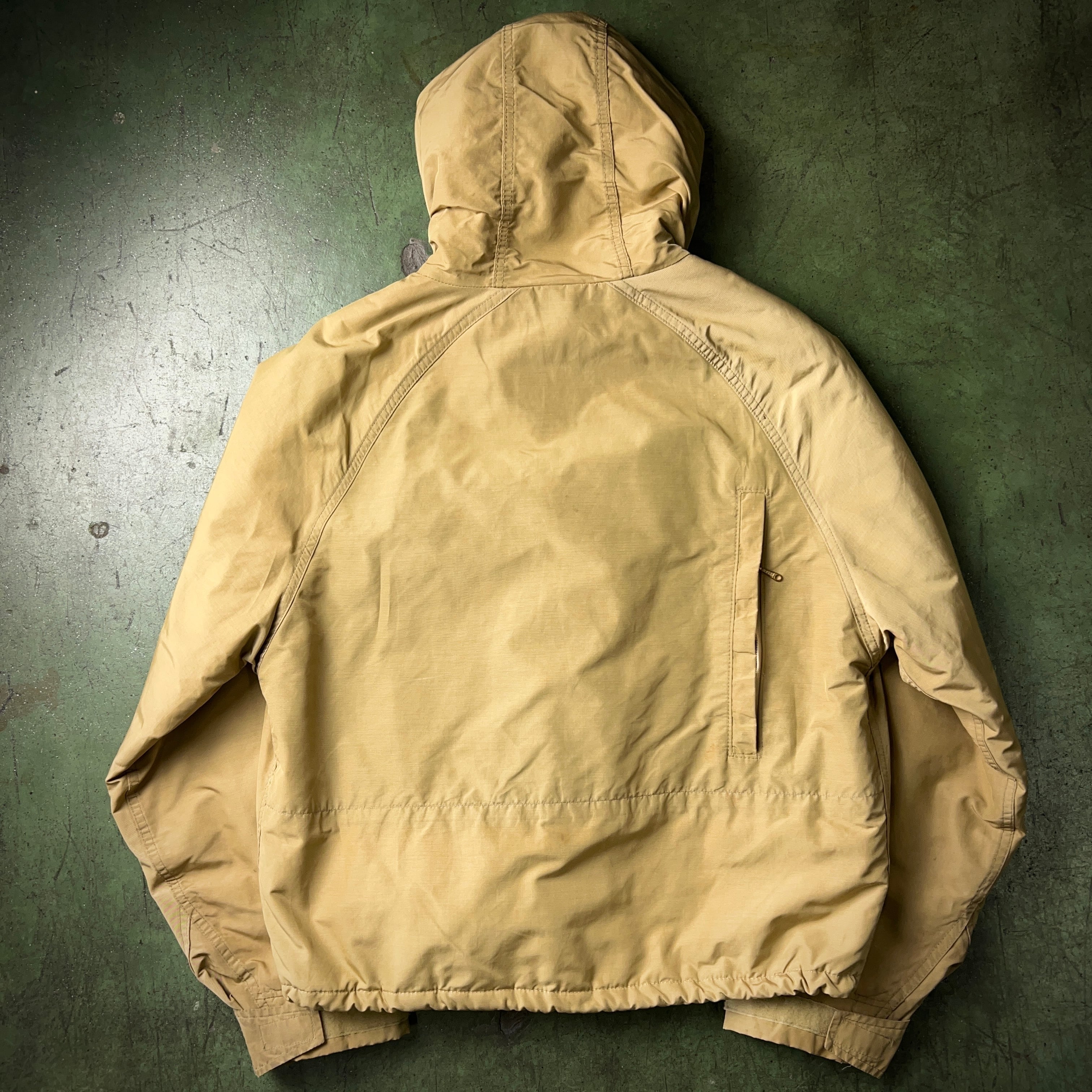80年代のクラシックなL.L.Beanマウンテンパーカをショート丈にカスタマイズ。下部に付いた大きいポケットを胸の位置に持ってくることでよりフィッシングジャケットらしさを出しています。