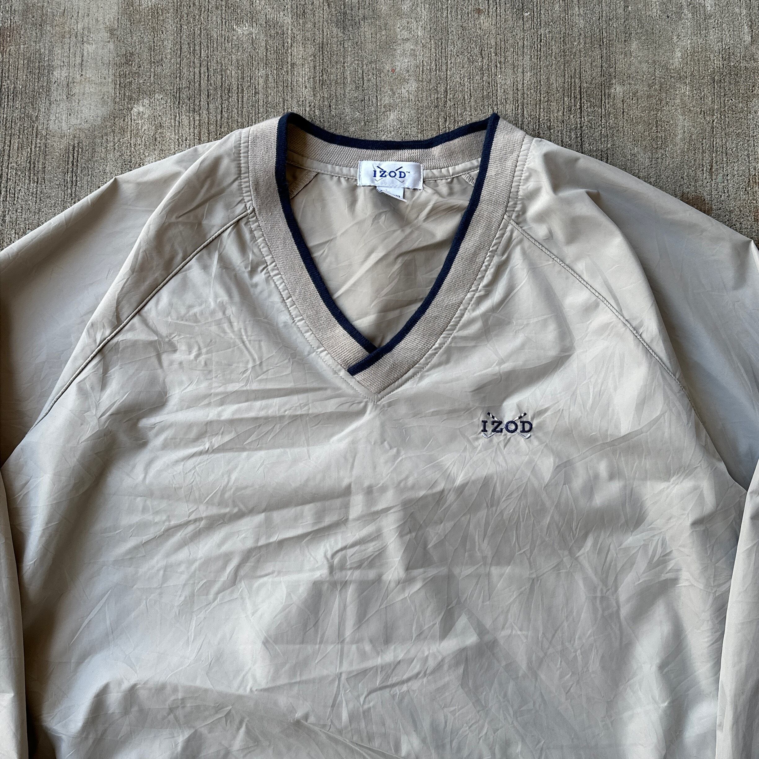 IZOD Nylon Pullover Jacket SIZE XL アイゾッド ナイロンプルオーバージャケット 刺繍 ベージュ【3000円均一商品】【2点以上の購入で1000円OFF】【TH0610】