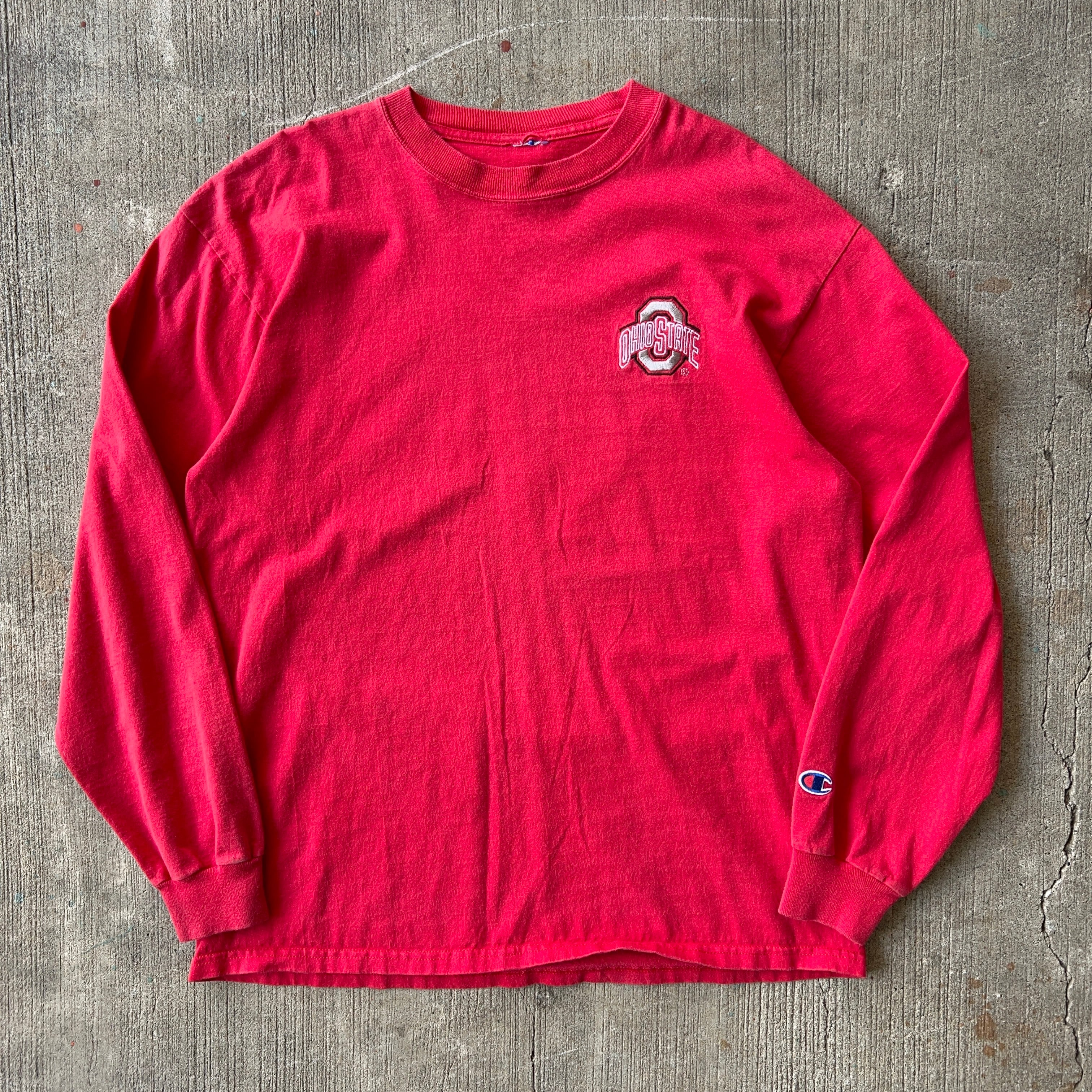 Champion "OHIO STATE" Collage L/S T-Shirt SIZE XL チャンピオン カレッジプリント 刺繍 ロングスリーブTシャツ ロンT 赤 レッド 【3000円均一商品】【TH0628】