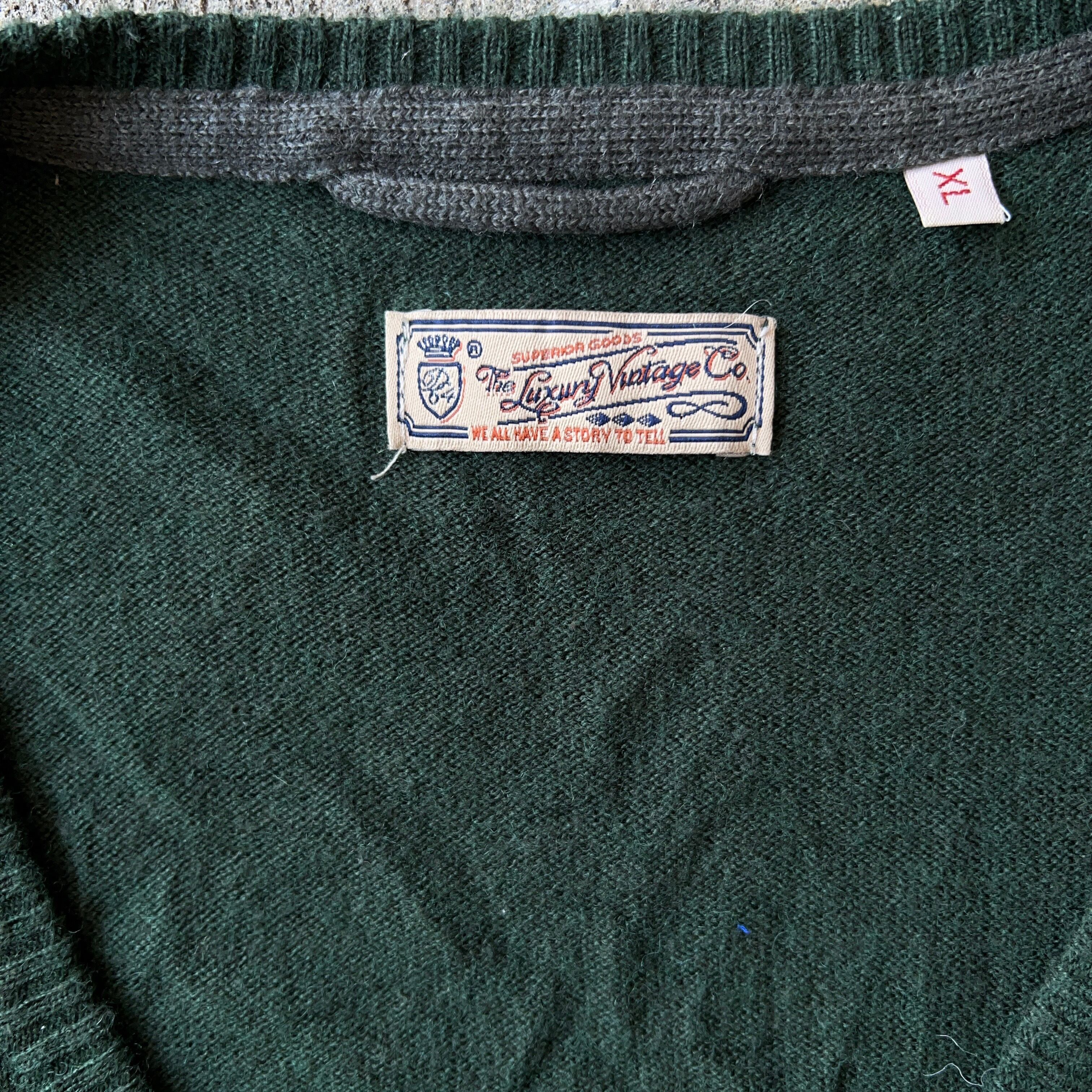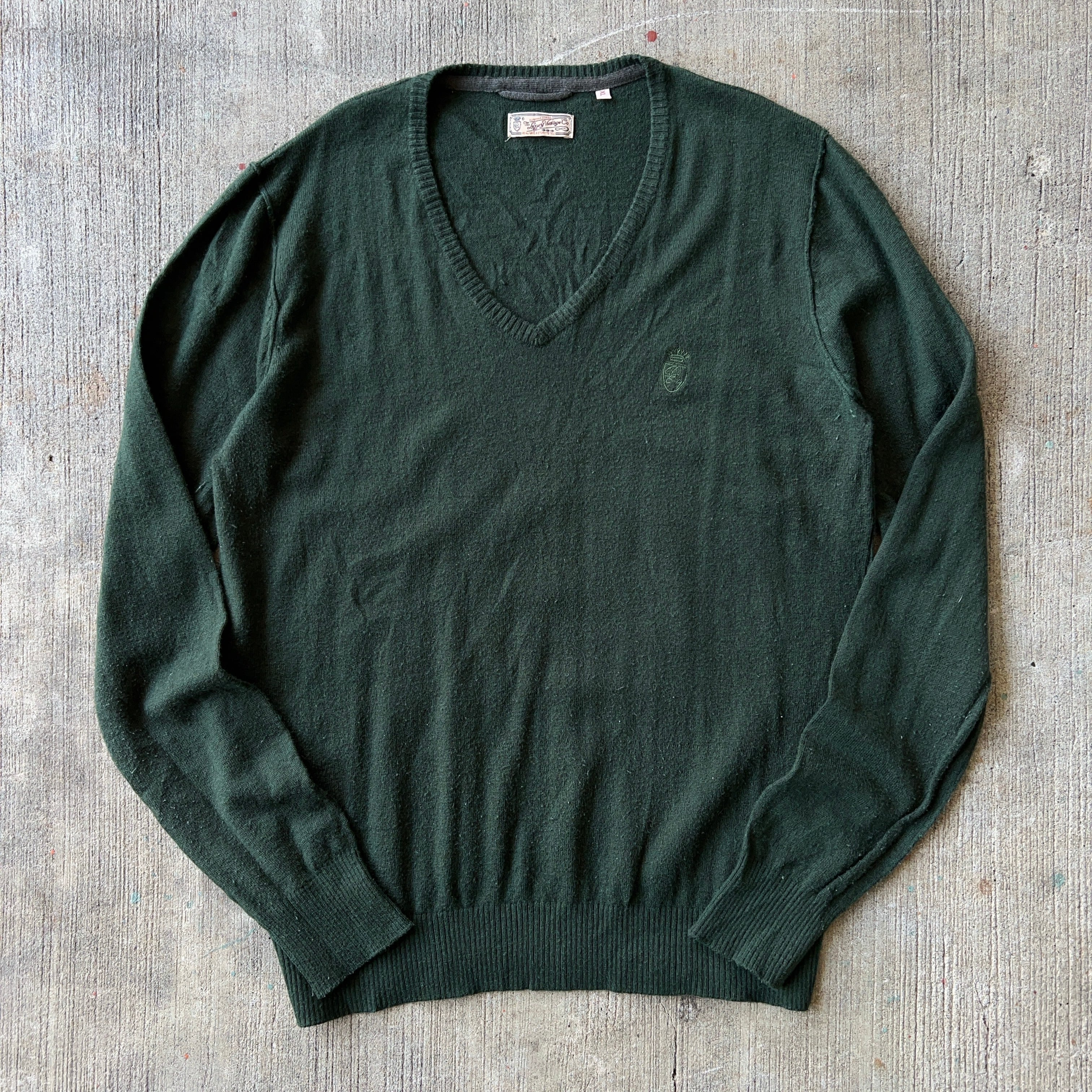 DSTREZZED V-neck Knit Sweater Green SIZE XL ニット セーター Vネック 刺繍 グリーン 緑【3000円均一商品】【TH0641】