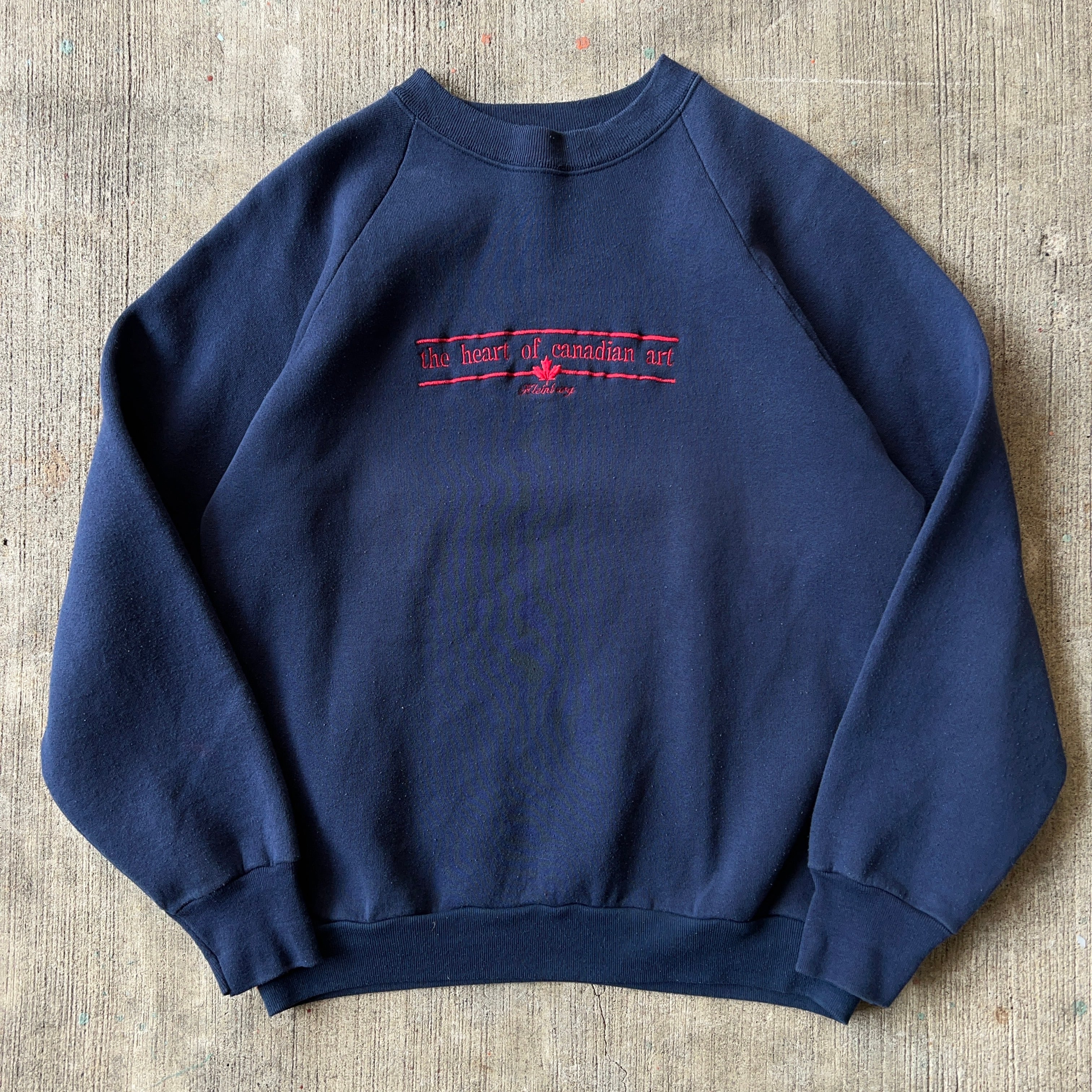 90's Art Sweatshirt Navy スウェット ラグラン 刺繍 ネイビー アート【3000円均一商品】【2点以上の購入で1000円OFF】【TH0658】