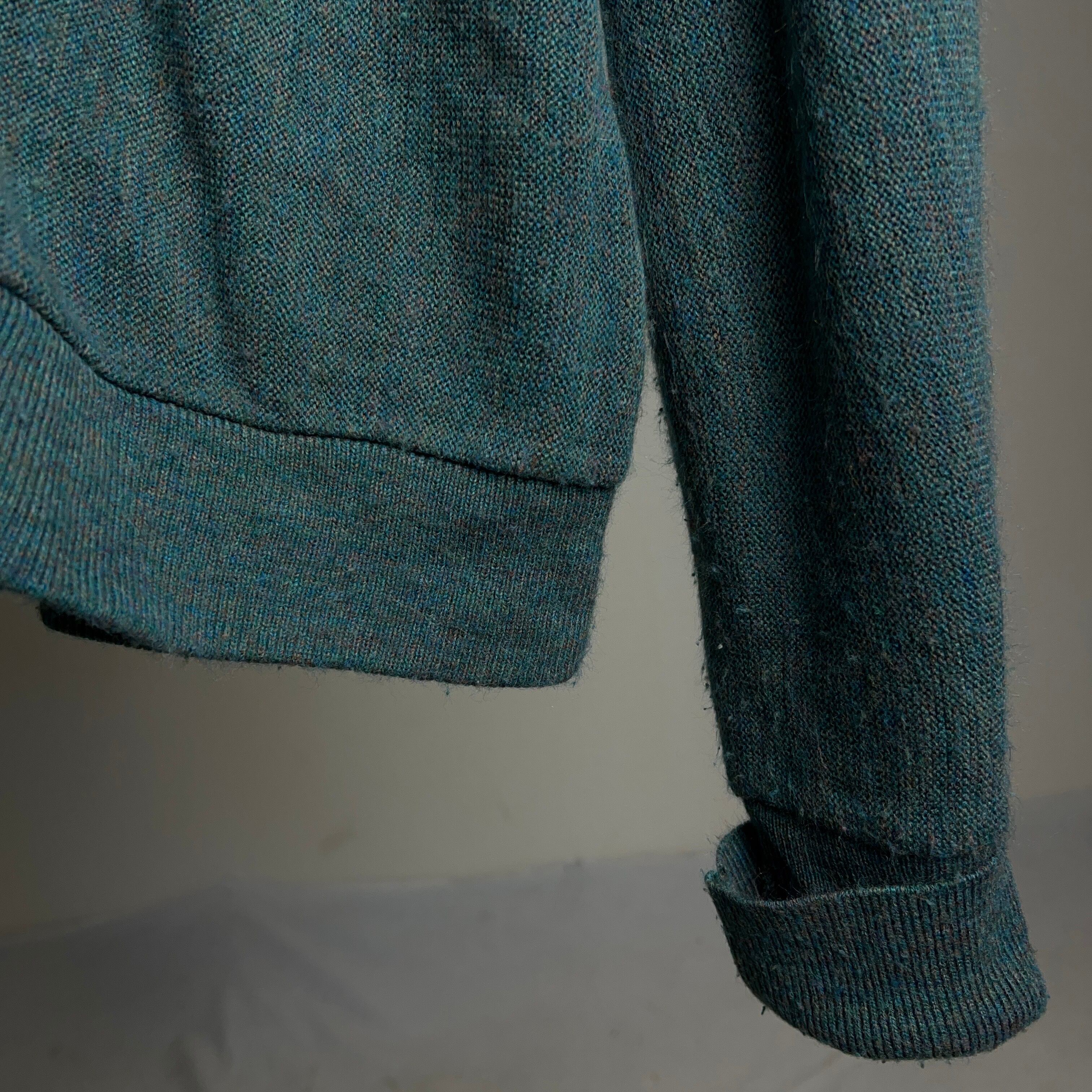 通常は単色の物が多いラコステカーディガンですが、こちらは様々なカラーの糸で編み込まれているためオーロラのような奥深い色合いとなっています。