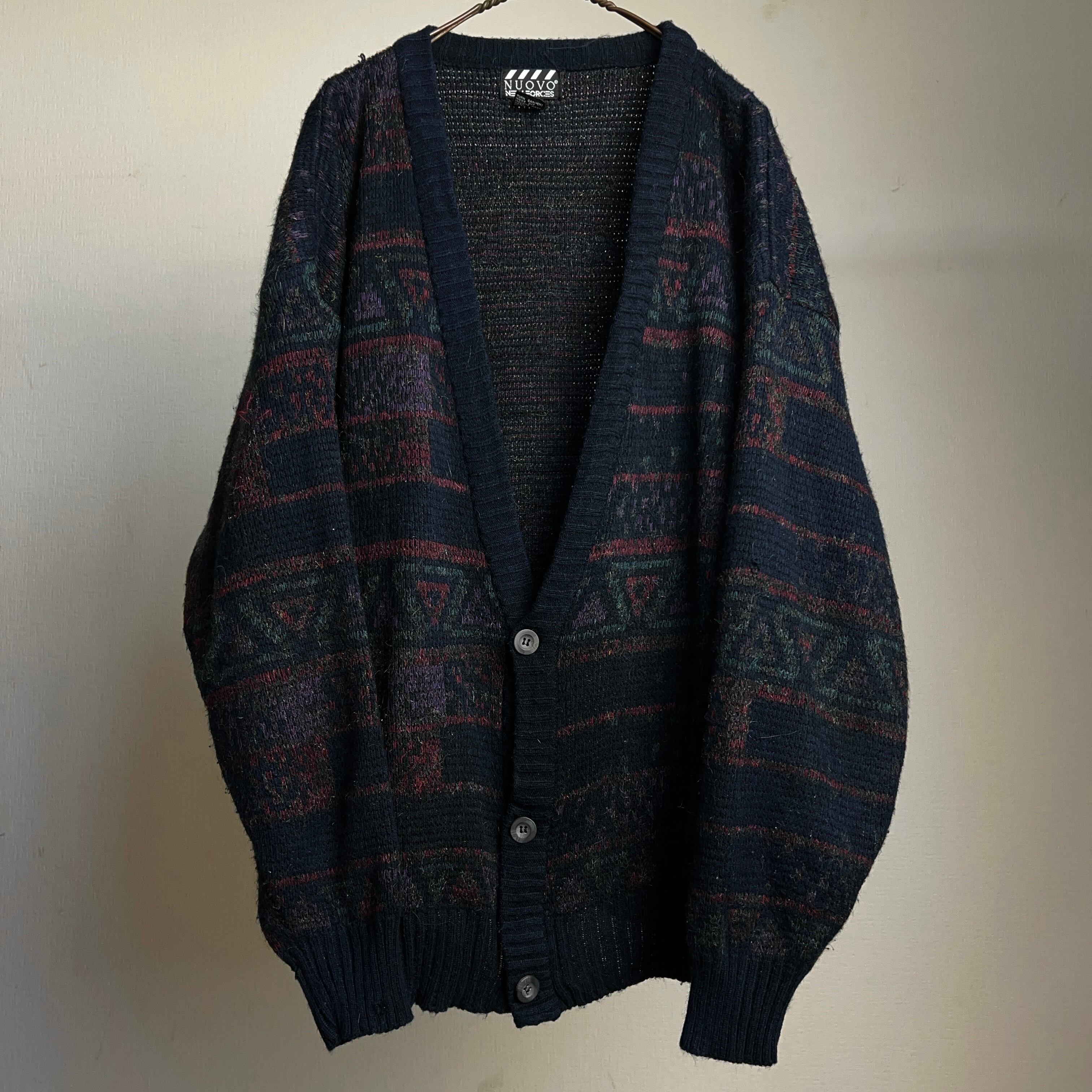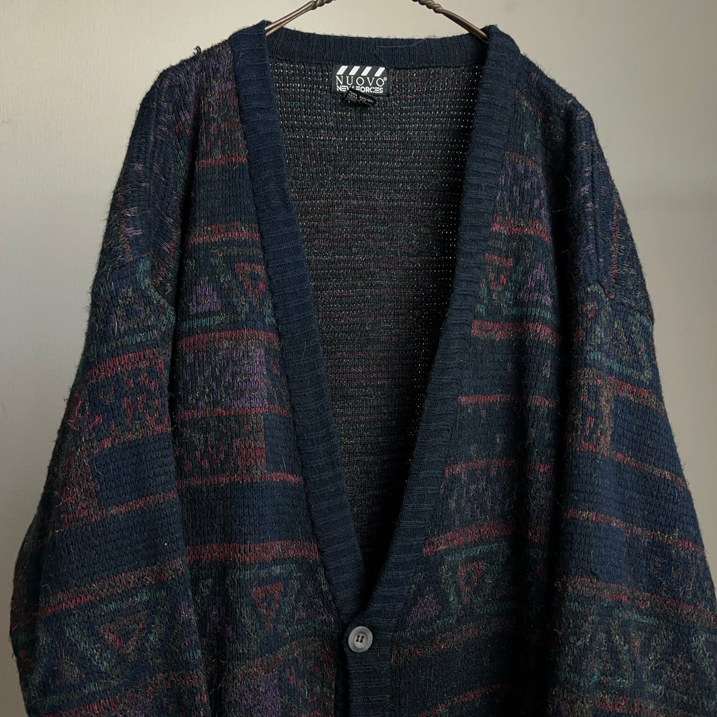 90's~ Design Knit Cardigan SIZE XL 90年代 00年代 総柄 ニットカーディガン アクリル【1000A1350】