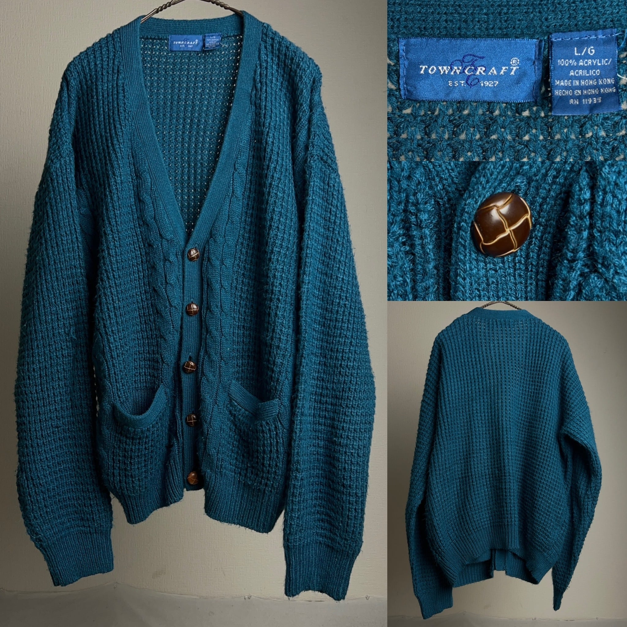 old TOWNCRAFT Knit Cardigan Blue SIZE L 90年代 タウンクラフト アクリルニットカーディガン ブルーグリーン【1000A1354】