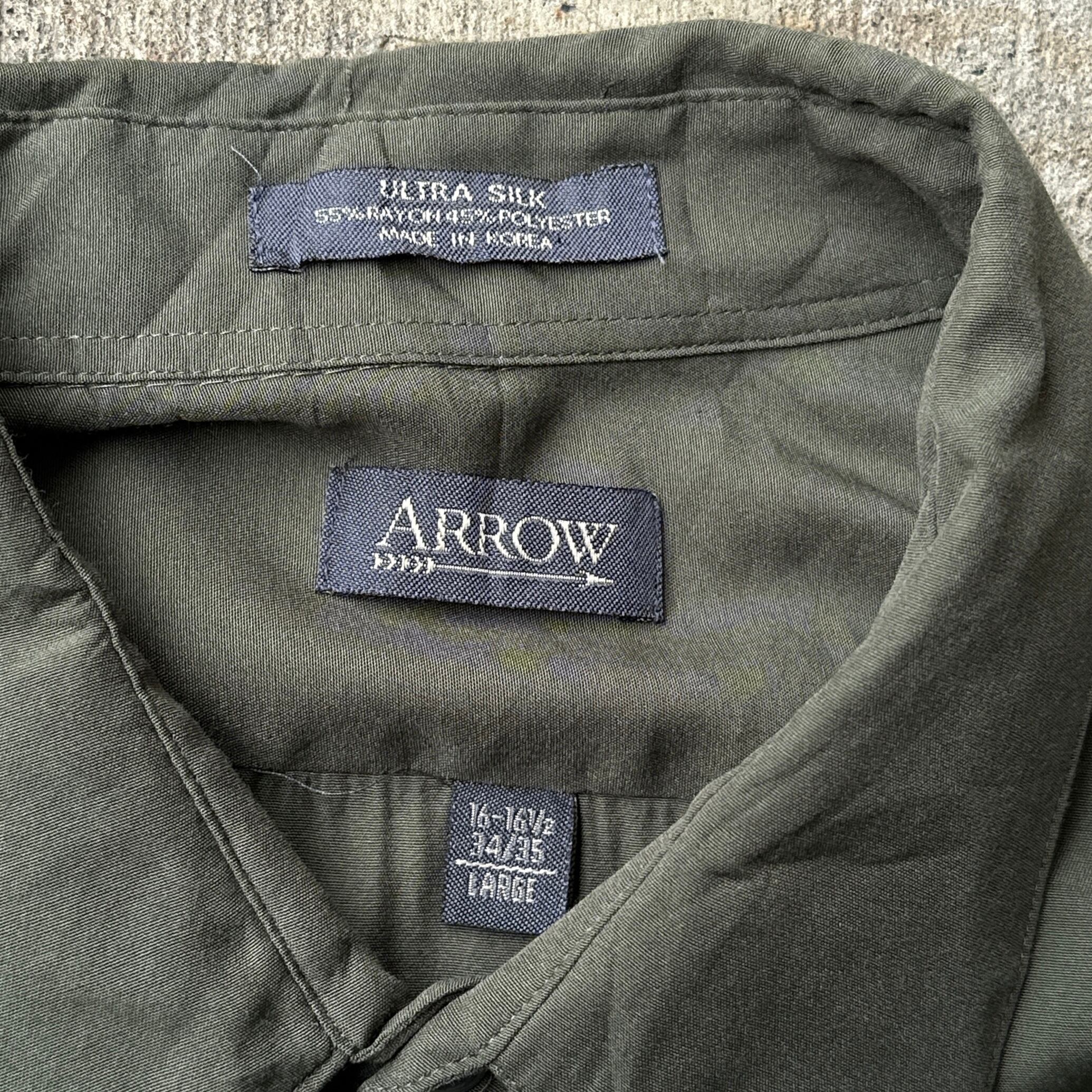 ARROW L/S Ultra Silk Shirt Khaki SIZE L アロー シルクシャツ 長袖 カーキ てろてろ【3000円均一商品】【2点以上の購入で1000円OFF】【TH0678】