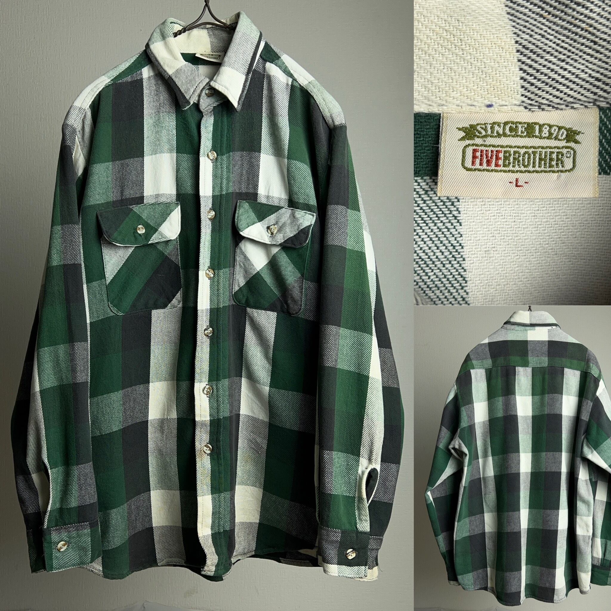 90's~ FIVEBROTHER Heavy Flannel Shirt SIZE L 90年代 00年代 ファイブブラザー ヘビーフランネルシャツ チェック柄【1000A1380】