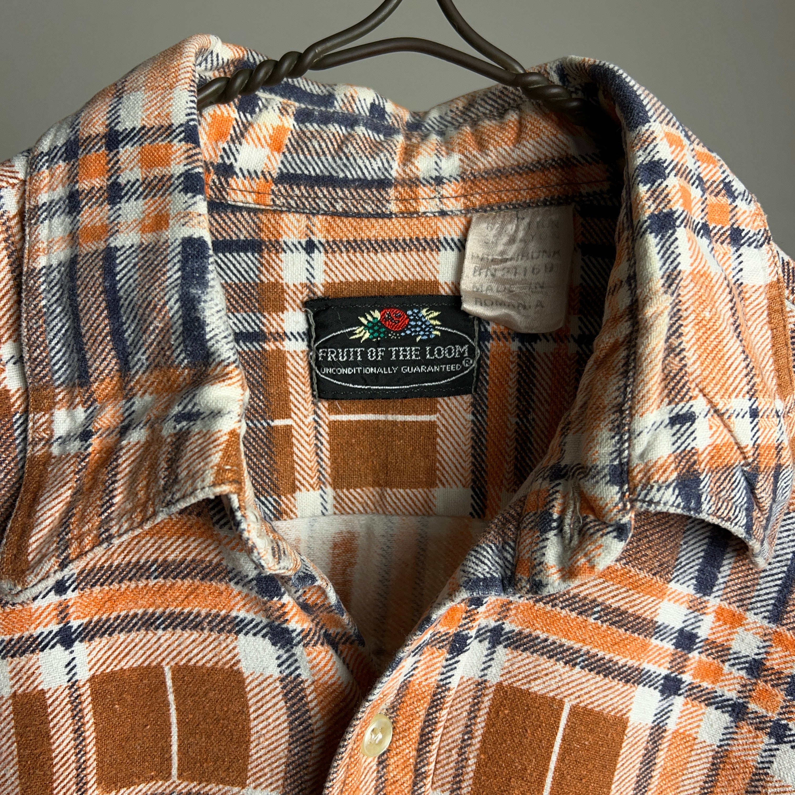 80's FRUIT OF THE LOOM Print Flannel Shirt BORO SIZE L 80年代 襤褸 プリントネルシャツ チェック柄 ボロ フルーツオブザルーム【1000A1382】