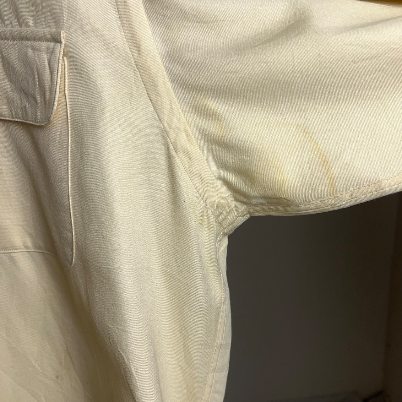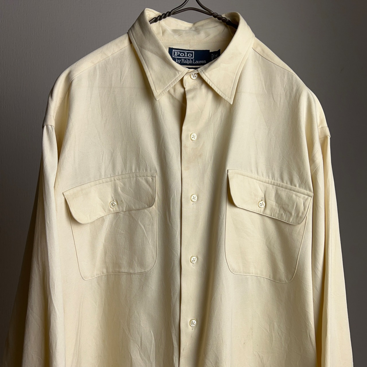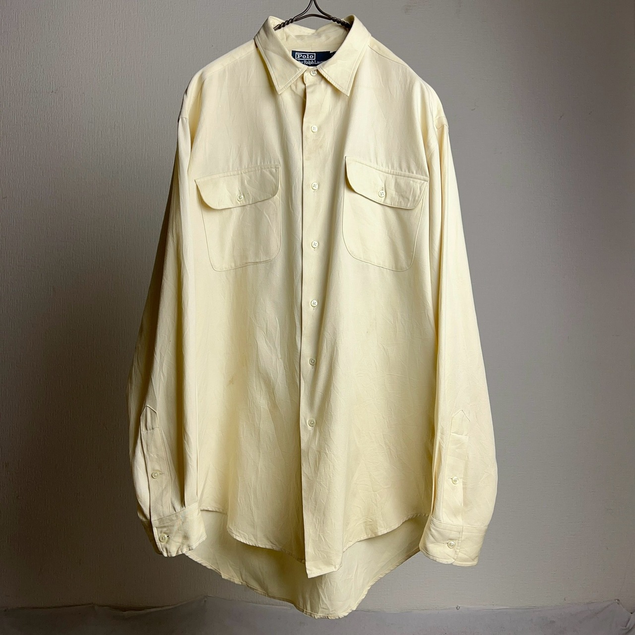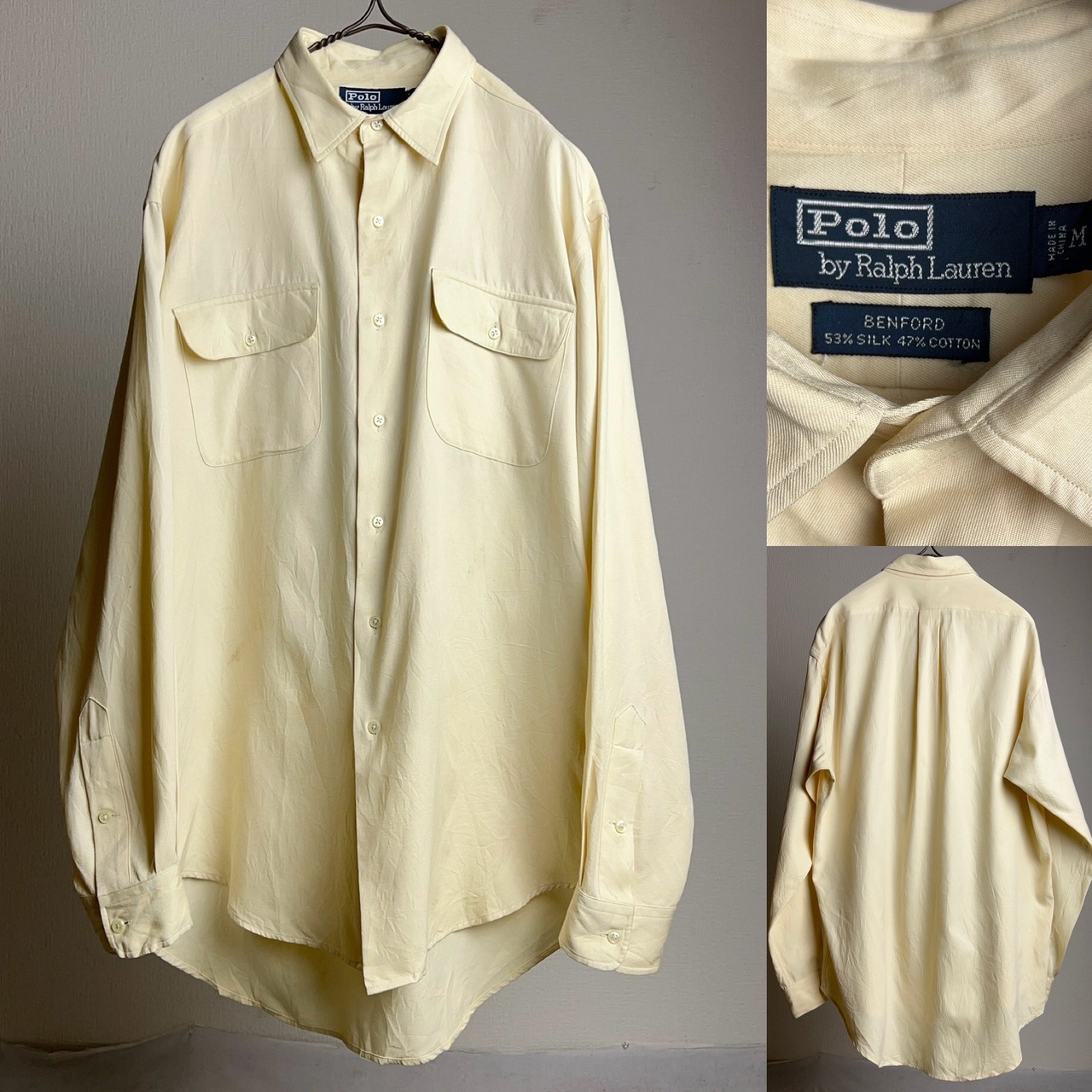 90's Polo by Ralph Lauren "BENFORD" SILK×COTTON SHIRT SIZE M 90年代 ポロラルフローレン ベンフォード シルクコットン混紡シャツ ダブルフラップ付きポケット 白シャツ 生成り アイボリー【1000A1400】