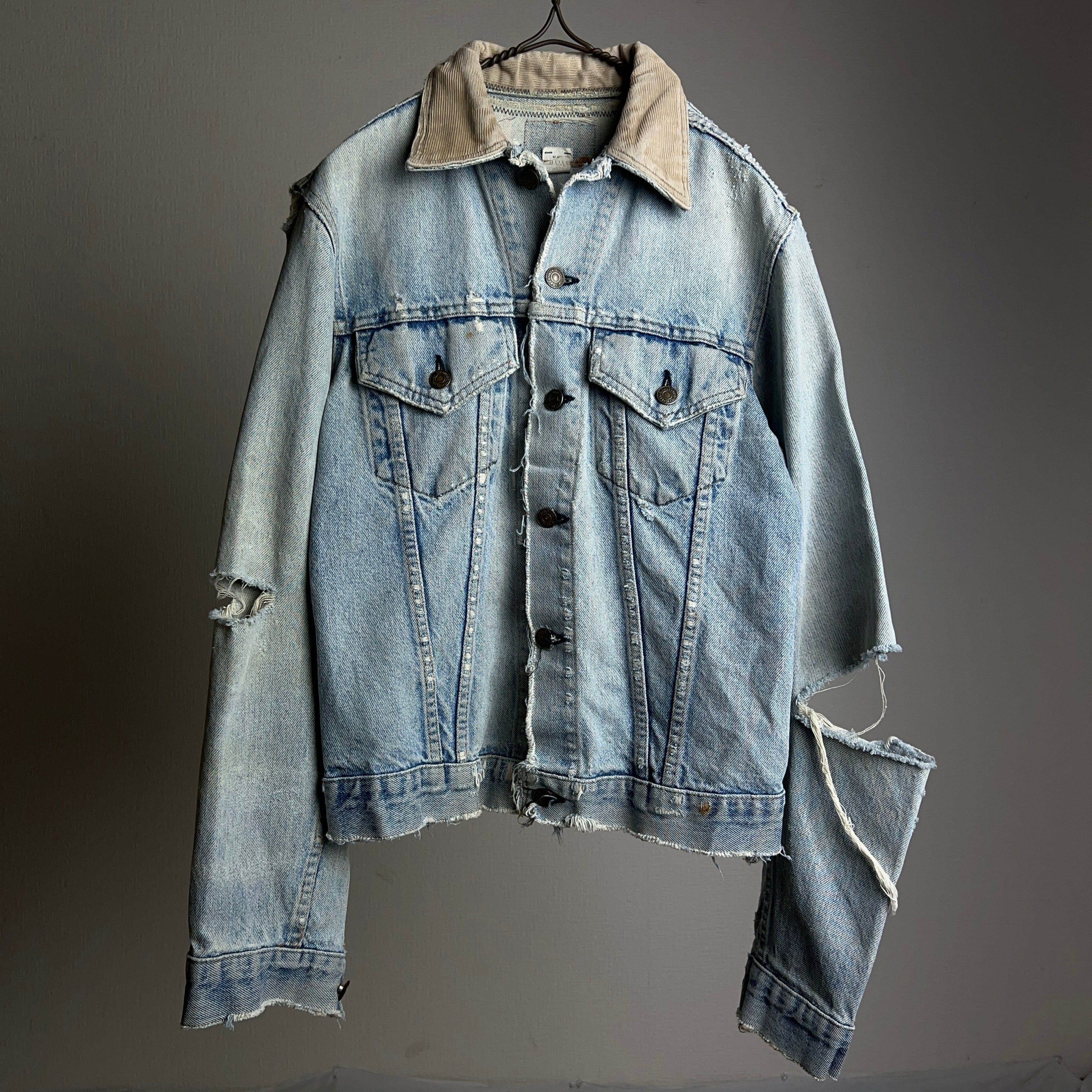1970年代リーバイス70505ケアタグ付きのボロリペアデニムジャケット。