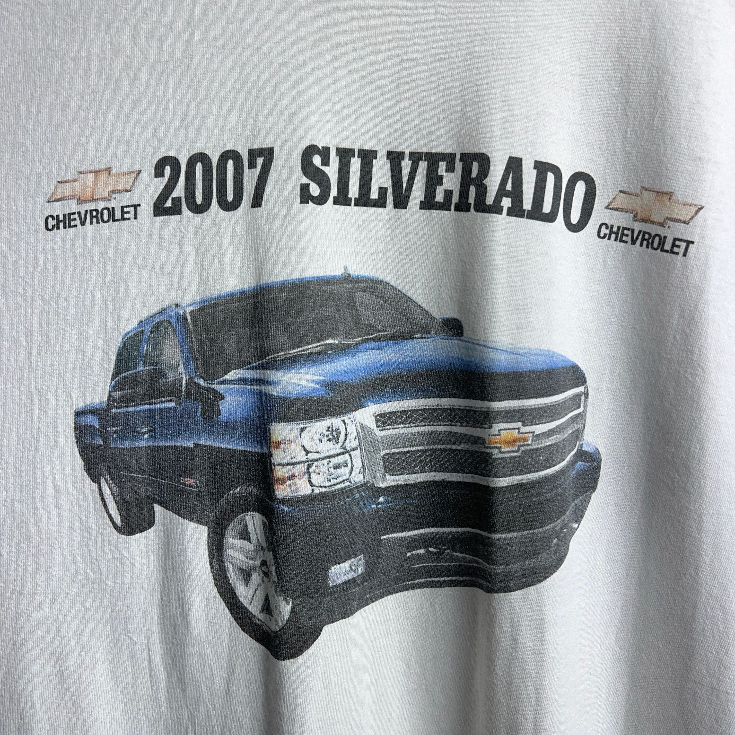 アメリカの車メーカー"シボレー"のピックアップトラックであるシルバラードのTシャツ。