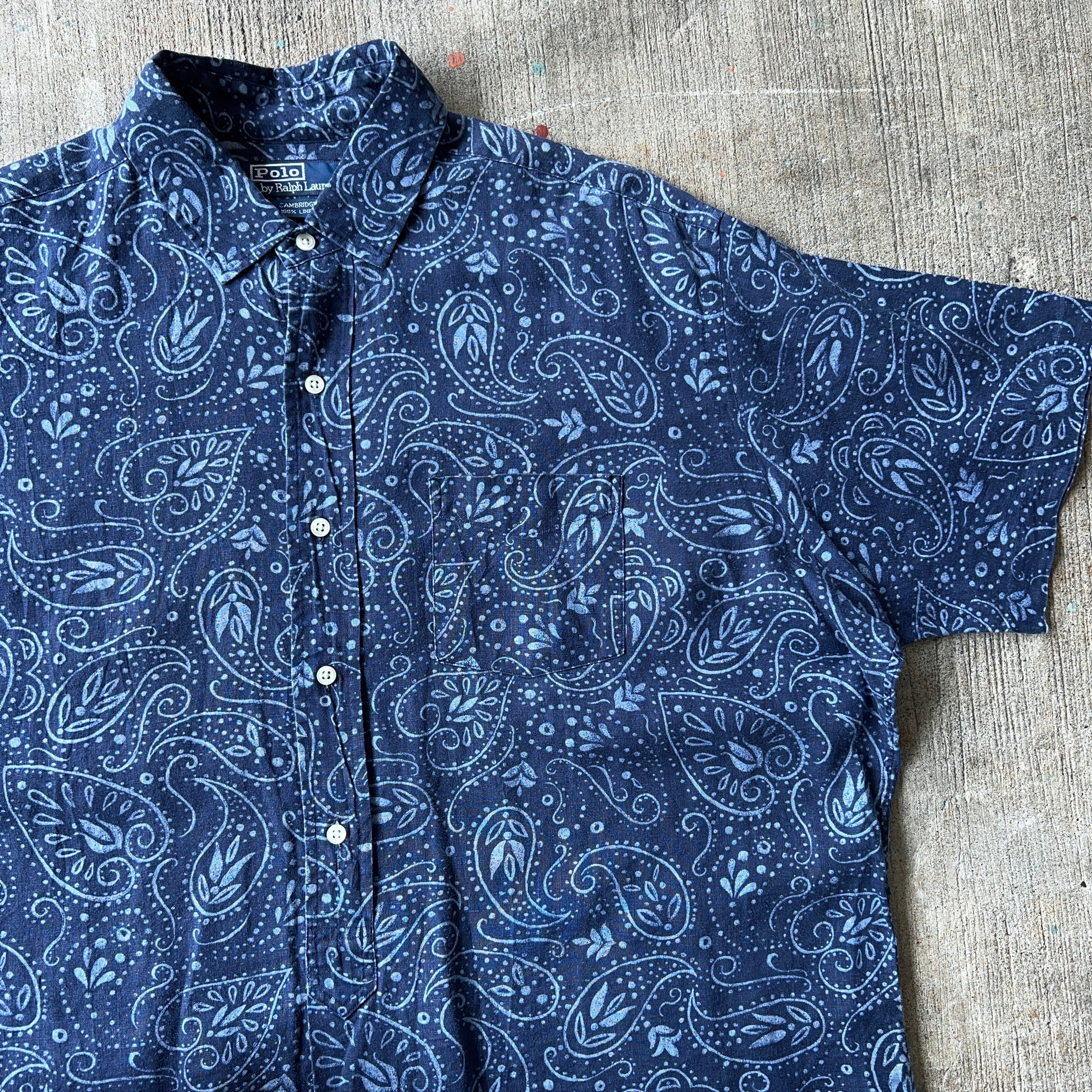 90's~ Polo by Ralph Lauren"CAMBRIDGE" Linen Pullover S/S Shirt 90年代 ポロラルフローレン プルオーバーシャツ 半袖 リネン 総柄シャツ アロハ ペイズリー【1000A1549】【送料無料】
