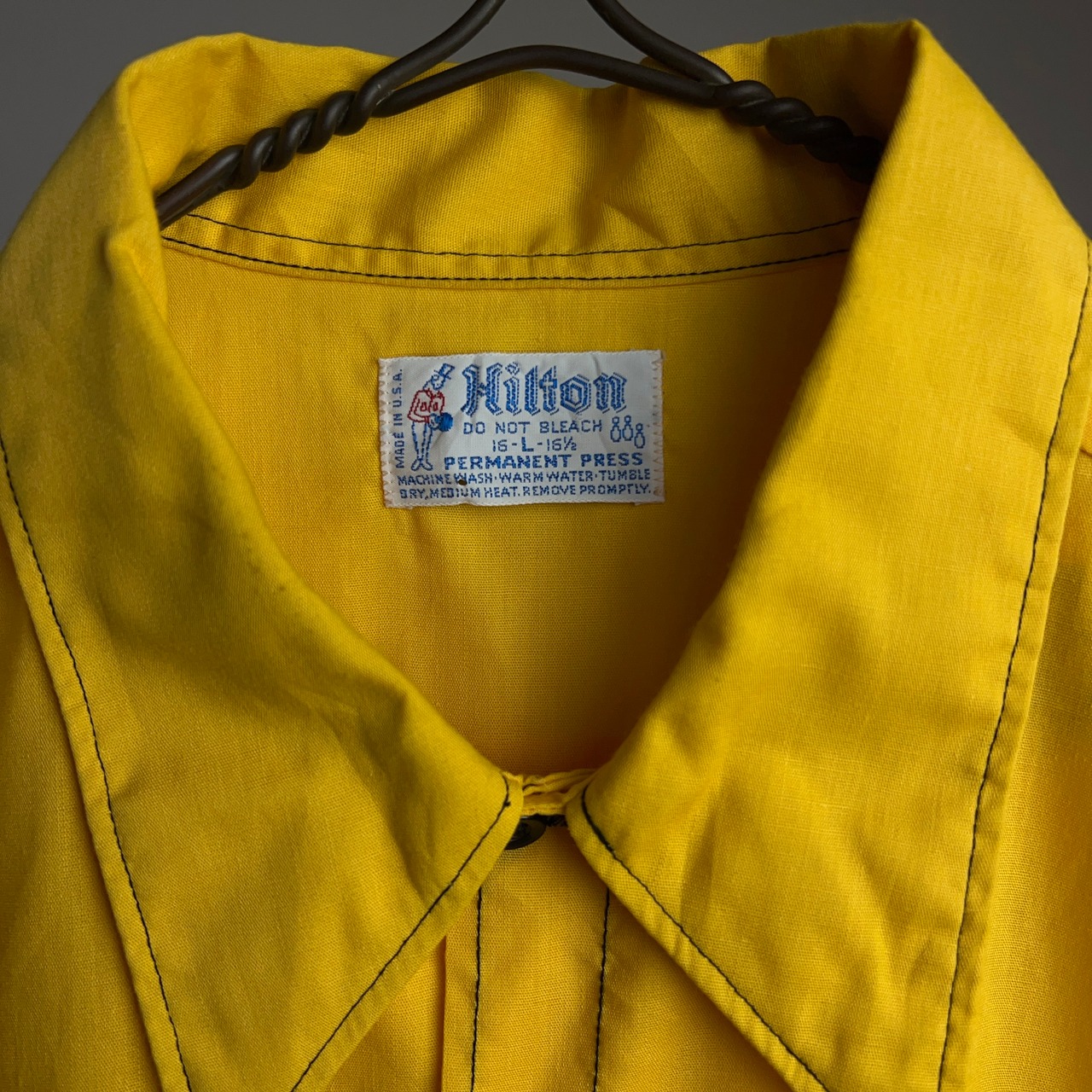 70's Hilton Bowling Shirt 70年代 ヒルトン ボーリングシャツ 刺繍 チェーンステッチ 黄色 イエロー L【1000A1555】【送料無料】