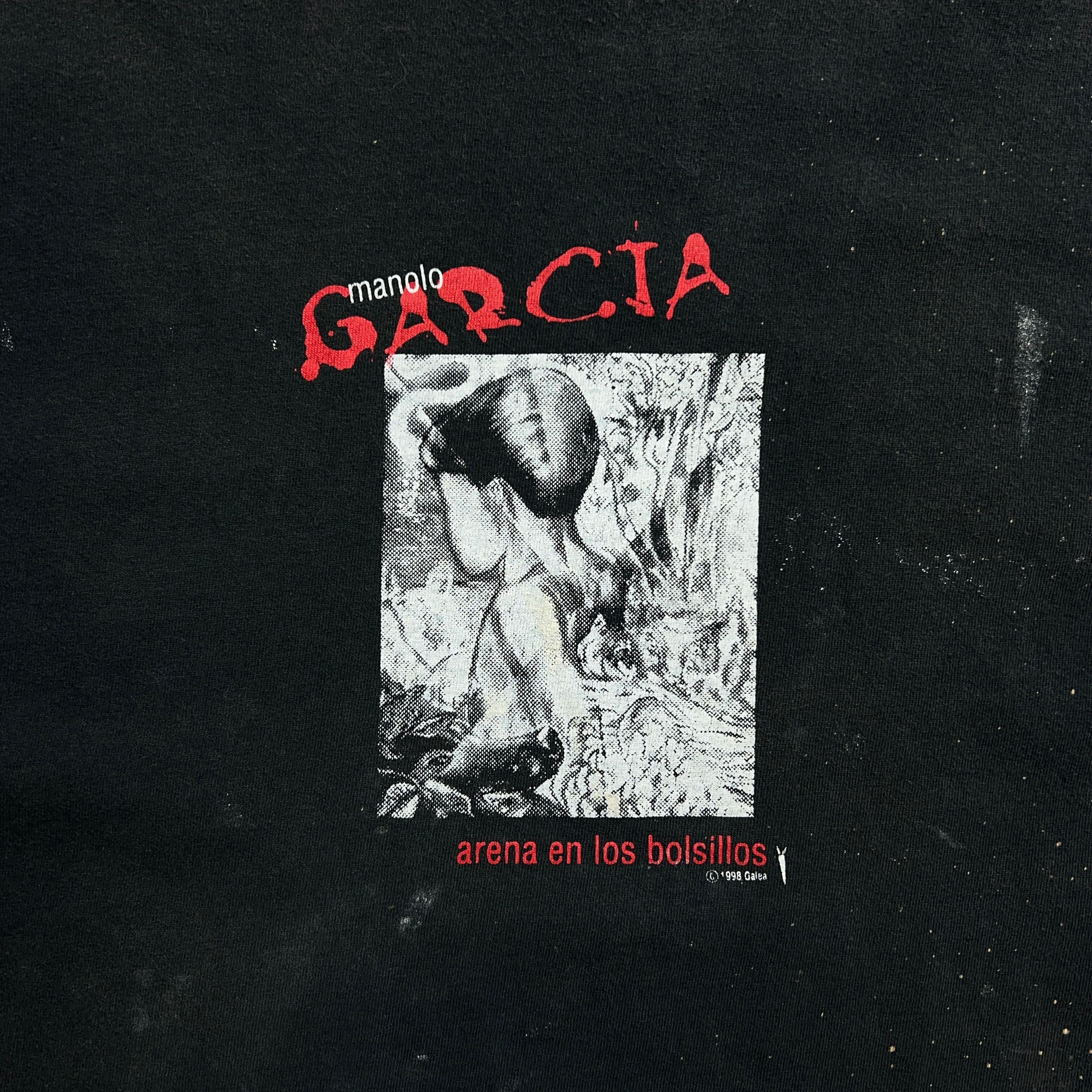 90's MANOLO GARCIA ARTIST Tshirt Fade Black 90年代 マノロ・ガルシア アートTシャツ 画家 フェードブラック フェード 雰囲気 スミクロ 色褪せ ボロ 襤褸 XL【1000A1575】【送料無料】