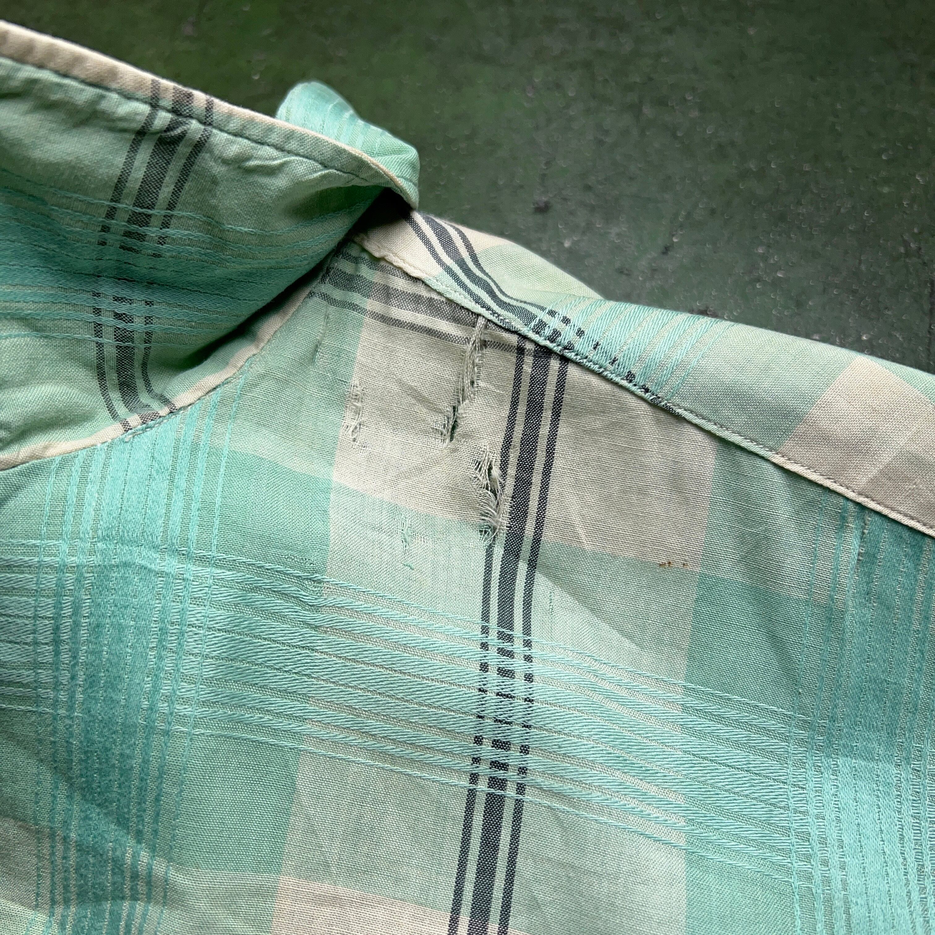 1960's Vintage Plaid Shirt S/S 60年代 ボロ 襤褸 チェックオープンカラーシャツ 雰囲気 半袖 M【1000A1595】【送料無料】