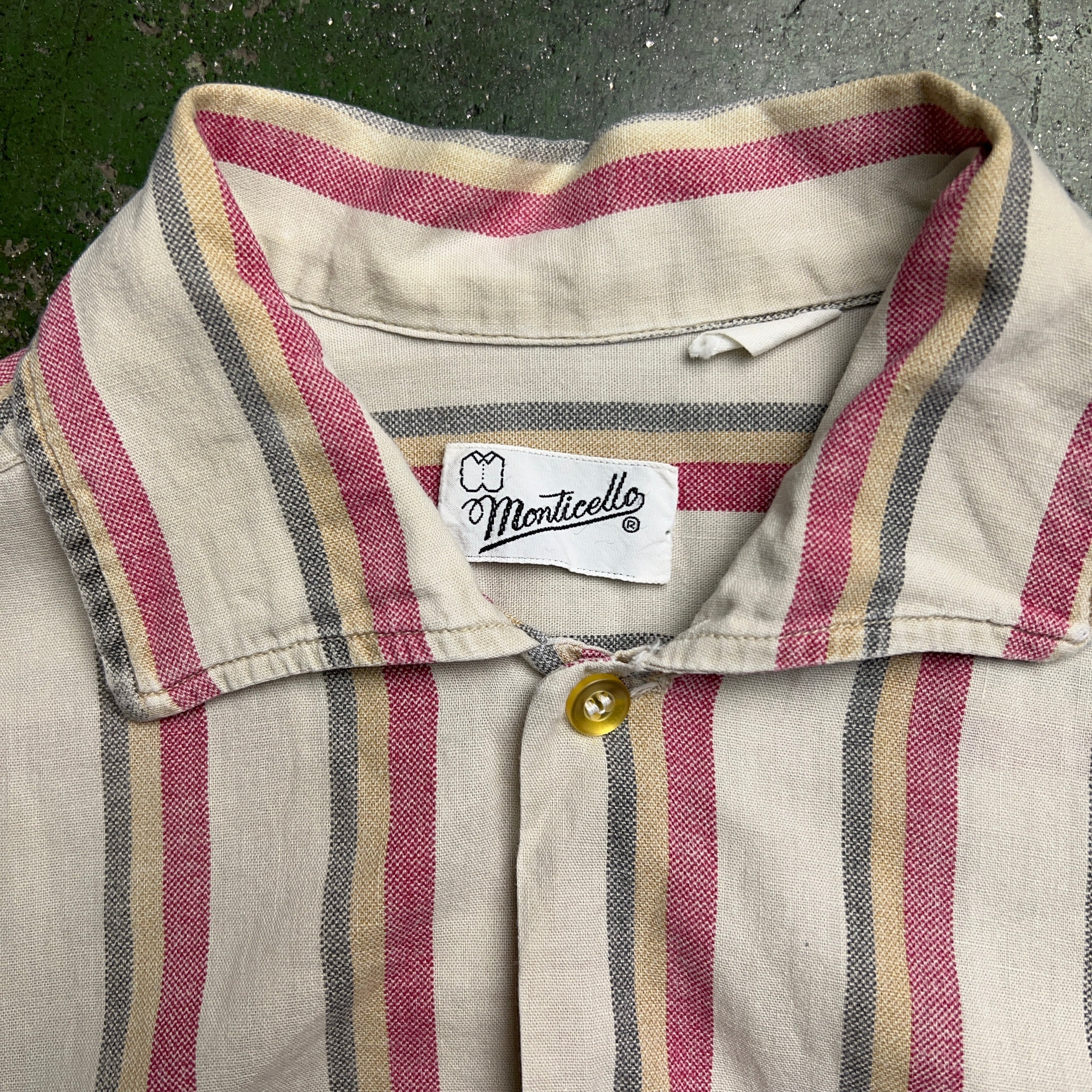 60's Monticello L/S Cotton Stripe Shirt 60年代 コットンストライプシャツ 長袖 オープンカラー S 雰囲気【1000A1613】【送料無料】