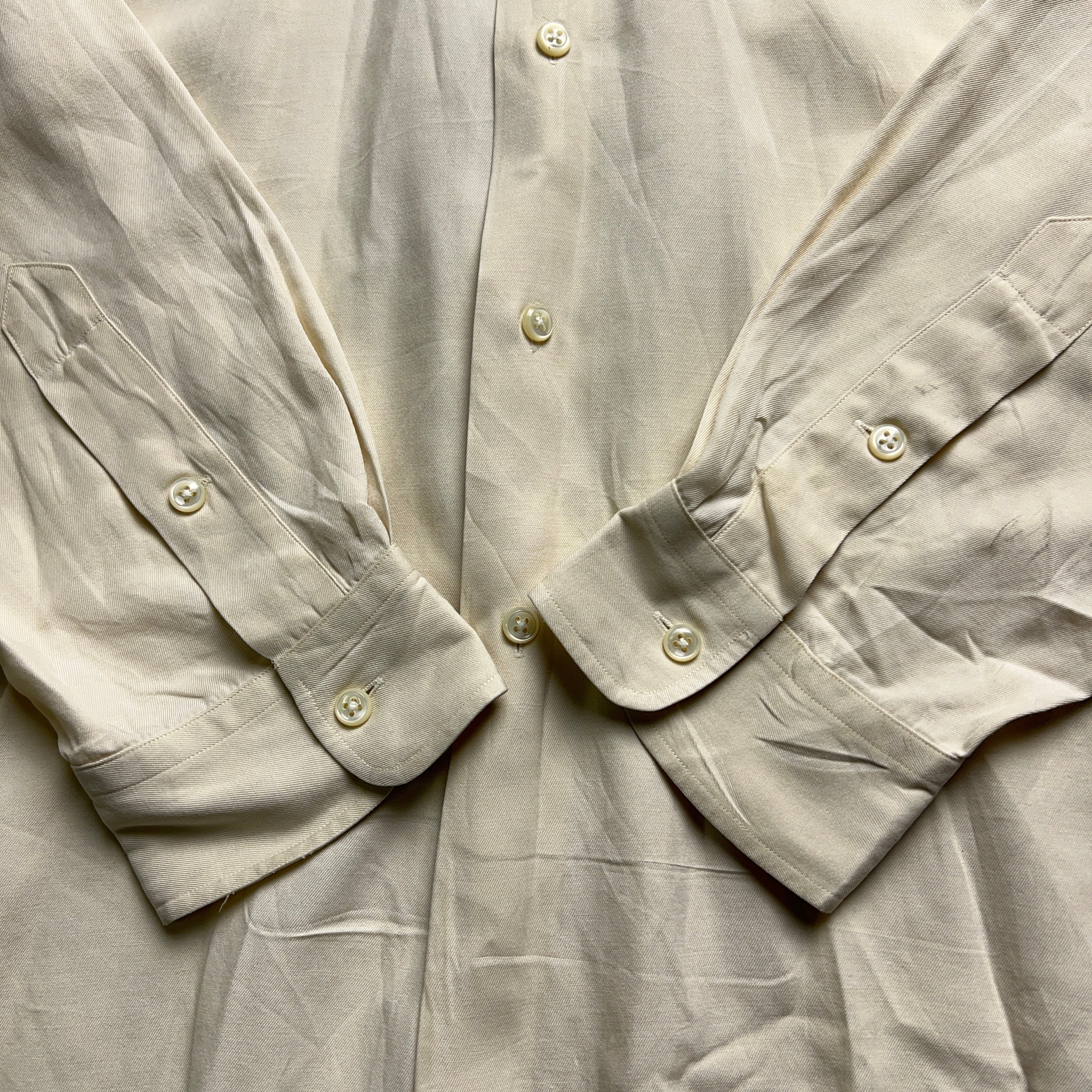 アイボリー系(ライトベージュ)のカラーでヴィンテージとの相性も非常に良く、古着シャツとしてはかなり優秀。