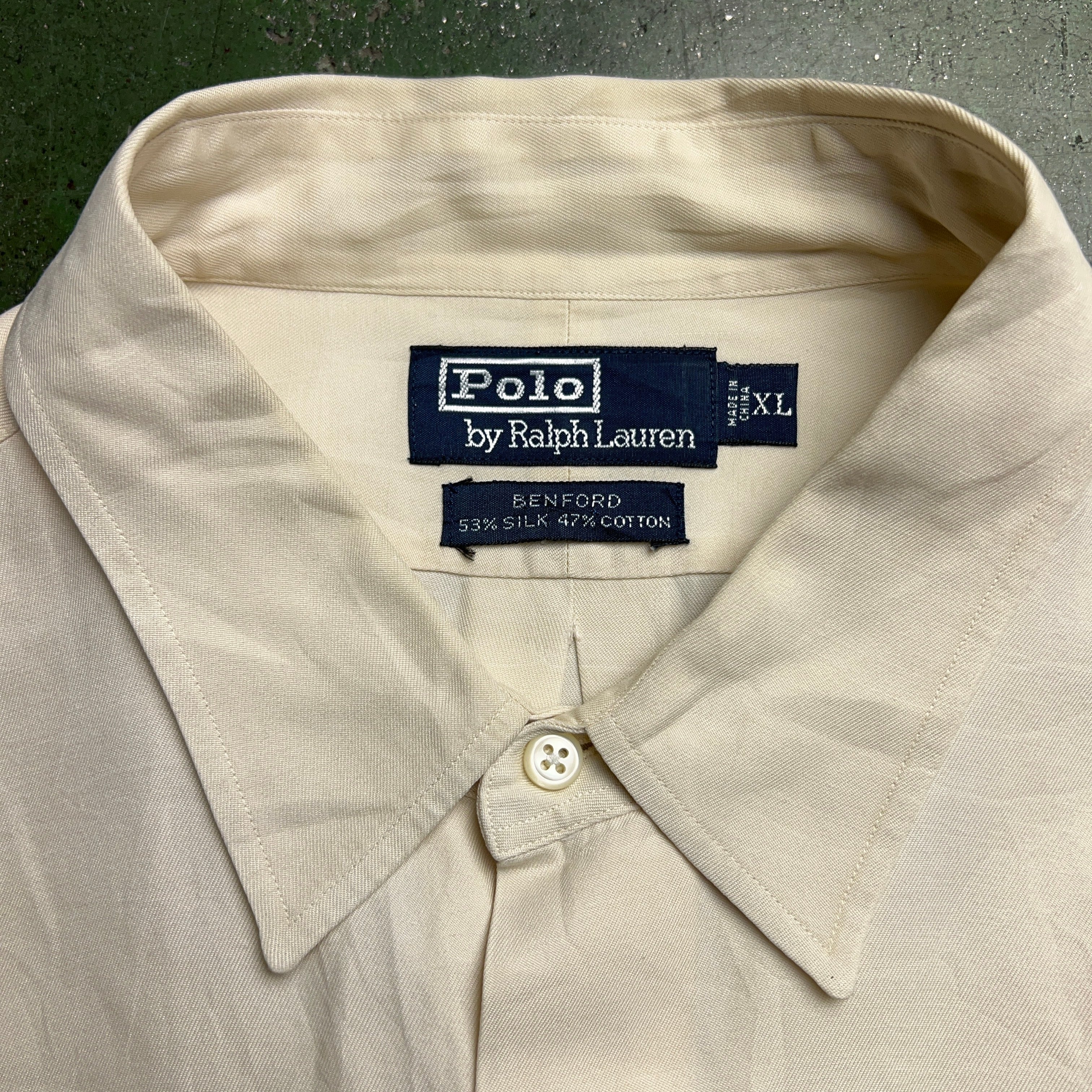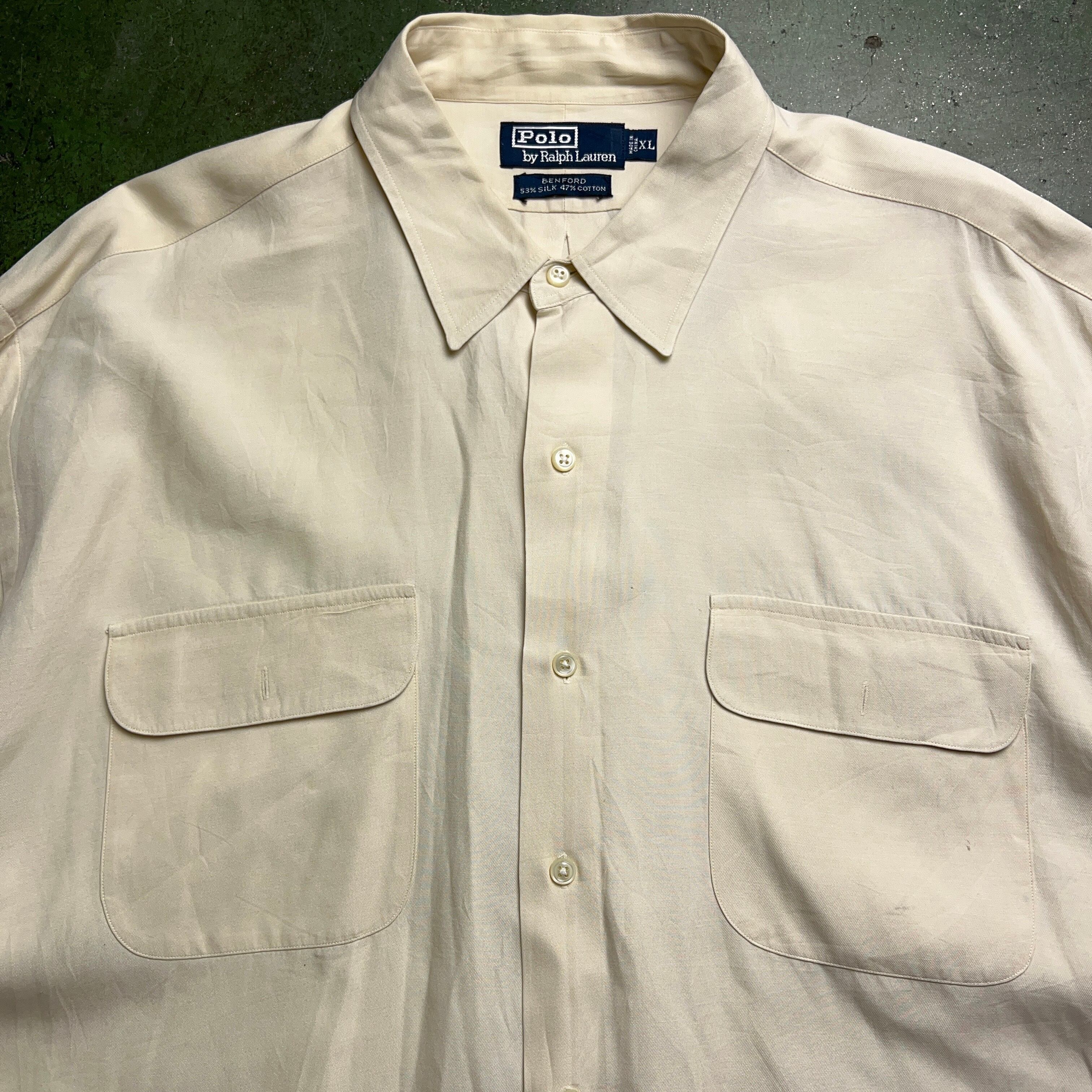 90's Polo by Ralph Lauren "BENFORD" L/S Silk × Cotton Shirt 90年代 ポロラルフローレン シルクコットンシャツ 長袖 白 XL アイボリー【1000A1617】【送料無料】