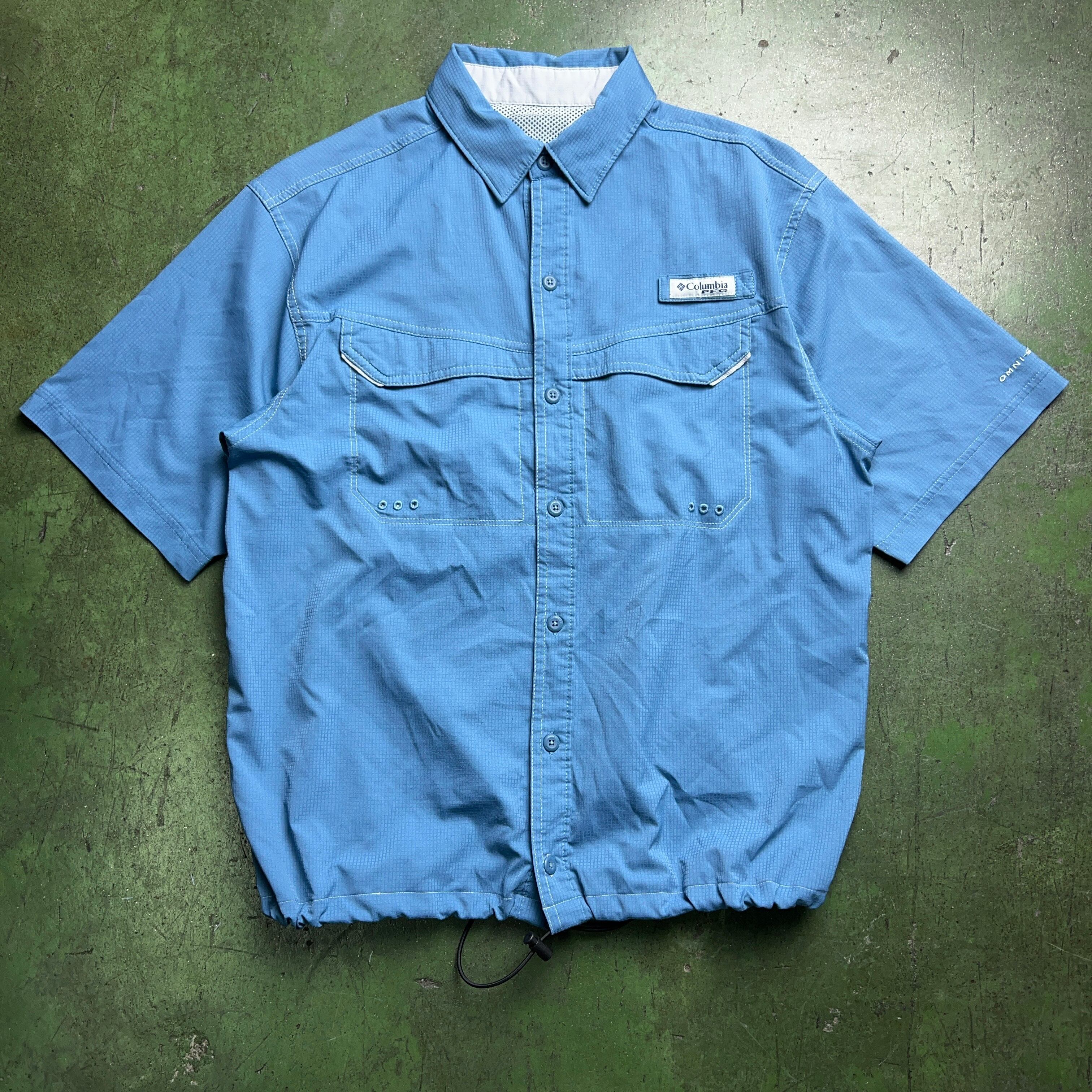 Columbia PFG Short Custom Fishing Shirt コロンビア ピーエフジー ショート丈 短丈 フィッシングシャツ 半袖 リメイク フィッシングジャケット ブルー 青 ネイビー【1000A1622】【送料無料】