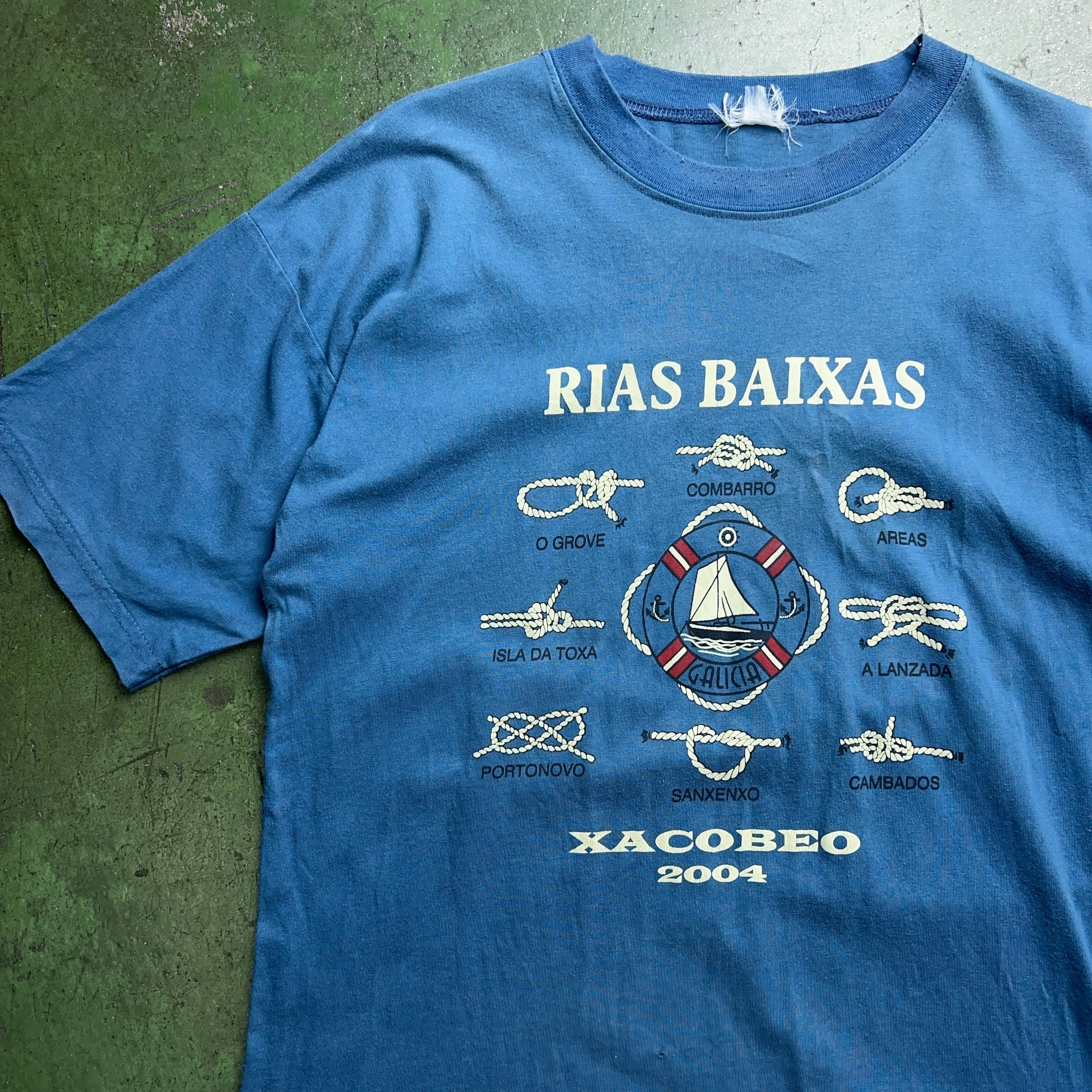 00's "How to tighten the rope" Tshirt 00年代 ロープの結び方 Tシャツ 青 水色【1000A1712】