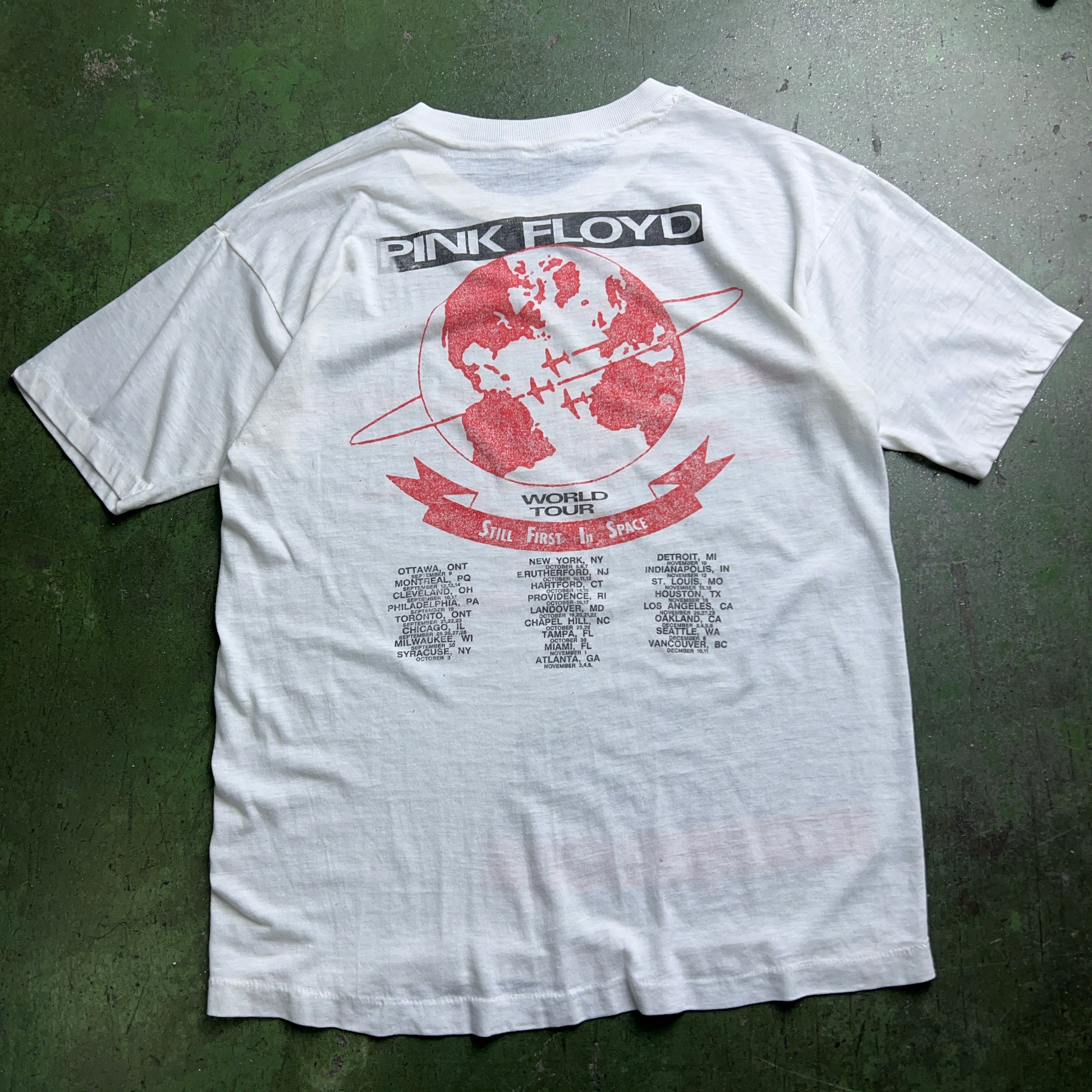 Special! 80's "PINK FLOYD" STILL FIRST IN SPACE World Tour Band Tshirt 80年代 ピンク・フロイド バンド Tシャツ 白T フェード 雰囲気 ロックT アートT シングルステッチ バックプリント【1000A1721】【送料無料】coff