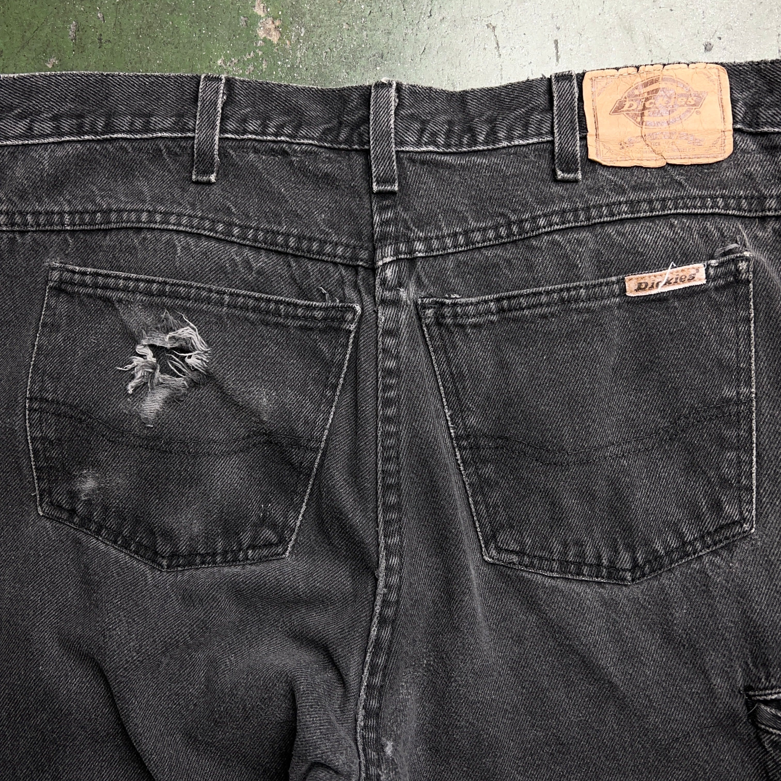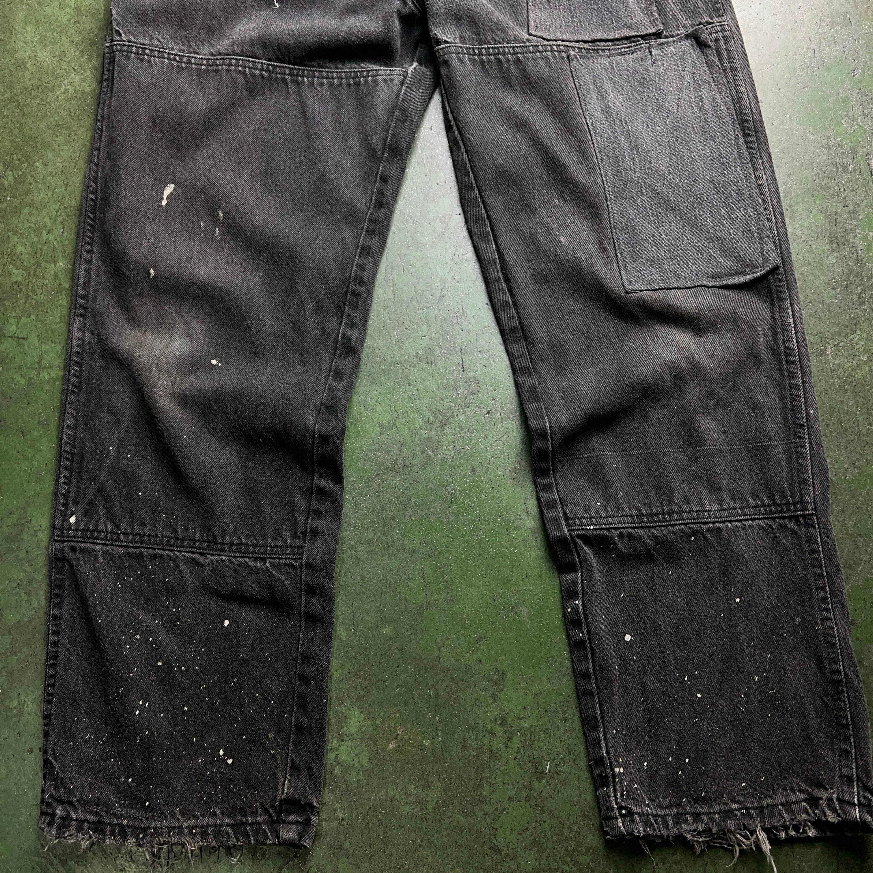 00's~ Dickies Double Knee Black Denim Pants 00年代 ディッキーズ ワークパンツ ダブルニー ブラックデニム フェード 色褪せ リペア 【1000A1812】【送料無料】