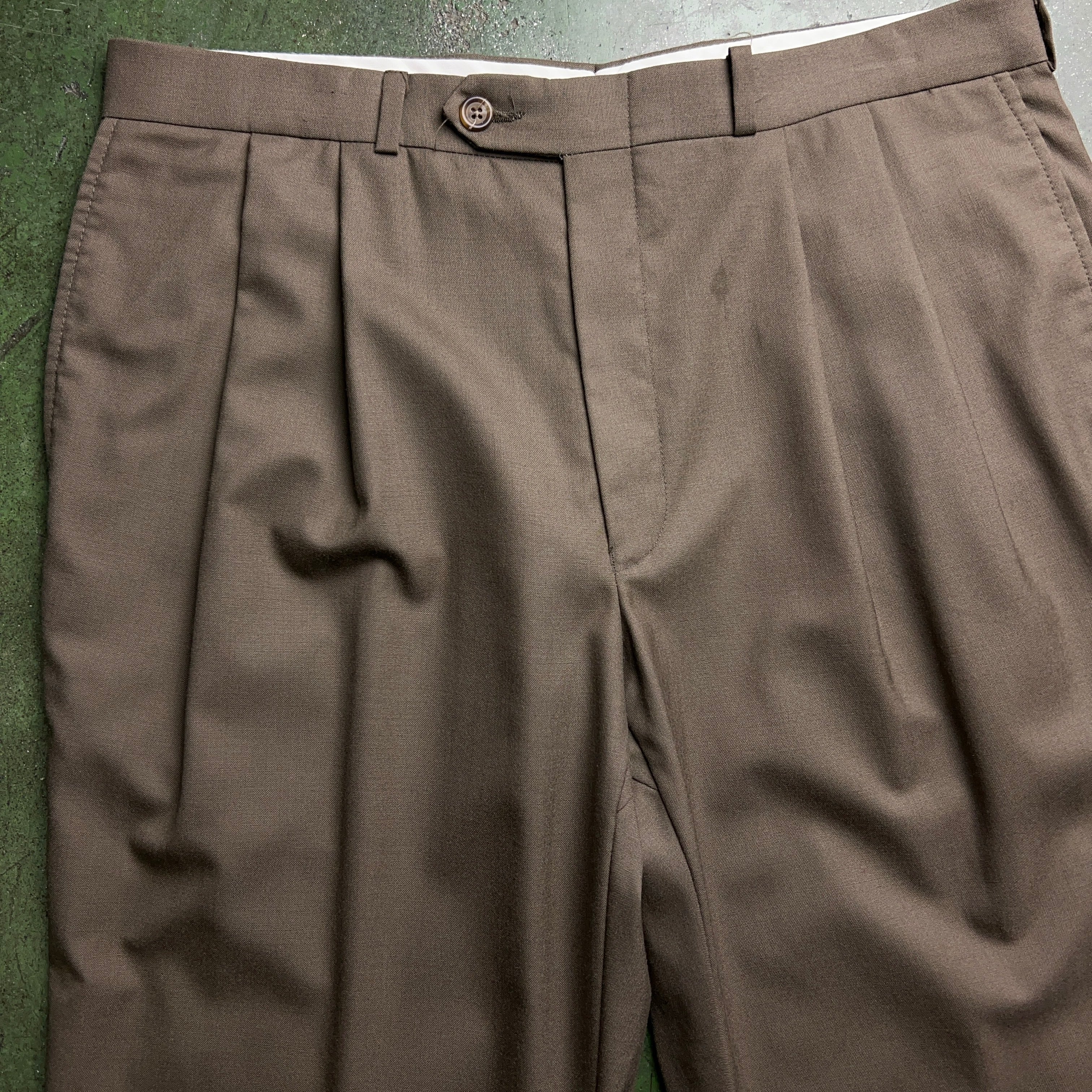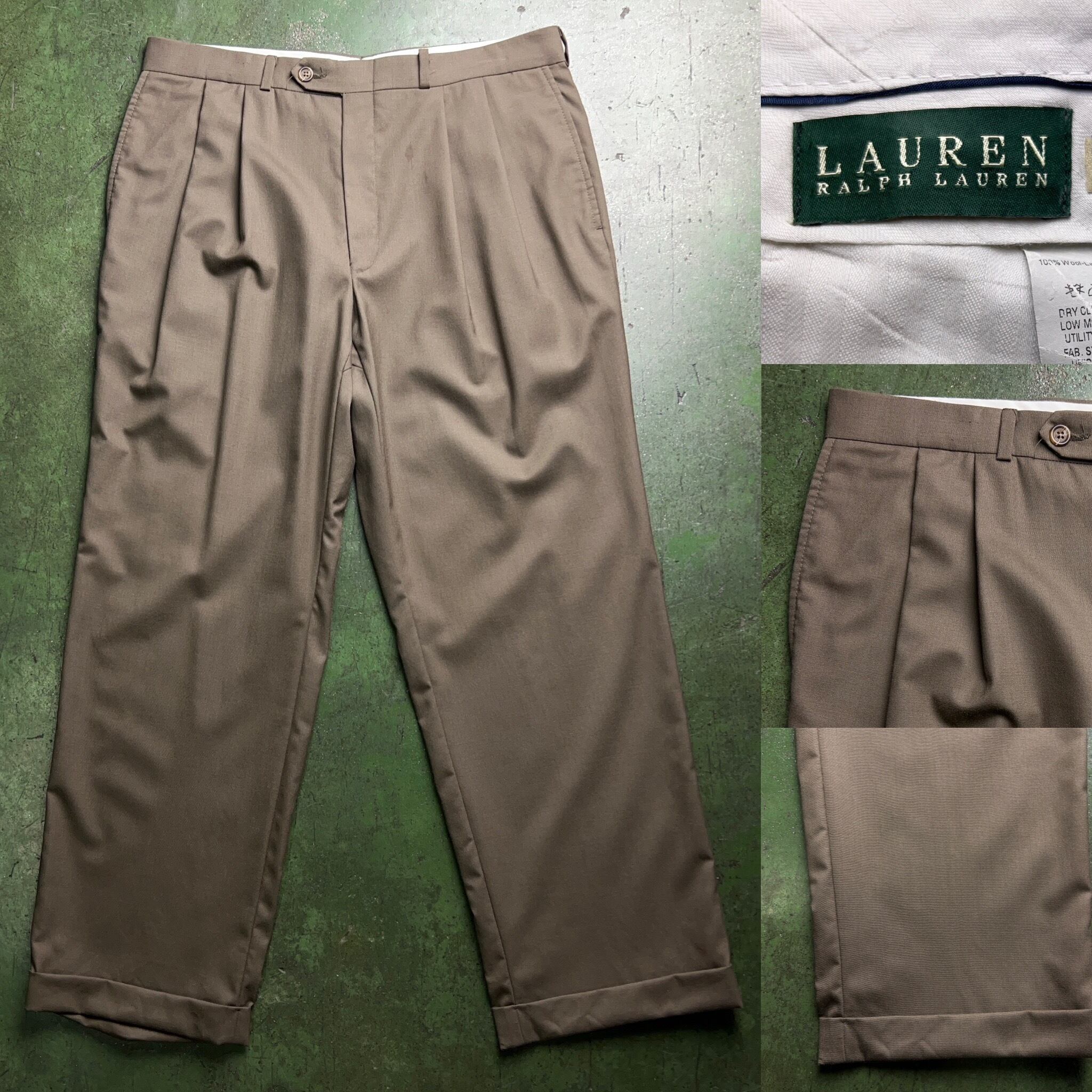 LAUREN Ralph Lauren 2tuck Slacks 100%Wool ラルフローレン スラックス ワイド 2タック W34 L29 ブラウン 茶【1000A1923】