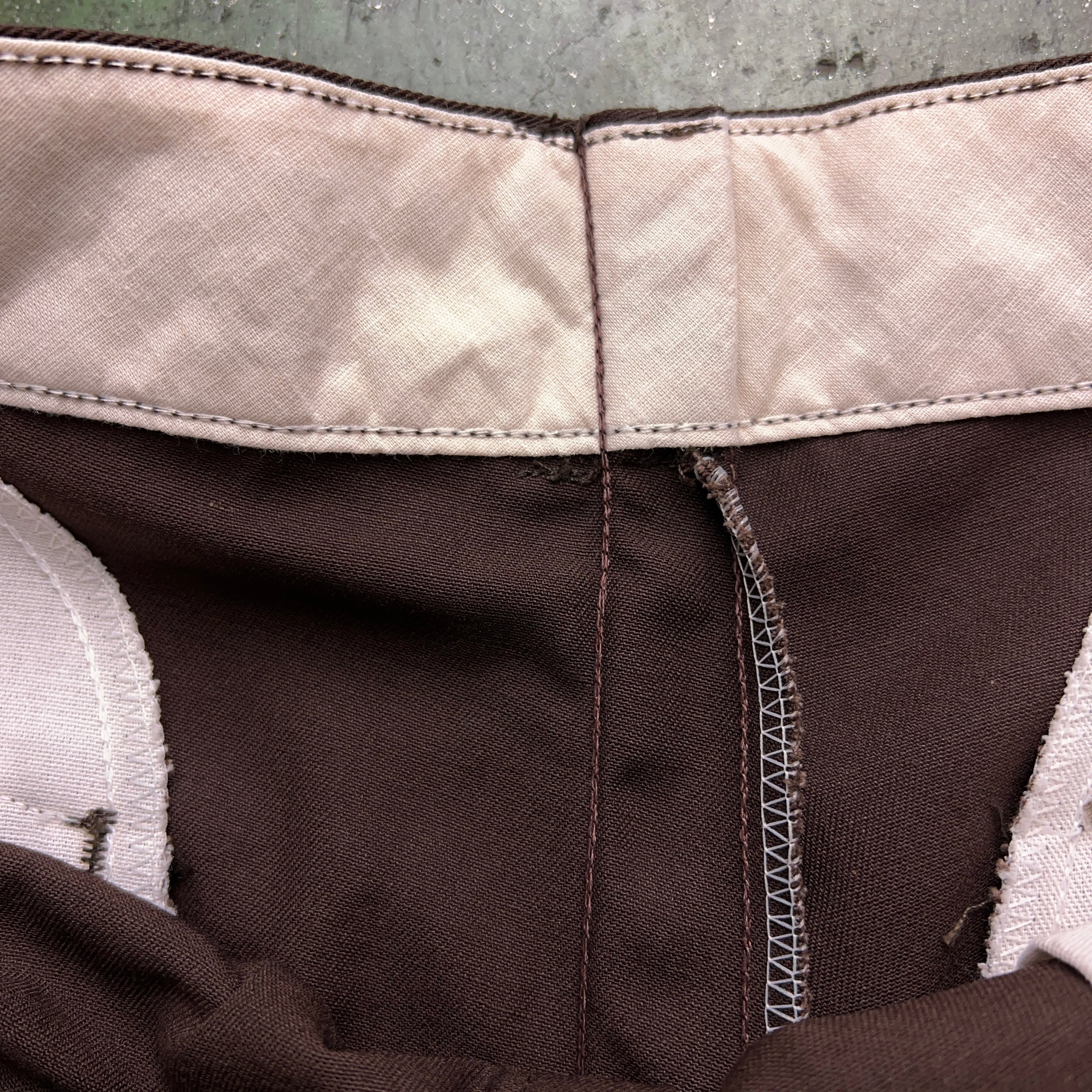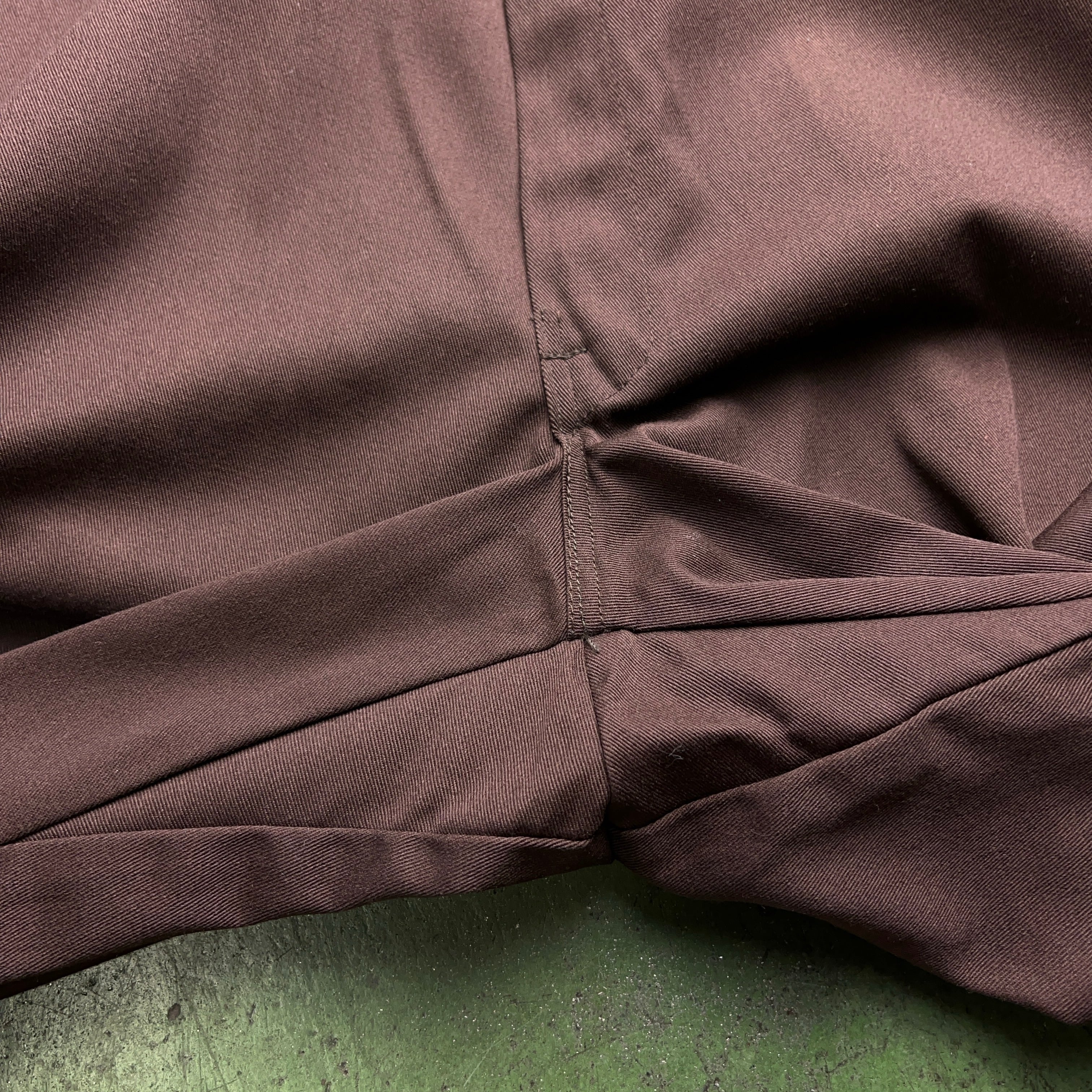 90年代以前の仕様であるヒップの折り込み。ここのステッチを外すとウエストサイズを大きくすることができます。股下のガゼットクロッチ仕様は80年代以前に見られる仕様。