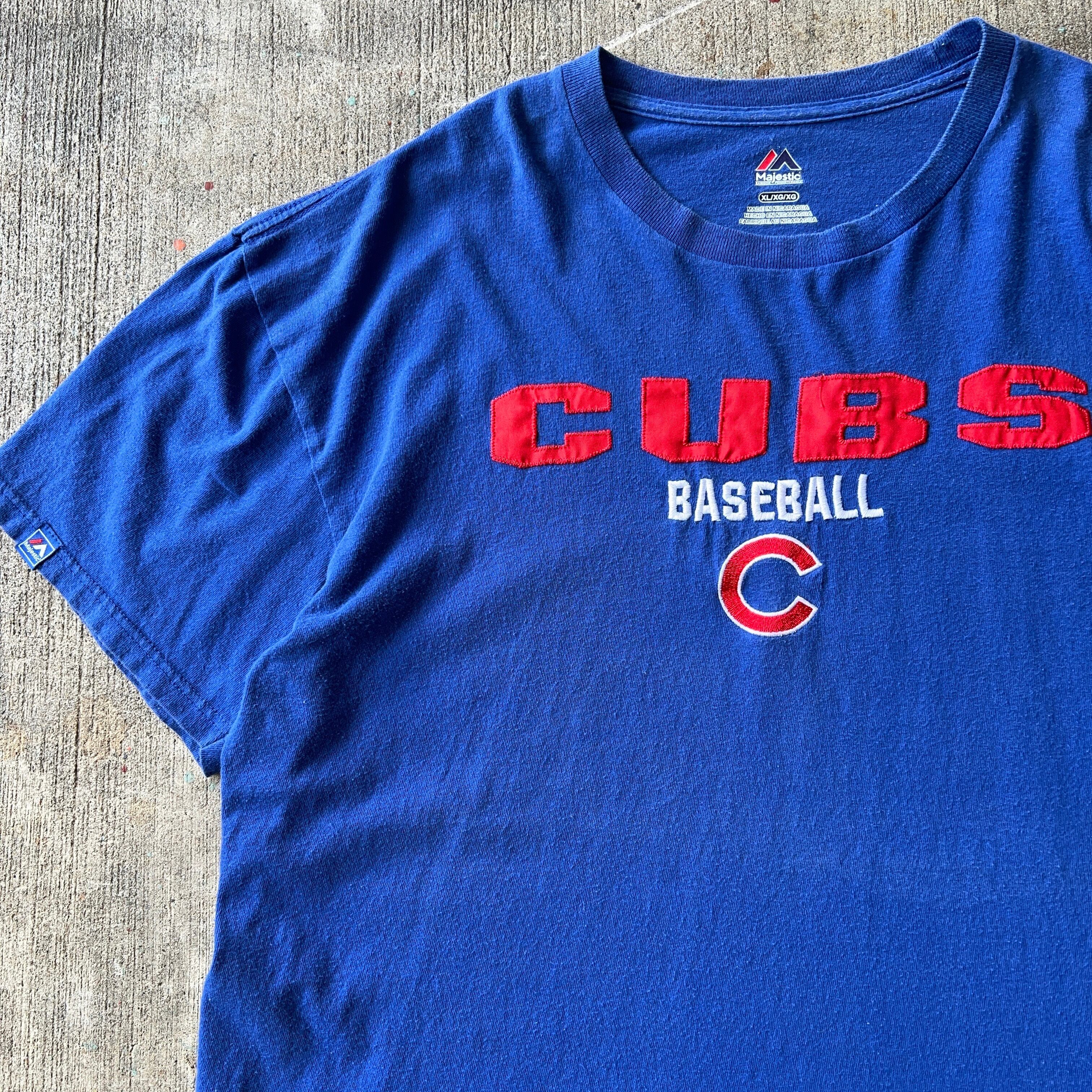 00s ”Majestic" MLB CUBS sports Baseball T-Shirts シカゴカブス ベースボール 野球 刺繍 青 ブルー 色褪せ 色落ち フェード【3000円均一商品】【TH0712】