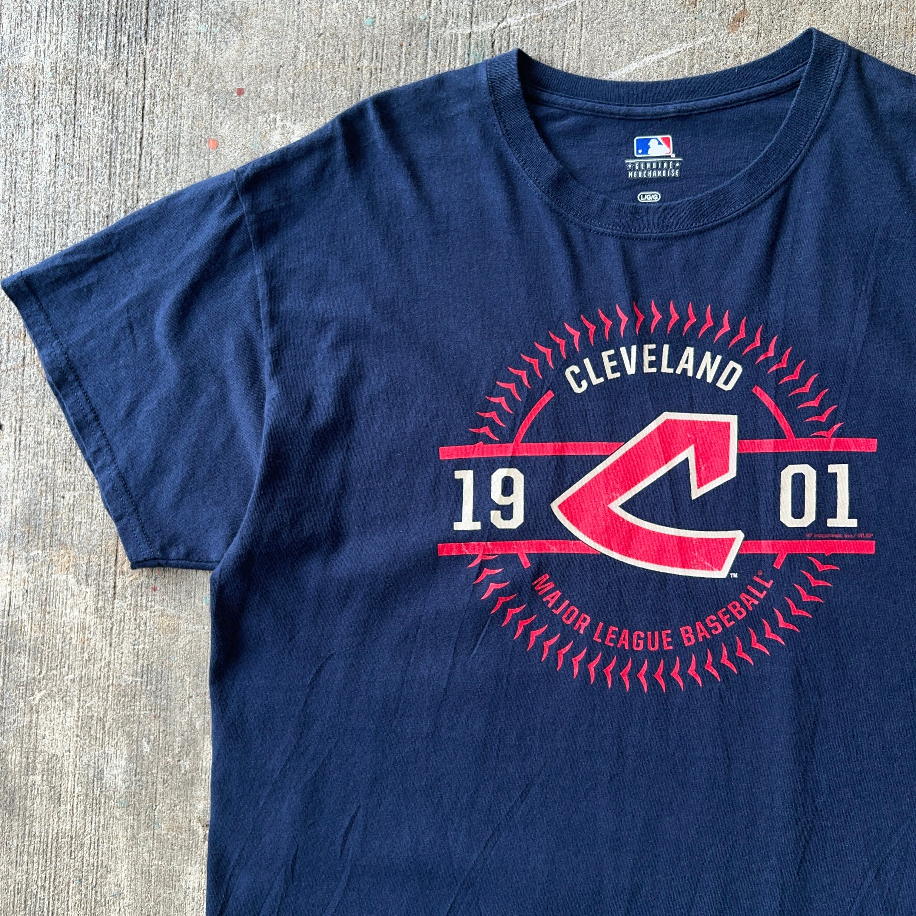 00s ”CLEVELAND" GENUINE MERCHANDISE Baseball Sports T-Shirts プリントTシャツ スポーツ 紺 ネイビー 色褪せ 色落ち フェード【3000円均一商品】【TH0714】