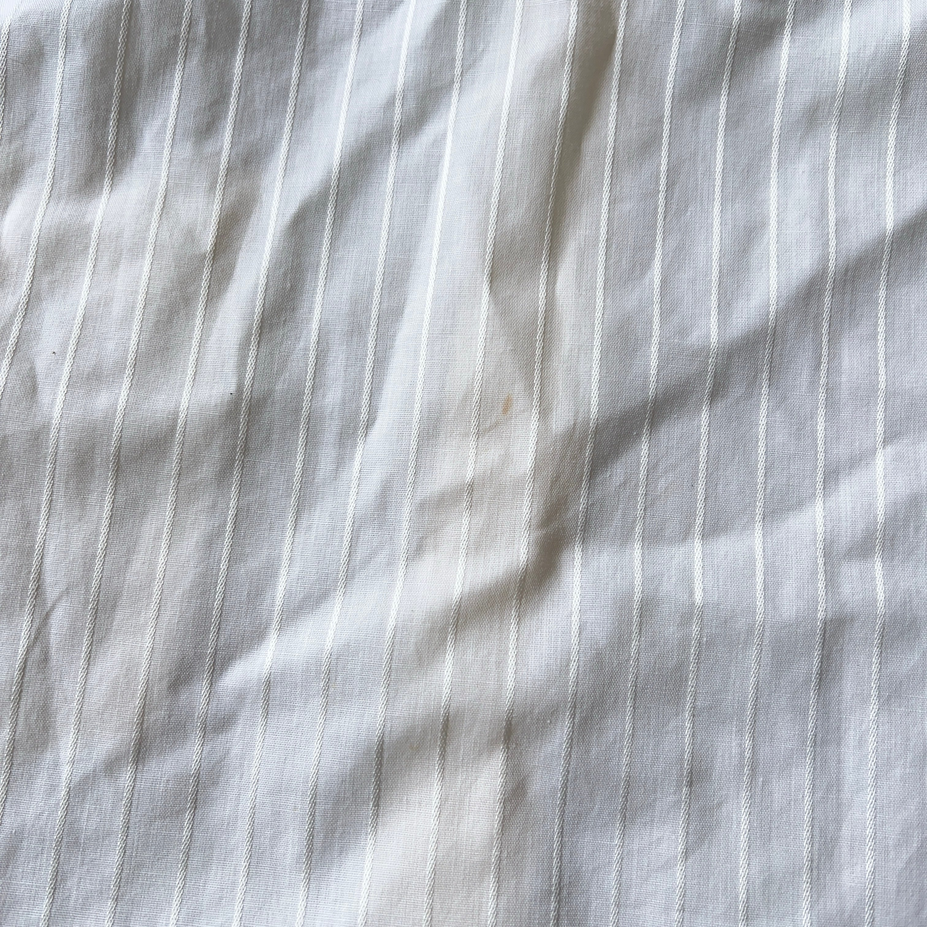 明るいオフホワイトカラーに素材が異なる素材で光沢のあるストライプが表現されている上品な一着です。
