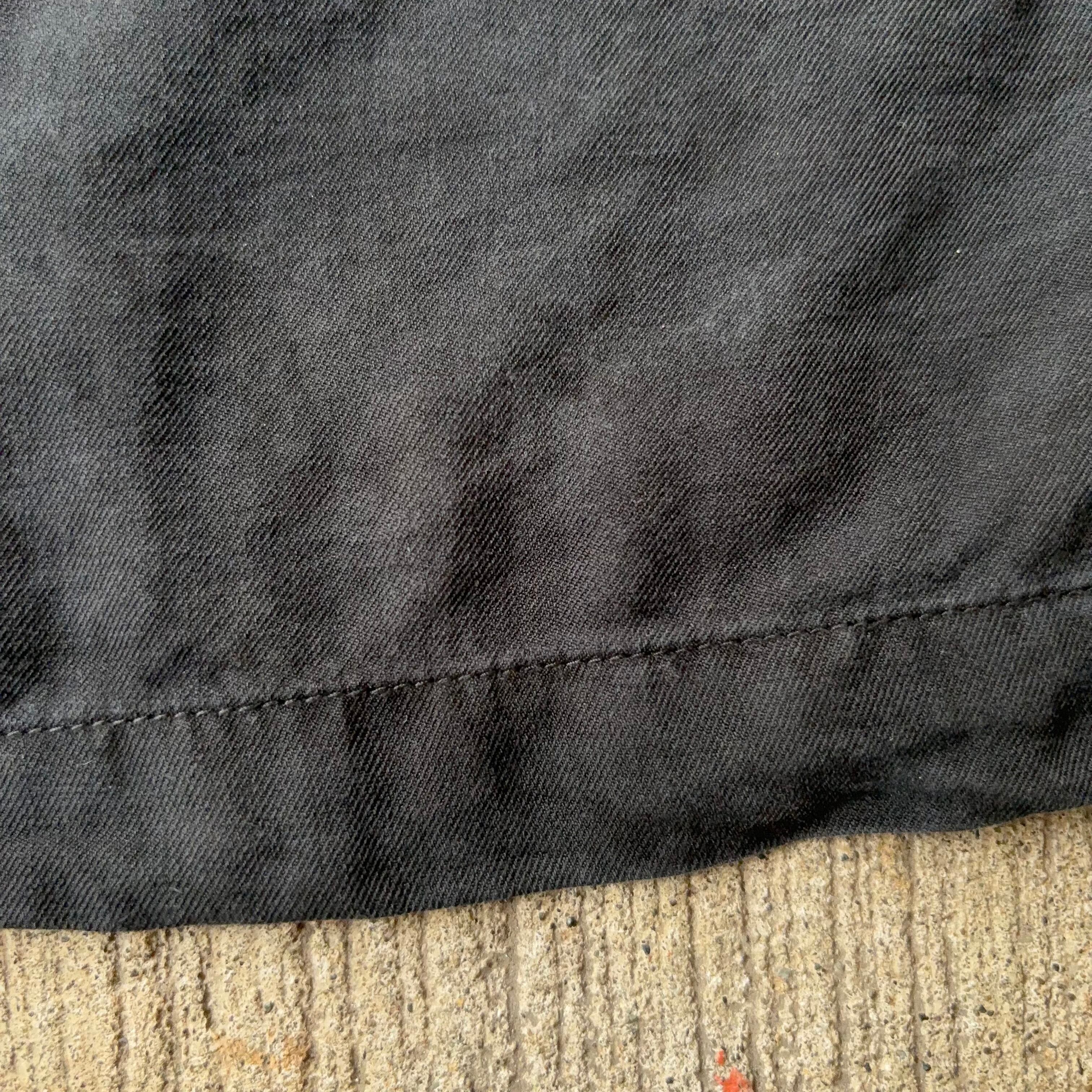 シルク素材のため肌触りが良く古着らしいブラックカラーの色落ちがかっこよく合わせられるおすすめの一着です。