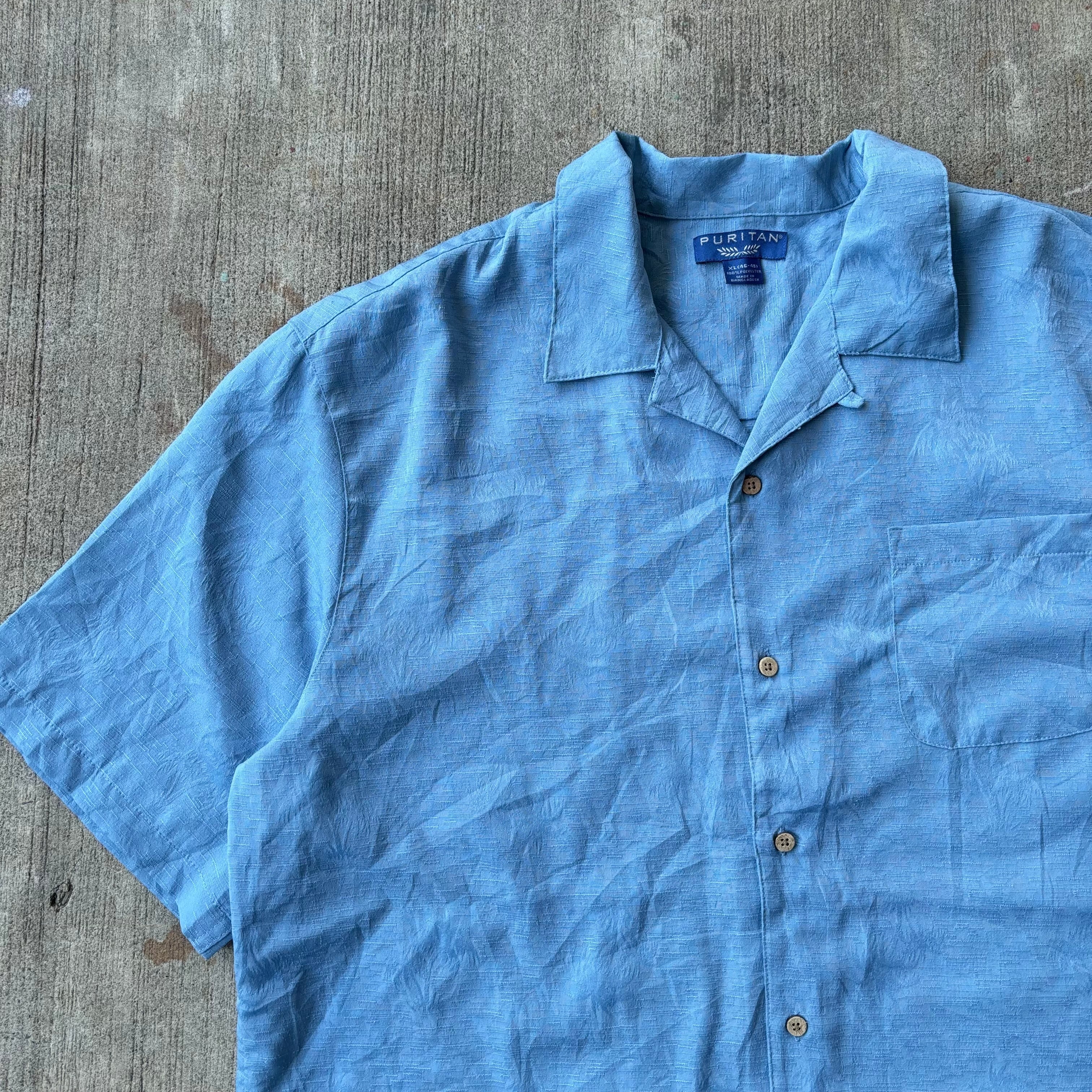 "PURITAN" POLYESTER Open Collar Aloha Shirts シルク 開襟 アロハ 半袖シャツ 青 ブルー 色褪せ 色落ち フェード【3000円均一商品】【TH0729】