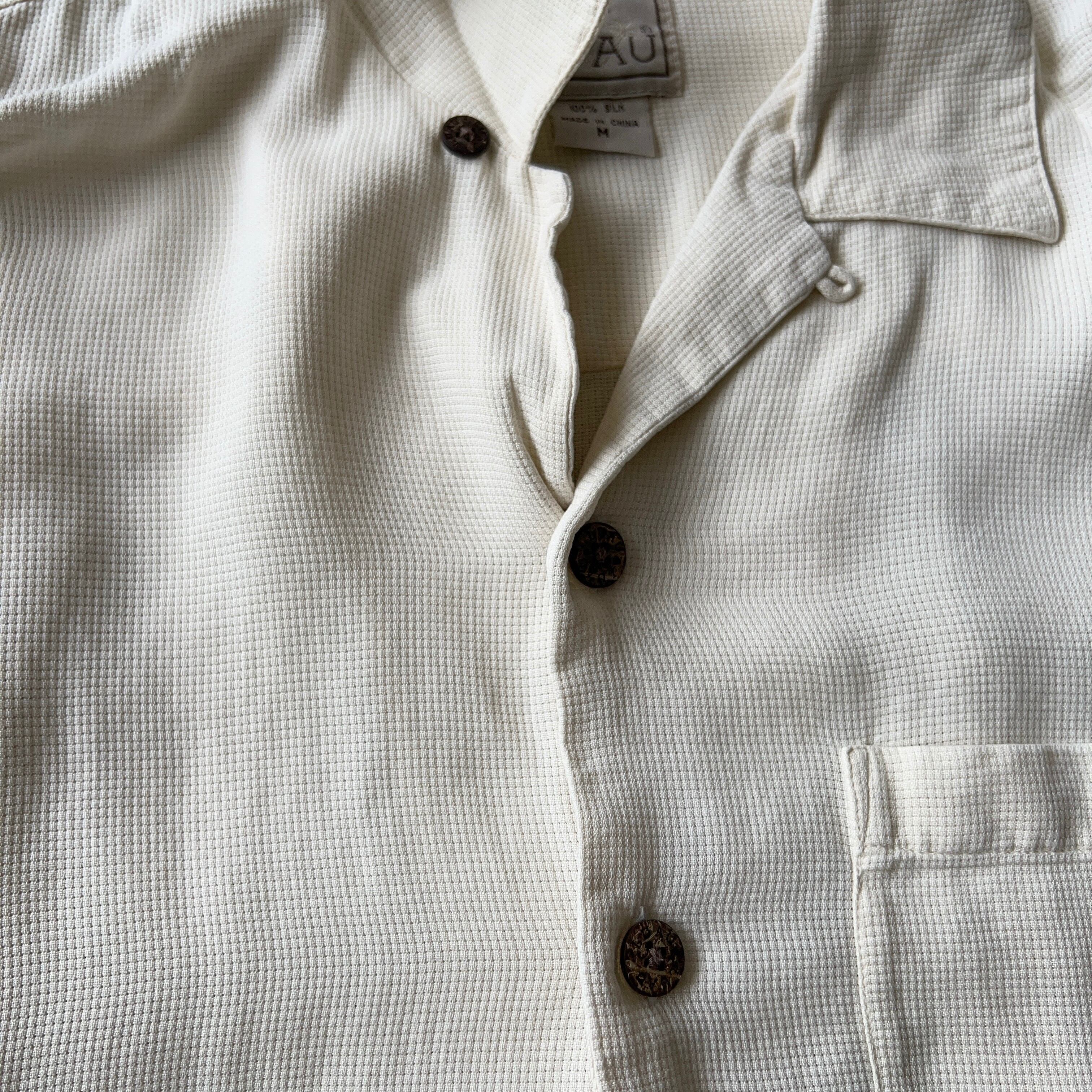 LUAU のシルク素材のきめ細かなワッフル生地 開襟半袖シャツになります。