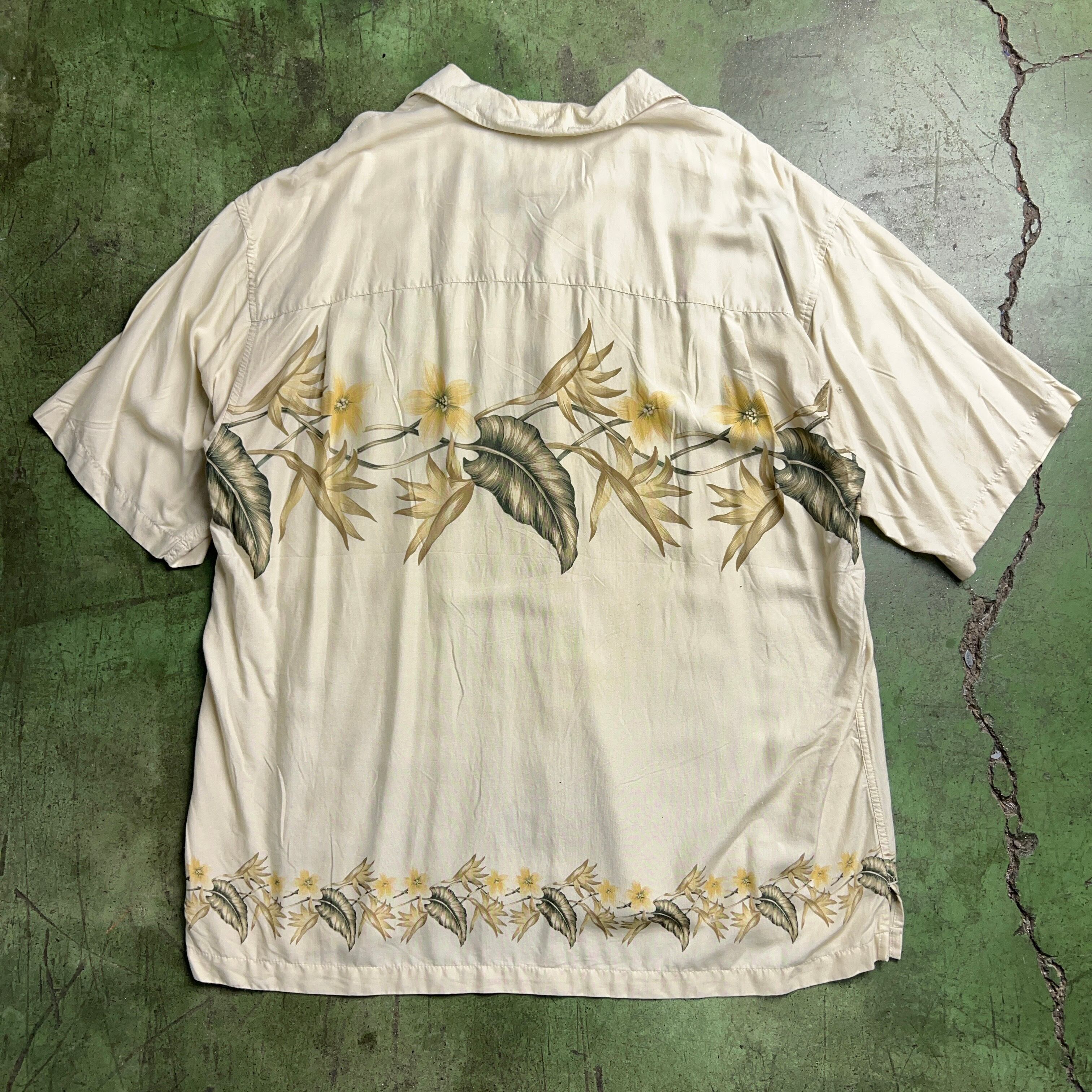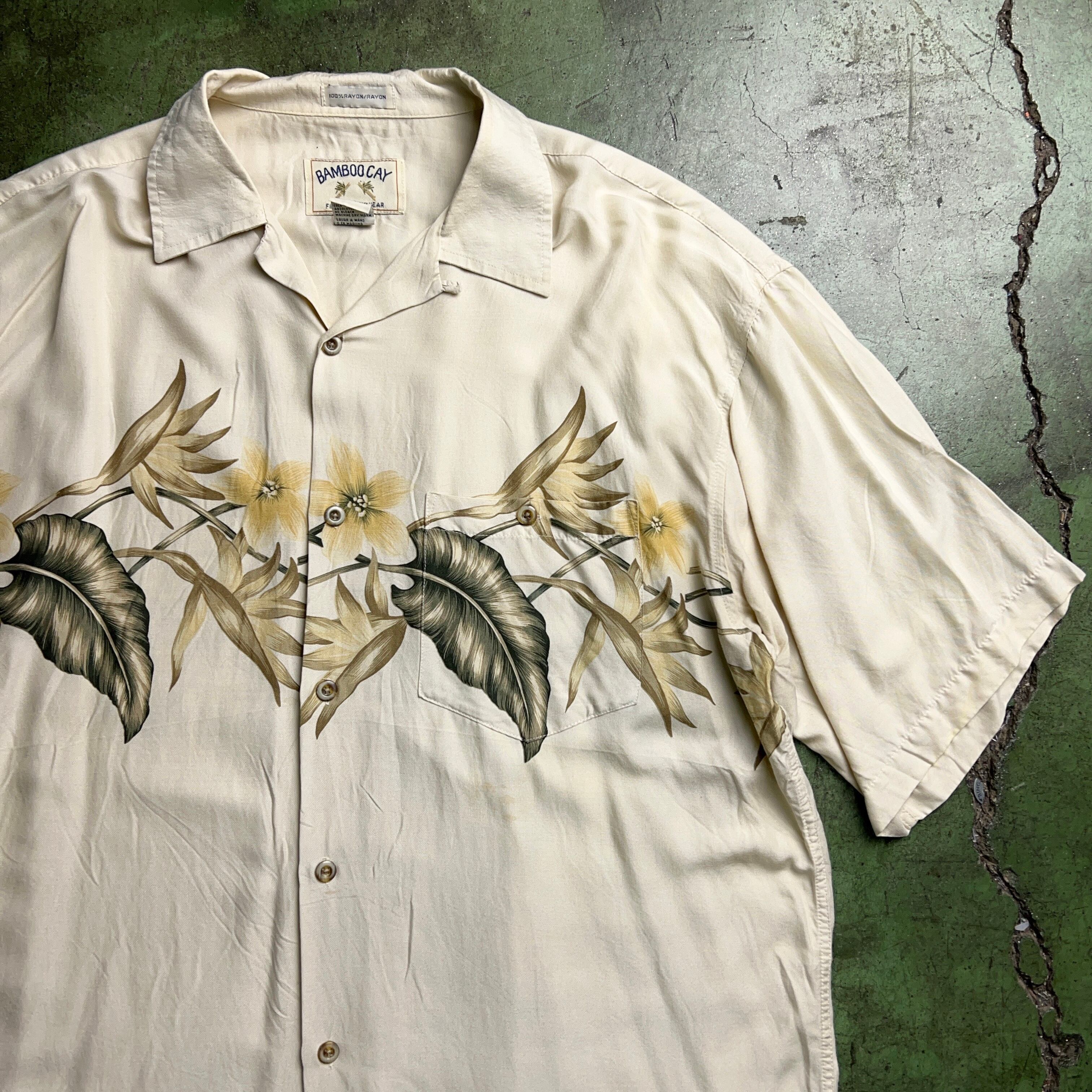”BAMBOO CAY" Rayon Open Coller Aloha Shirts オープンカラー アロハ 半袖シャツ ハワイアン レーヨン オフホワイト 色褪せ 色落ち フェード サイズL【3000円均一商品】【2点以上の購入で1000円OFF】【TH0756】