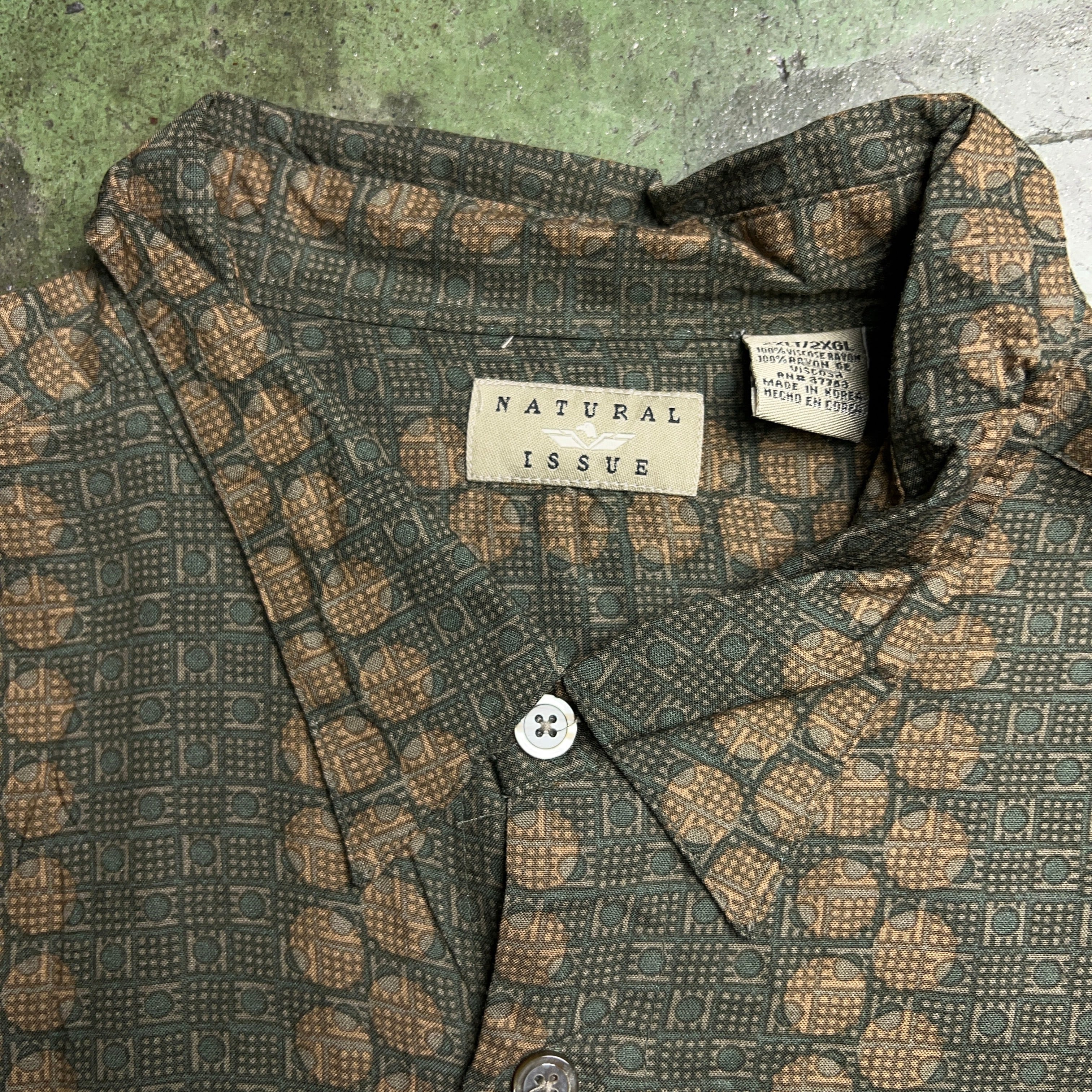 グッドレギュラーブランドとしても有名なNATURAL ISSUE のレーヨン総柄半袖シャツになります。