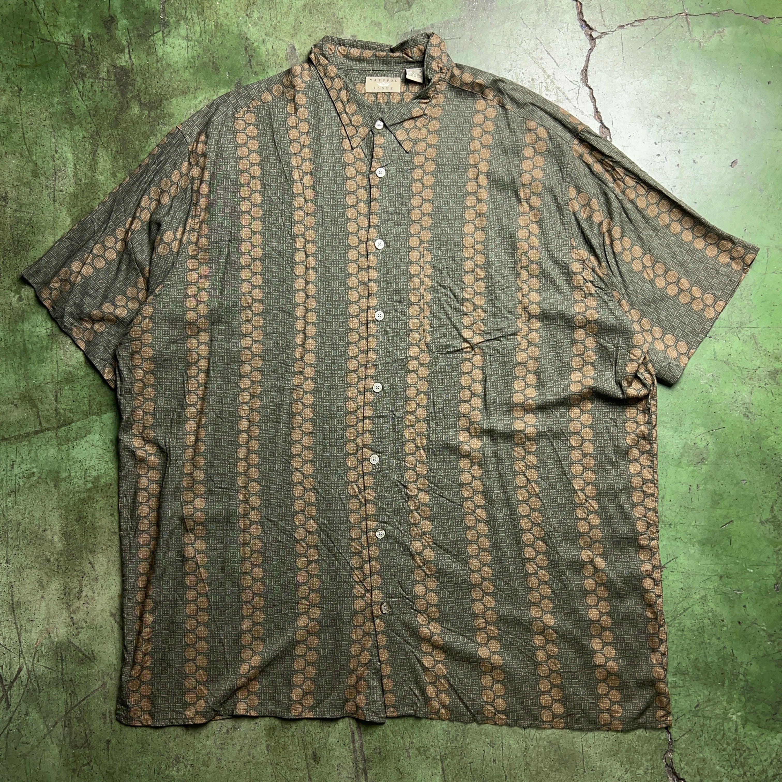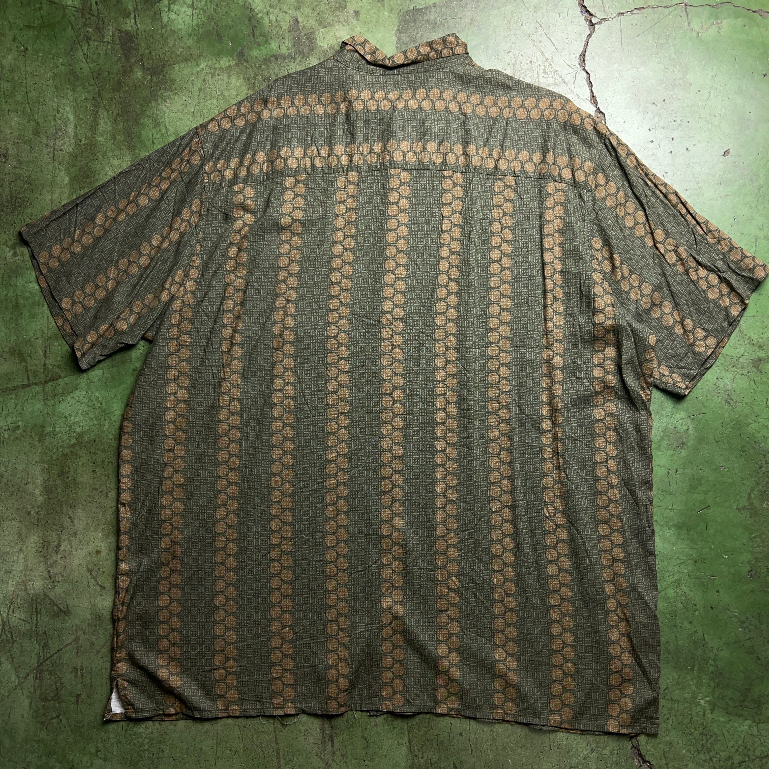 ”NATURAL ISSUE" Rayon Big Shirt ビッグサイズ 半袖シャツ 総柄シャツ カーキ サイズ2XL レーヨン【3000円均一商品】【TH0766】