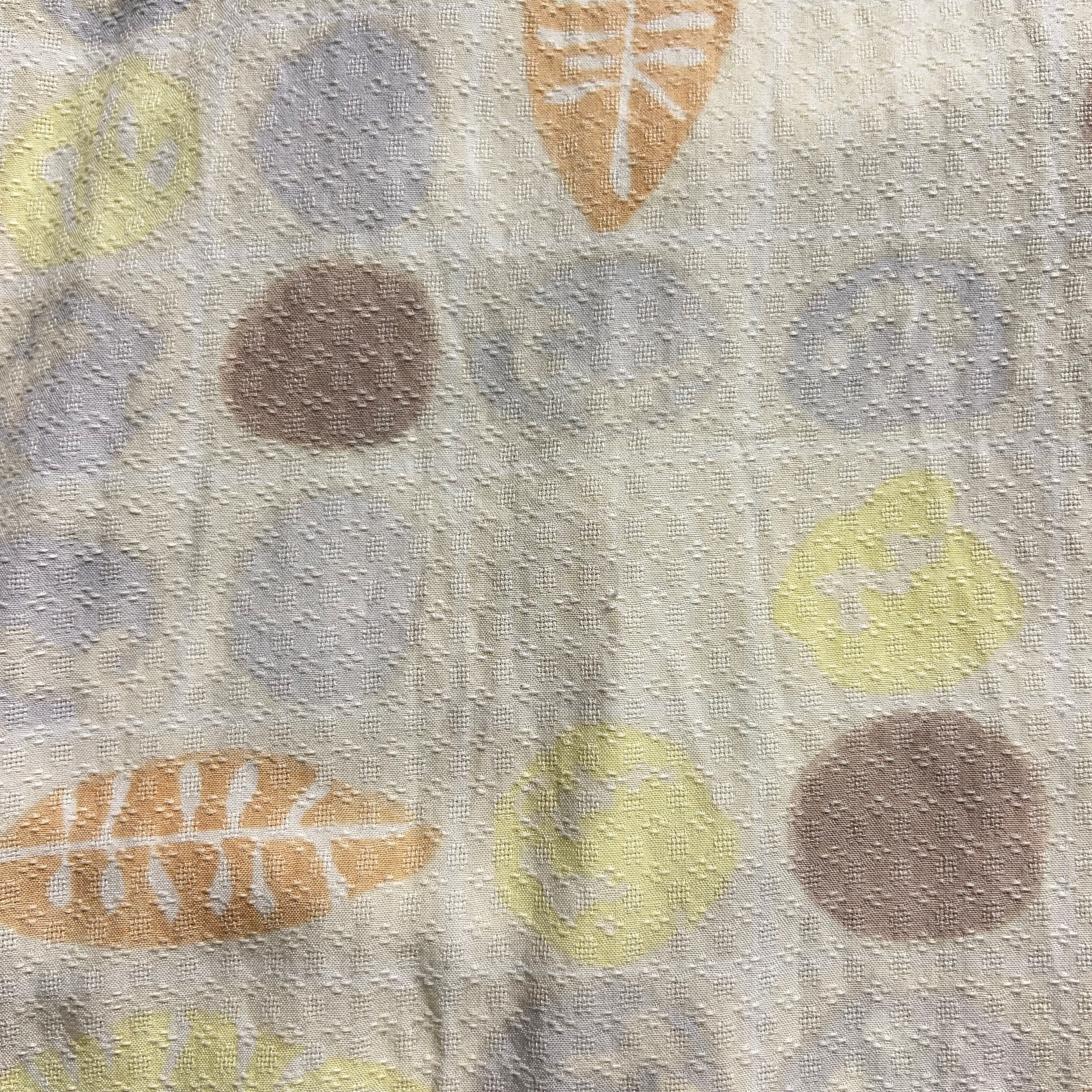 暖色で淡いカラーのの葉模様が可愛くオープンカラー(開襟)になっているので夏にぴったりのシャツです!