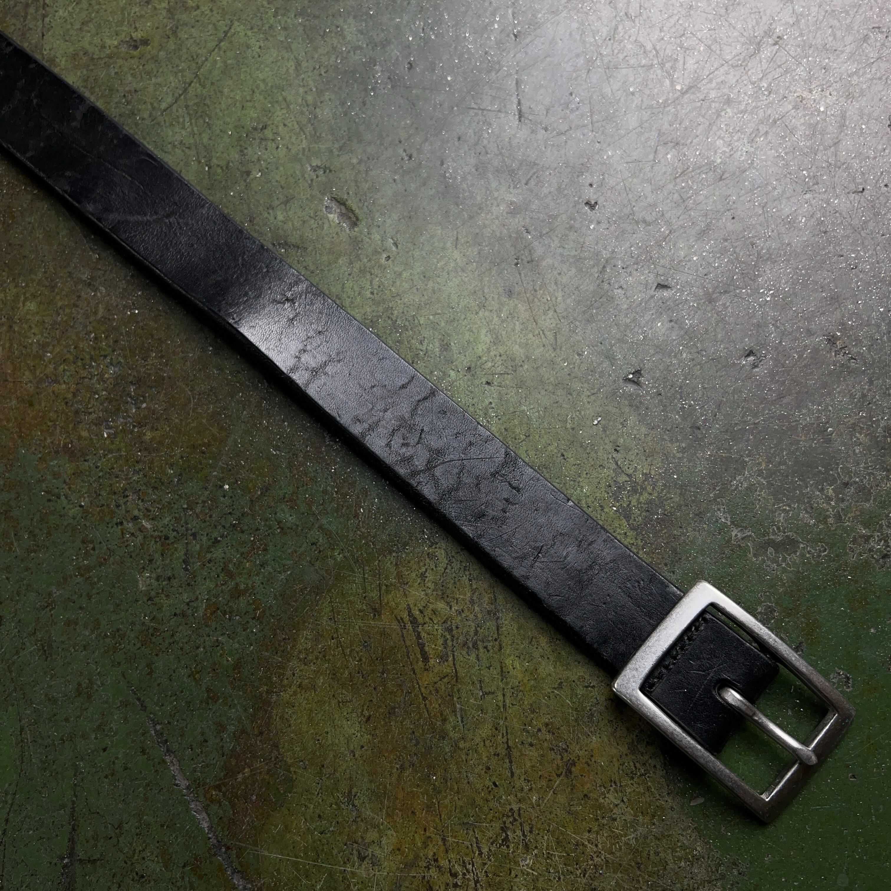 MADE IN U.S.A.で分厚い一枚革(イタリアンレザー)が使われたブラックレザーベルト。