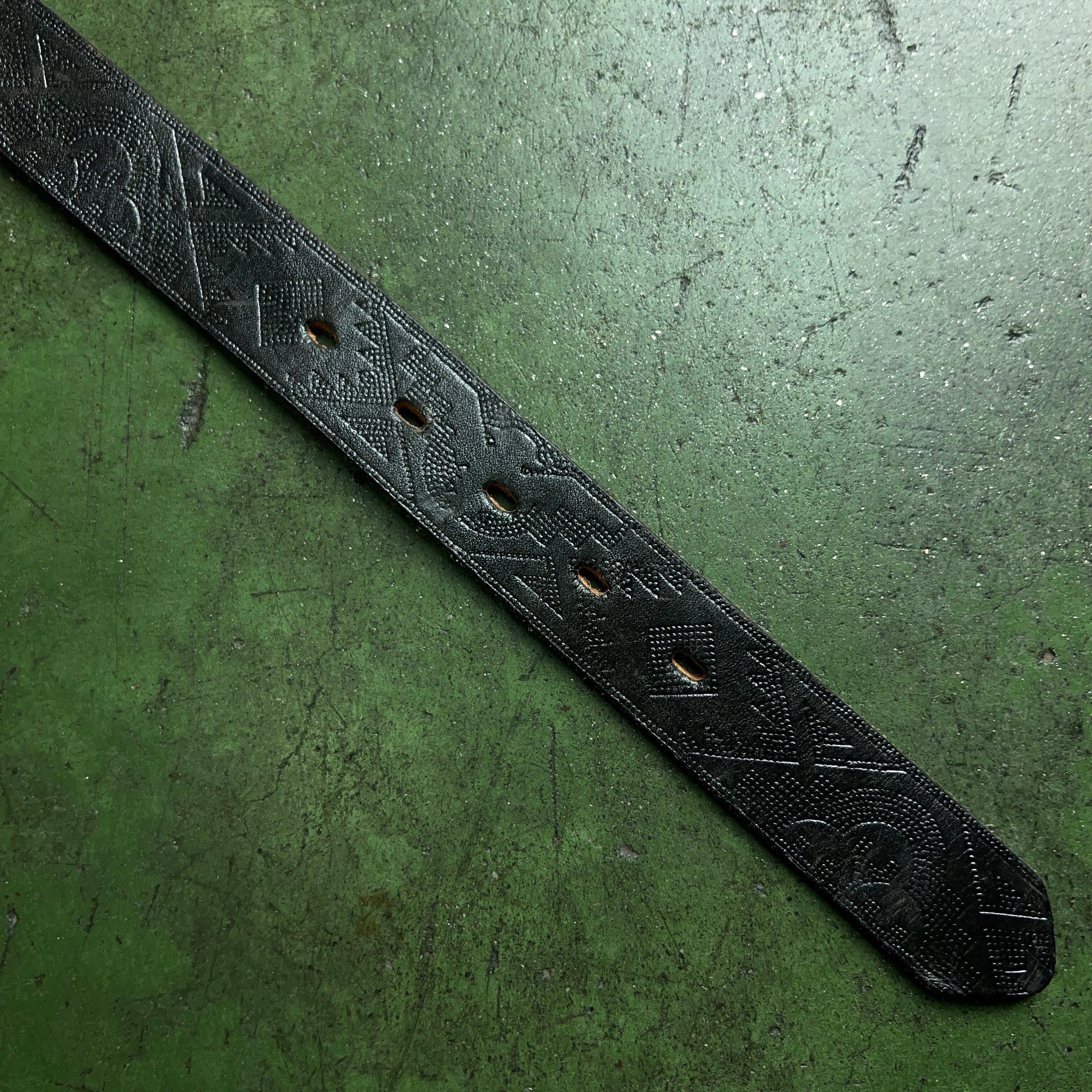 1980's Vintage Leather Belt Black 80年代 レザーベルト ブラック 黒 美品 型押し W30~W34【1000A2062】【送料無料】