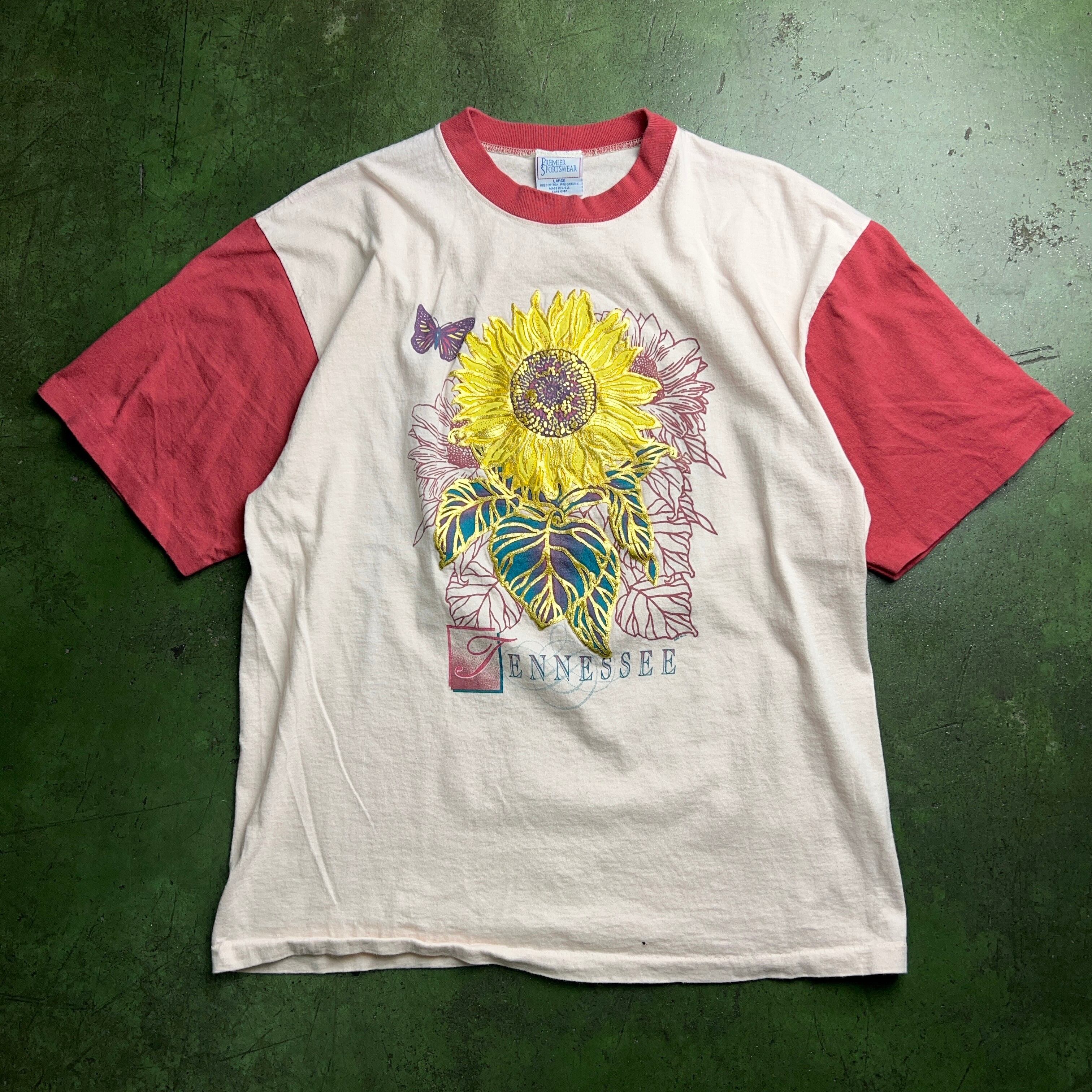 90's Tennessee "SUNFLOWER" Tshirt 90年代 ひまわり 向日葵 リンガー Tシャツ 花 蝶々 【1000A2102】【送料無料】